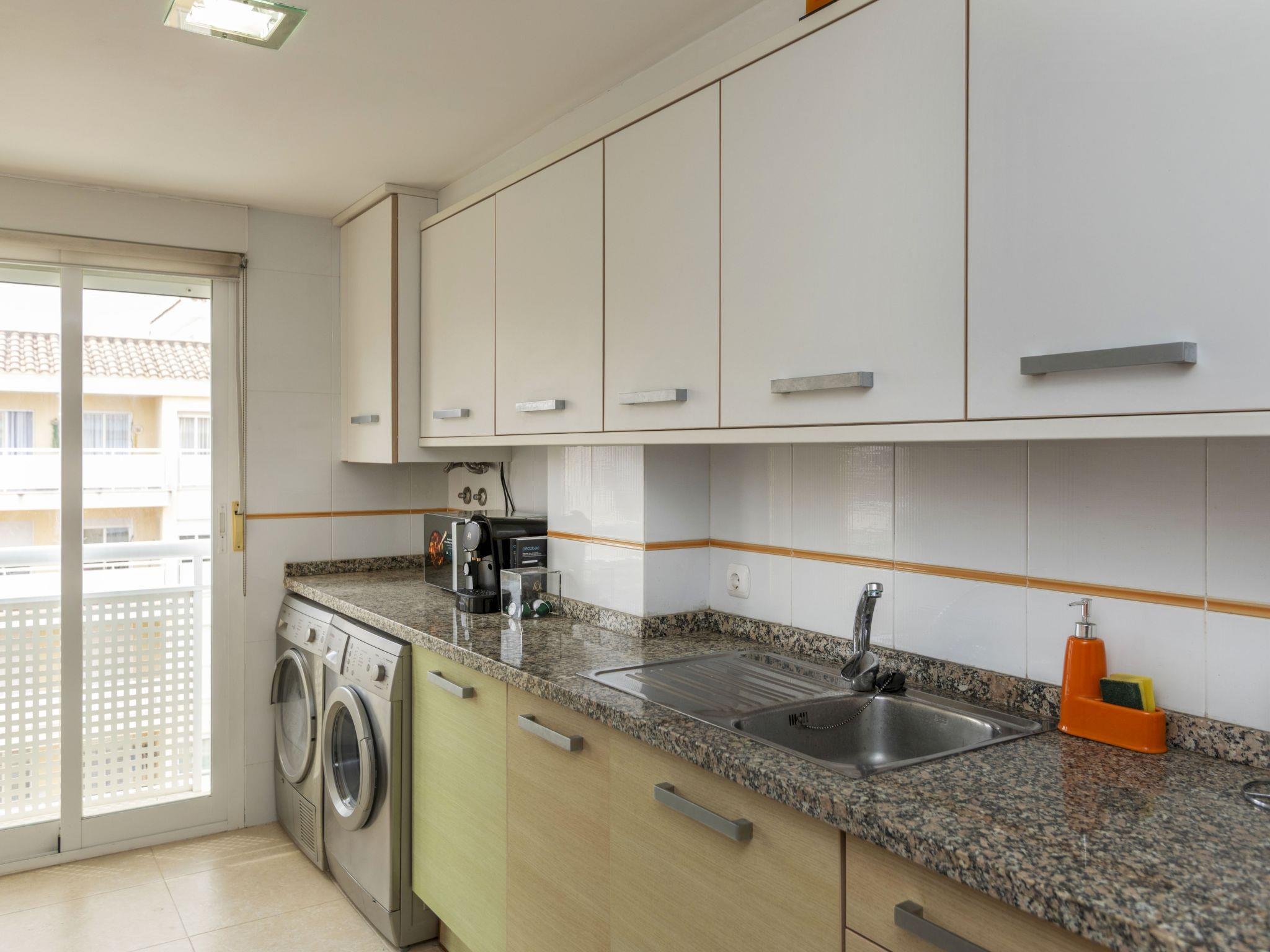 "Ed. Villa Magna", 3-Zimmer-Wohnung 77 m2. Zweckmässig und schön eingerichtet: Wohn-/Esszimmer mit Kabel-TV (Flachbildschirm), Ventilator. Ausgang zur Terrasse. 1 Zimmer mit 1 franz. Bett (150 cm, Länge 200 cm), Bad/WC, Digital-TV und Ventilator. Ausgang zur Terrasse. 1 Zimmer mit 2 Betten (90 cm, Länge 190 cm), Ventilator. Ausgang zur Terrasse. Küche (Backofen, Geschirrspüler, 3 Induktionskochplatten, Toaster, Wasserkocher, Mikrowelle, elektrische Kaffeemaschine). Dusche/Bidet/WC. Boiler (50 Liter). Terrasse. Terrassenmöbel. Sicht auf das Schwimmbad. Zur Verfügung: Waschmaschine, Wäschetrockner, Bügeleisen, Kinderhochstuhl, Babybett bis 2 Jahre, Haartrockner. Internet (WLAN, gratis). Bitte beachten: geeignet für Familien. Nichtraucher-Unterkunft. TV nur ES. R00000001