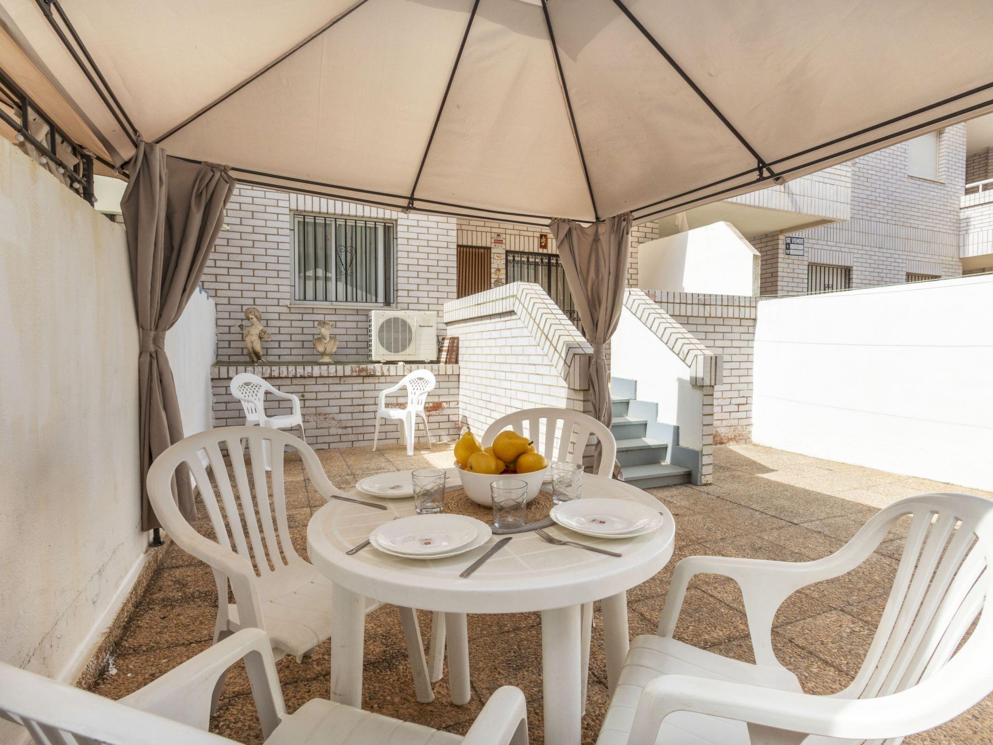 "Trebol III - Marina d'Or", 3-Zimmer-Wohnung 60 m2. Einfach und zweckmässig eingerichtet: Wohn-/Esszimmer mit 1 Diwanbett, Digital-TV, Flachbildschirm, Klimaanlage und Warmluftheizung. Ausgang zur Terrasse. 1 Zimmer mit 1 franz. Bett (135 cm, Länge 190 cm). 1 Doppelzimmer mit 2 Betten (90 cm, Länge 190 cm) mit Dusche/WC. Terrasse. Keine. Zur Verfügung: Waschmaschine, Bügeleisen, Haartrockner. Internet (WLAN, gratis). Garage Nr. 44 auf dem Grundstück. R00000001