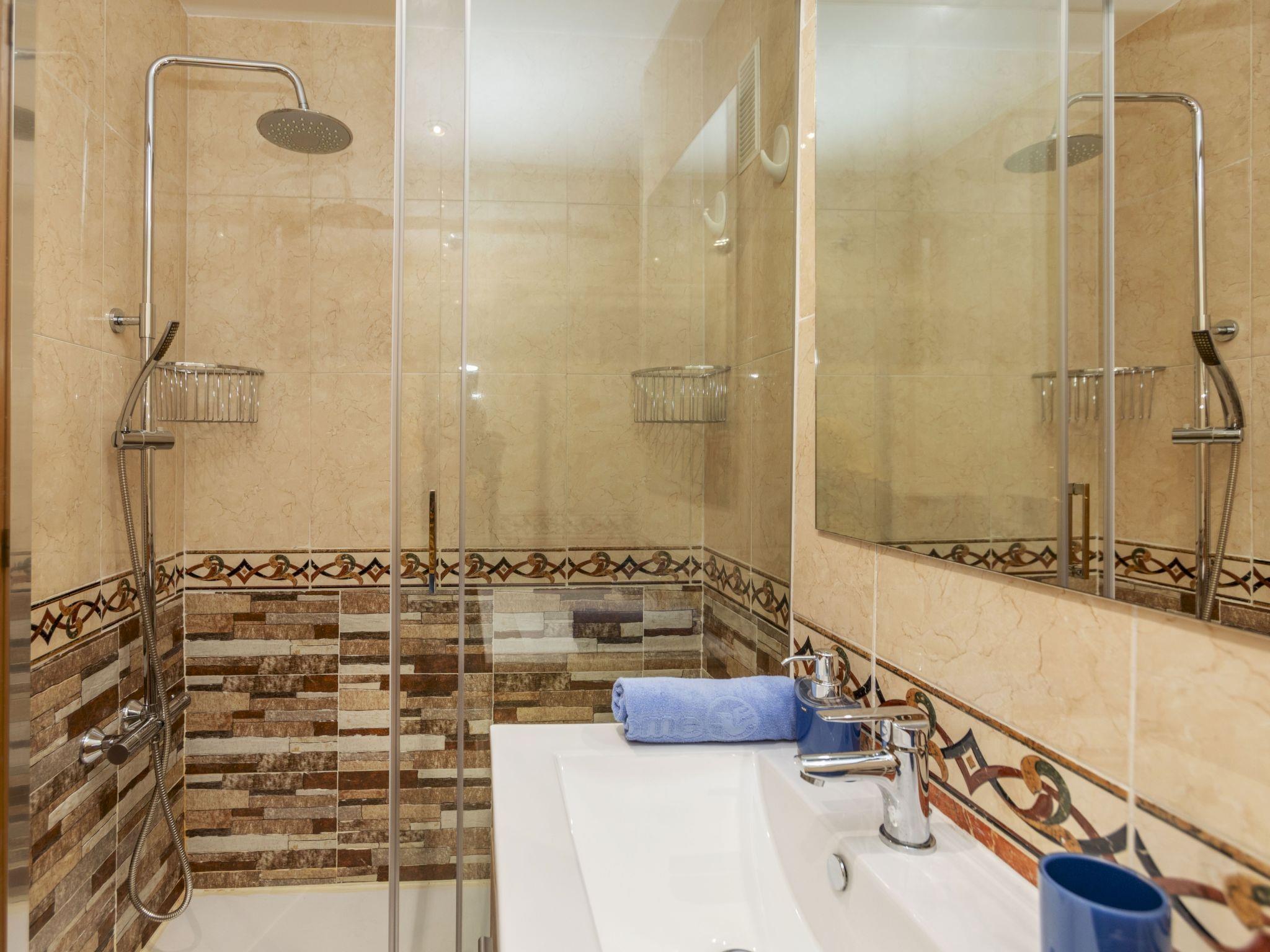 3-Zimmer-Wohnung 60 m2. Zweckmässig eingerichtet: Wohn-/Esszimmer mit Digital-TV, Flachbildschirm, Klimaanlage und Warmluftheizung. Ausgang zur Terrasse. 1 Zimmer mit 1 franz. Bett (135 cm, Länge 190 cm). 1 Doppelzimmer mit 2 Betten (90 cm, Länge 190 cm). Küche (Backofen, 3 Glaskeramikplatten, Toaster, Wasserkocher, Mikrowelle, Tiefkühler, elektrische Kaffeemaschine). Dusche/Bidet/WC. Terrasse. Terrassenmöbel. Zur Verfügung: Waschmaschine, Bügeleisen, Haartrockner. Internet (WLAN, gratis). Parkplatz Nr. 186. R0000000001