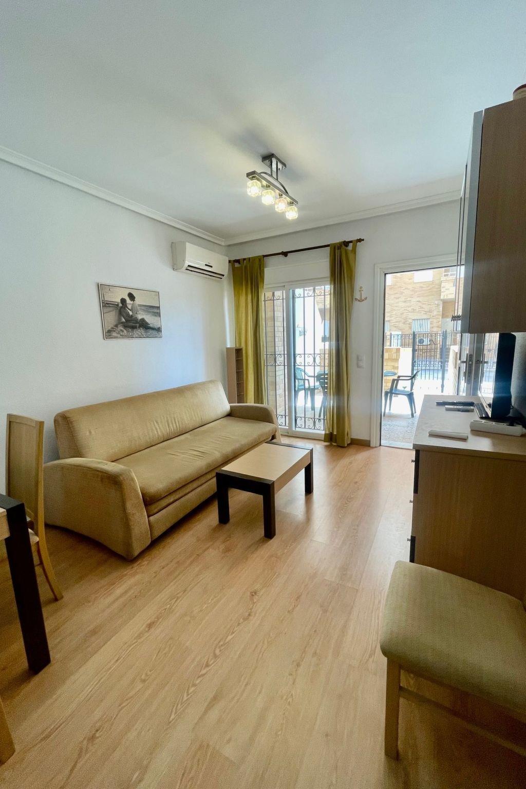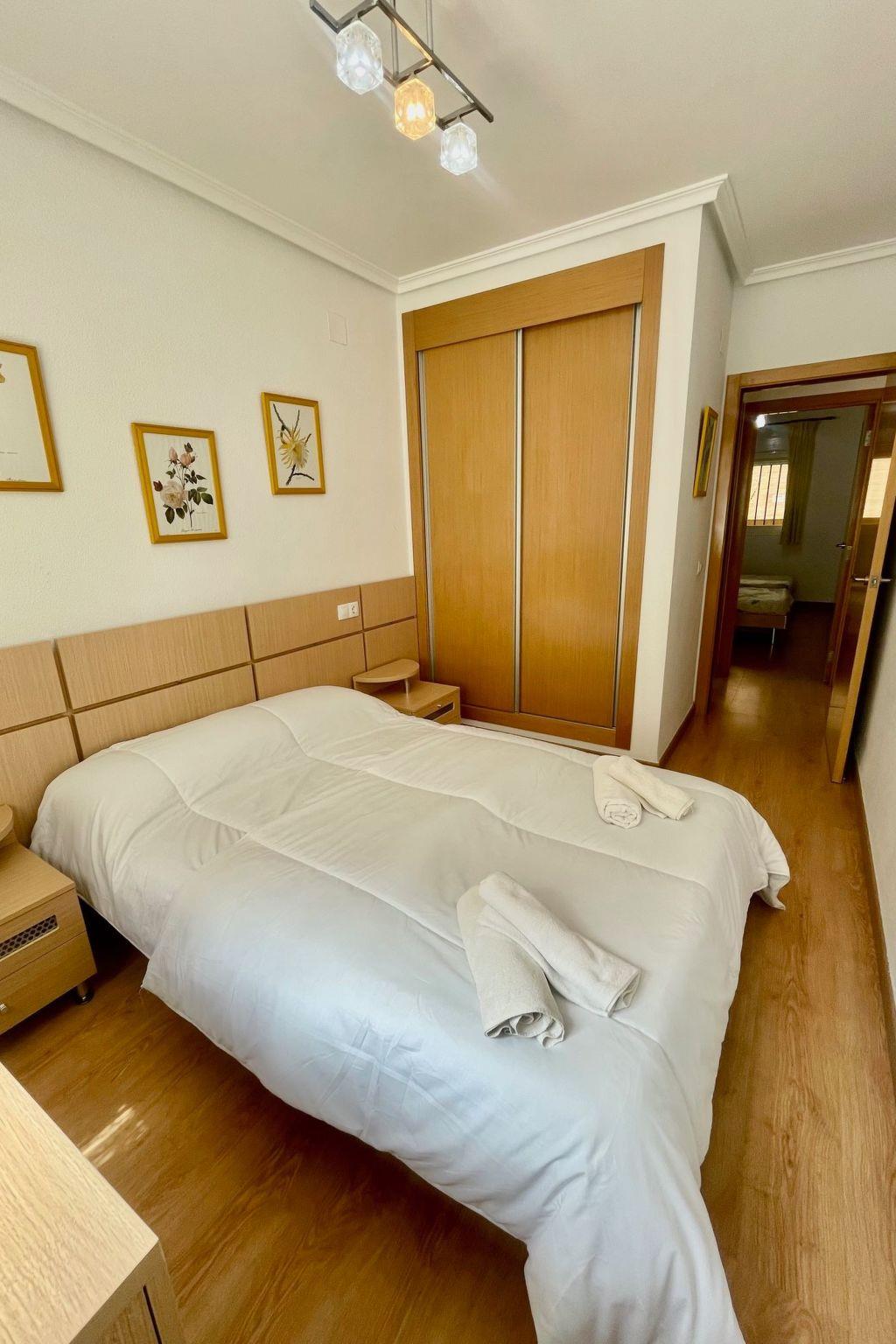 Es hat 2 Schlafzimmer, von denen das erste mit einem Doppelbett ausgestattet ist, während das andere zwei Einzelbetten hat. Im Wohnzimmer gibt es auch ein Schlafsofa für die Gäste, einen Fernseher und einen Tisch für 4 Personen.