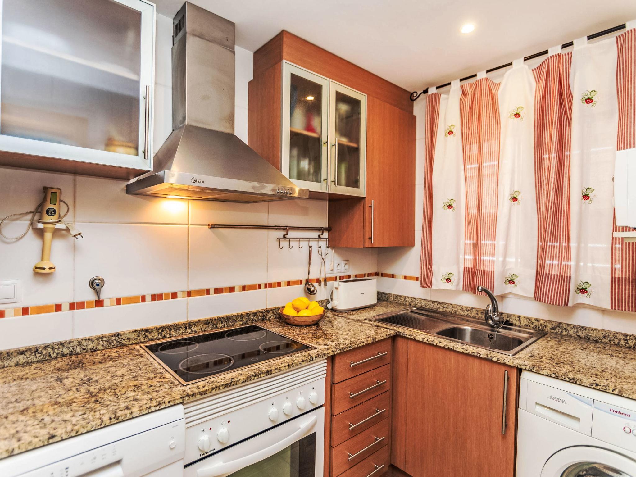 "Jardines del Mar - Azahar", 3-Zimmer-Wohnung 60 m2. Komfortabel und gemütlich eingerichtet: Wohn-/Esszimmer mit 1 Doppeldiwanbett, Esstisch, Digital-TV, Flachbildschirm, Klimaanlage und Warmluftheizung. Ausgang zur Terrasse. 1 Zimmer mit 2 Betten und Ventilator. 1 Zimmer mit 1 Doppelbett und Ventilator. Küche (Backofen, Geschirrspüler, Toaster, Mikrowelle, Tiefkühler). Bad/Bidet/WC. Boiler (50 Liter). Keine Heizmöglichkeit. Terrasse 12 m2. Terrassenmöbel. Seitliche Sicht auf die Berge. Zur Verfügung: Waschmaschine, Bügeleisen, Haartrockner. Parkplatz Nr. 221. Geeignet für Familien. AT-34692-CS // Reg. Nr.: ESFCTU00001202600063508500000000000000000VT-42622-CS6