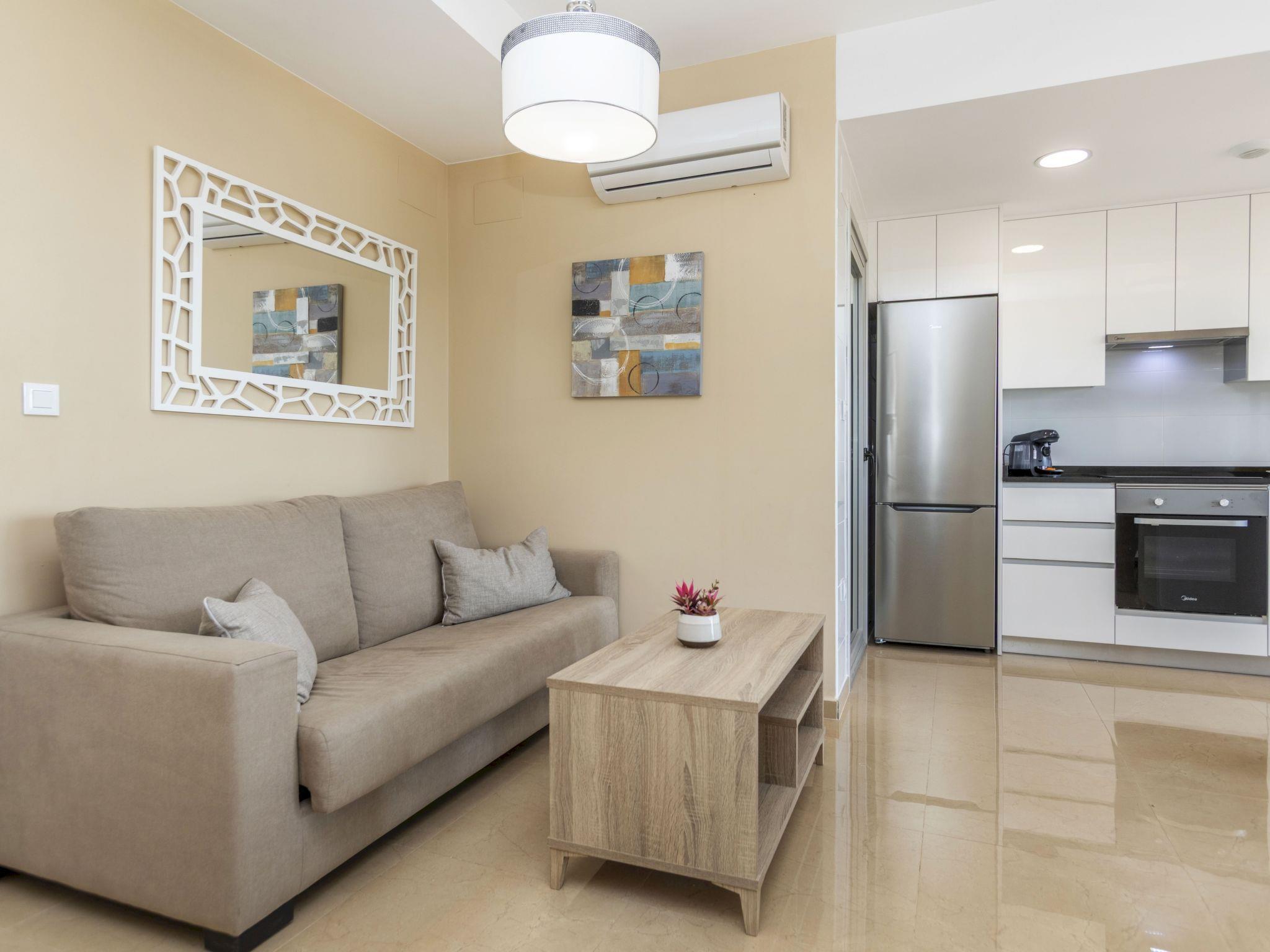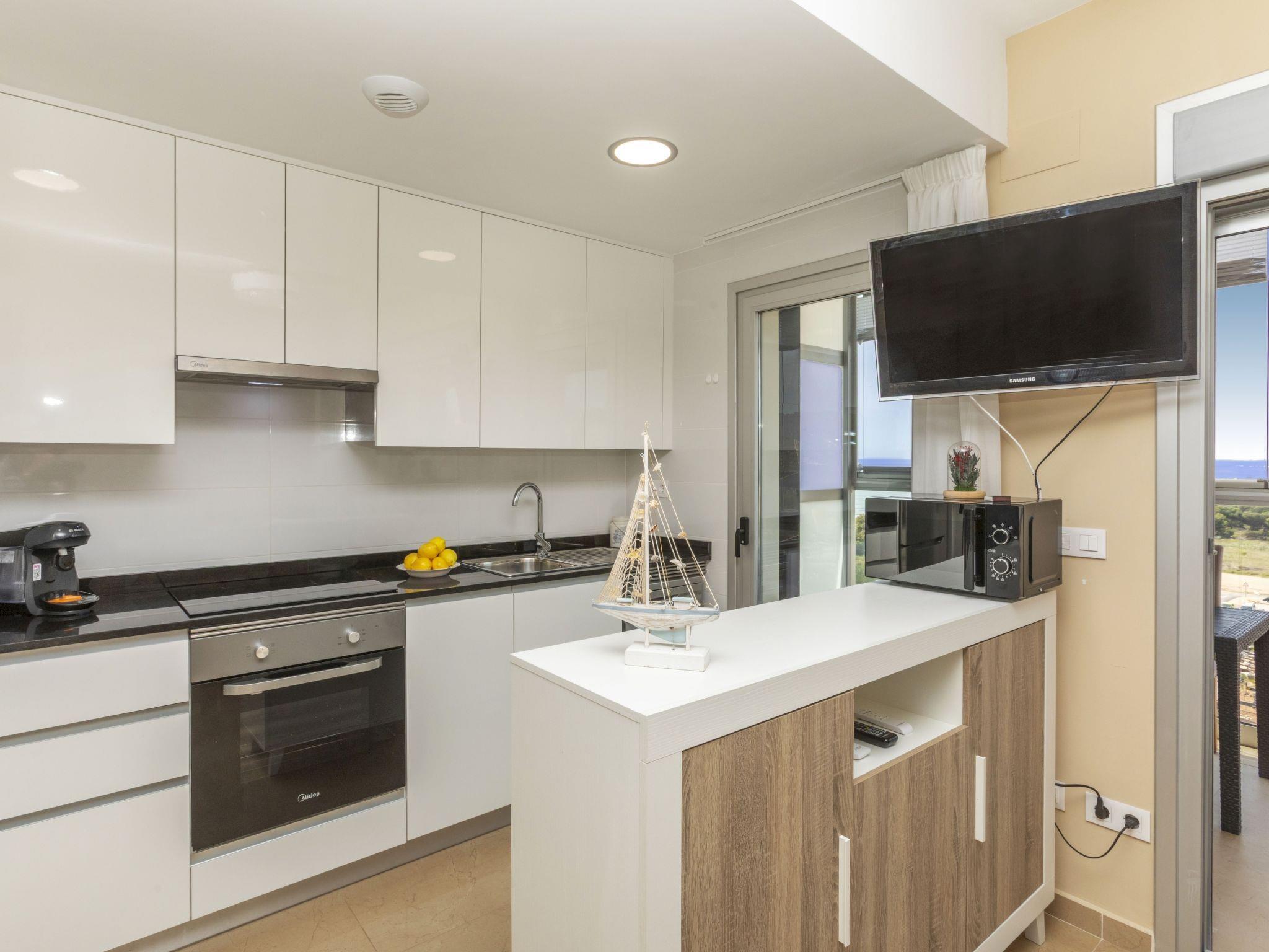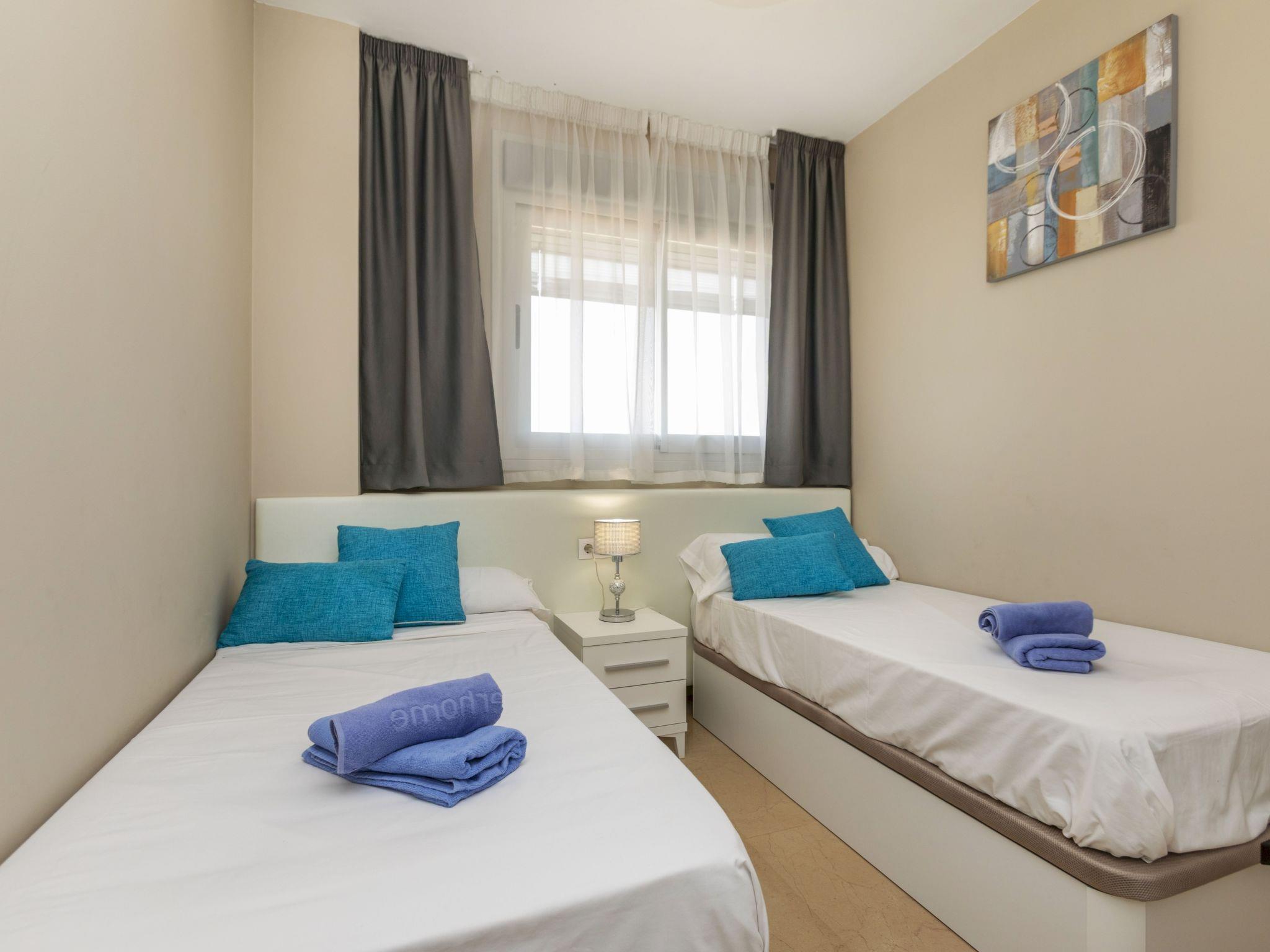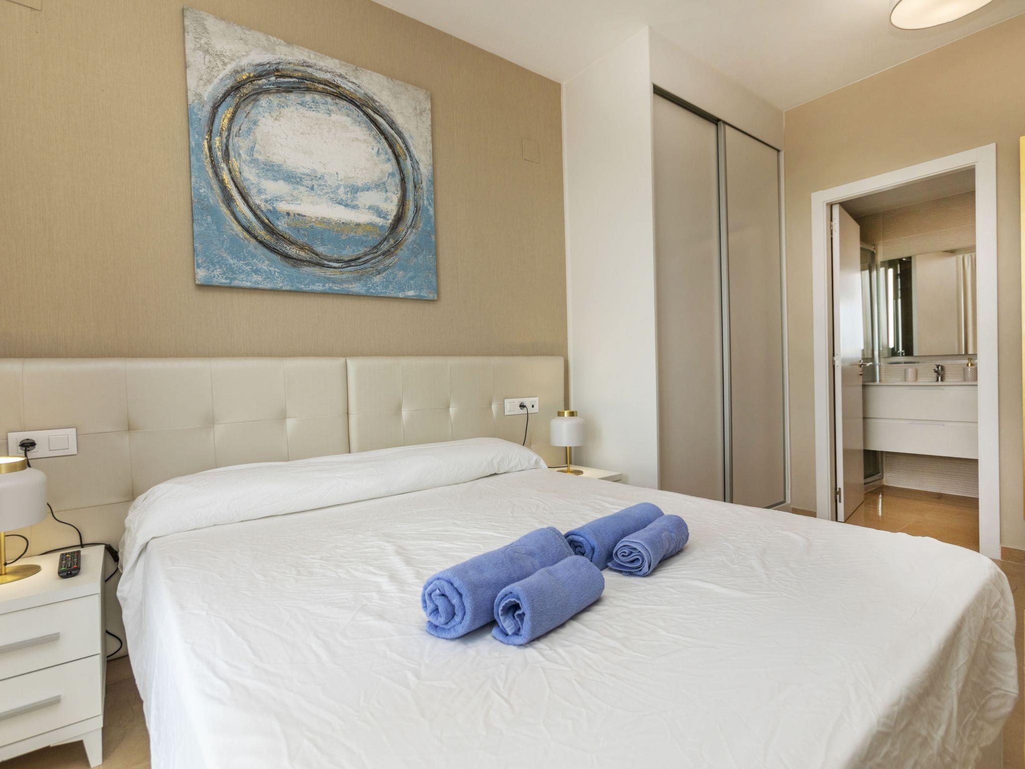 "Ciudad Jardin II", 3-Zimmer-Wohnung 80 m2 im 7. Stock. Zweckmässig und komfortabel eingerichtet: Wohn-/Esszimmer mit Esstisch, Digital-TV, Klimaanlage und Warmluftheizung. Ausgang zur Terrasse. 1 Zimmer mit 1 franz. Bett (150 cm, Länge 200 cm), Dusche/Bidet/WC. 1 Zimmer mit 2 Betten (90 cm, Länge 200 cm). Küche (Backofen, Geschirrspüler, 3 Induktionskochplatten, Toaster, Wasserkocher, Mikrowelle, Tiefkühler, elektrische Kaffeemaschine, Kapseln für die Kaffeemaschine (Nesspresso) extra). Dusche/Bidet/WC. Grosse Terrasse 19 m2. Terrassenmöbel. Seitliche Sicht auf das Meer und die Ortschaft. Zur Verfügung: Waschmaschine, Bügeleisen, Haartrockner. Internet (WLAN, gratis). Parkplatz Nr. 309 (überdacht) beim Haus. Bitte beachten: Nichtraucher-Unterkunft. R000000001