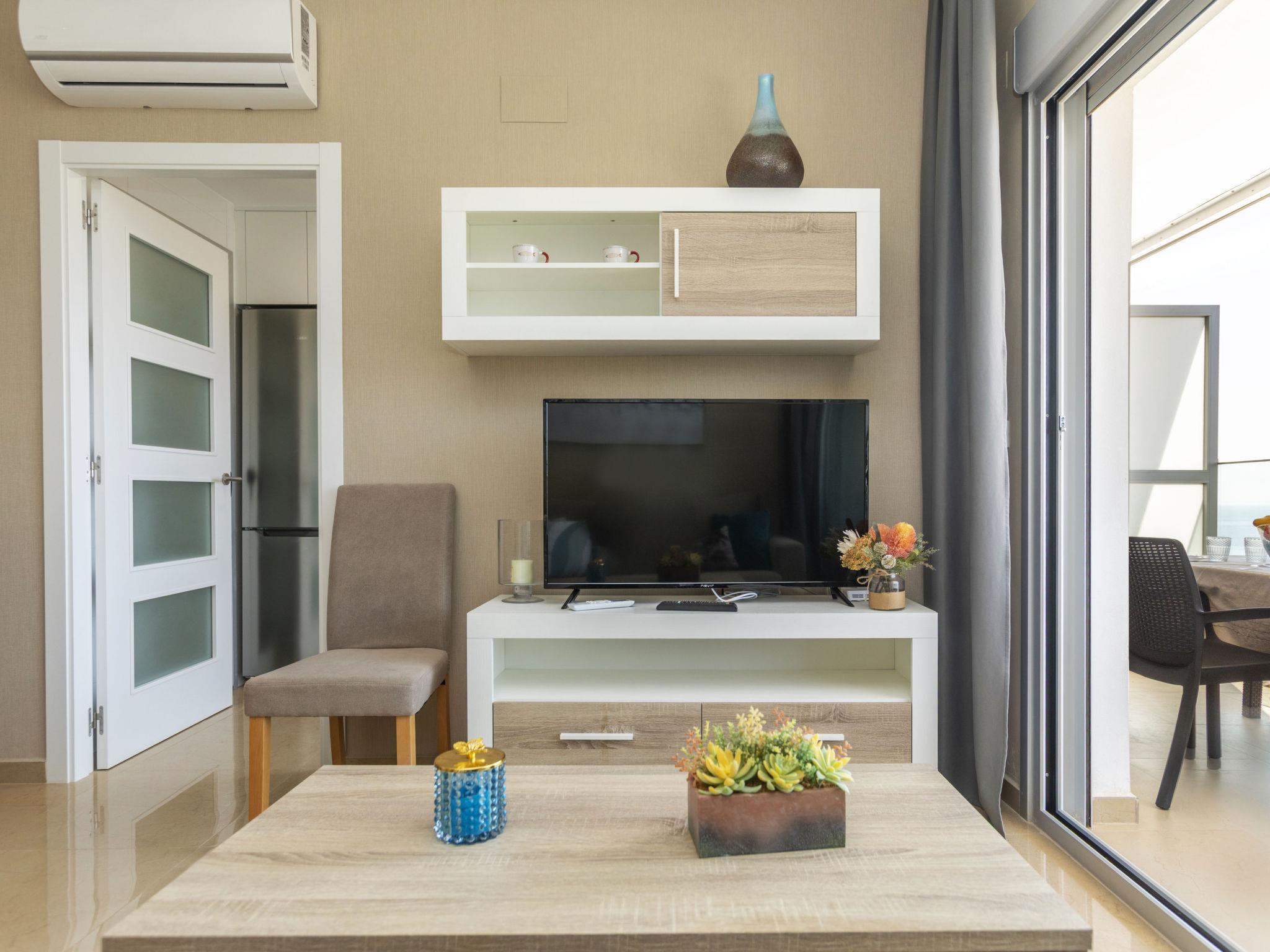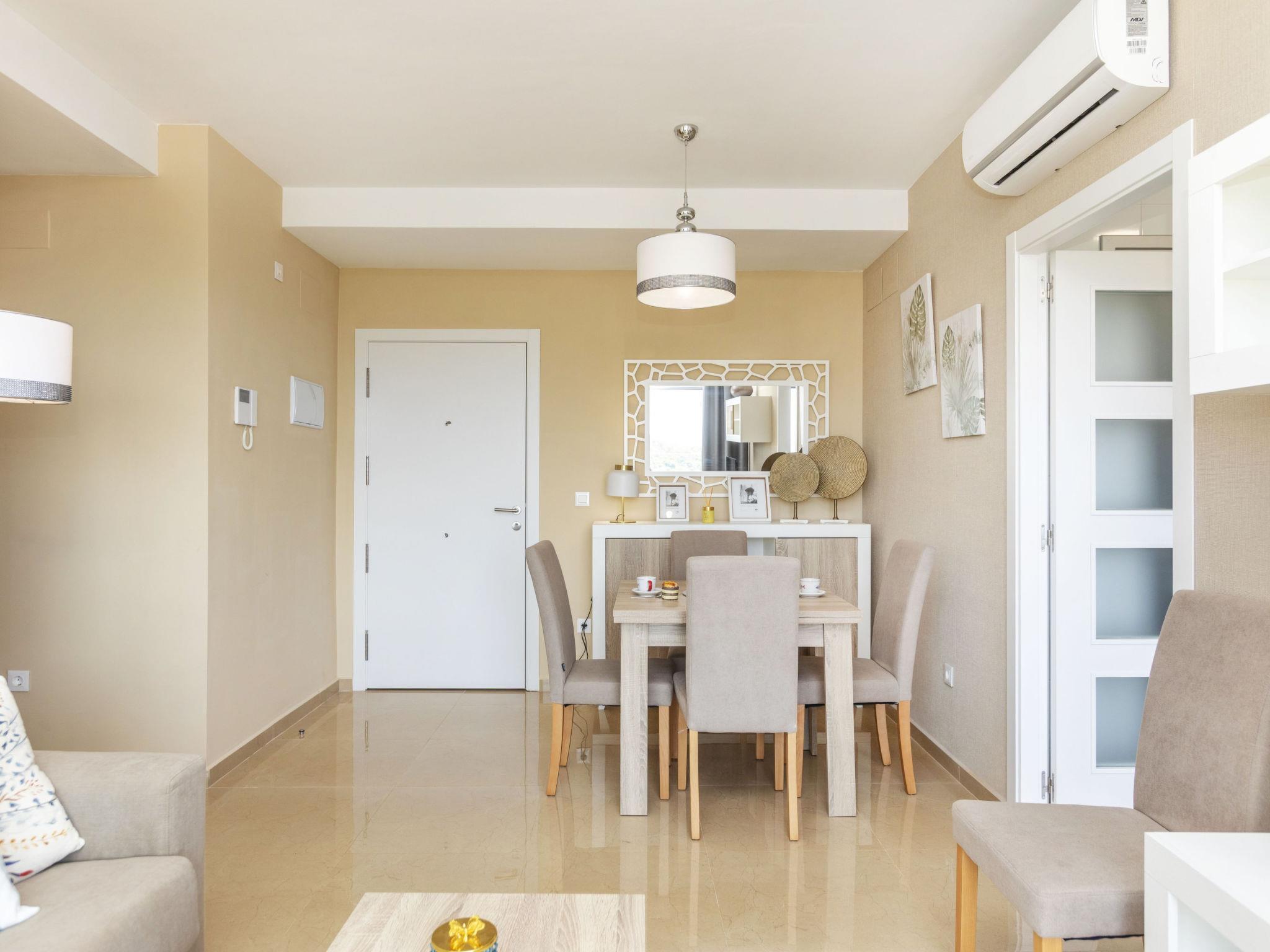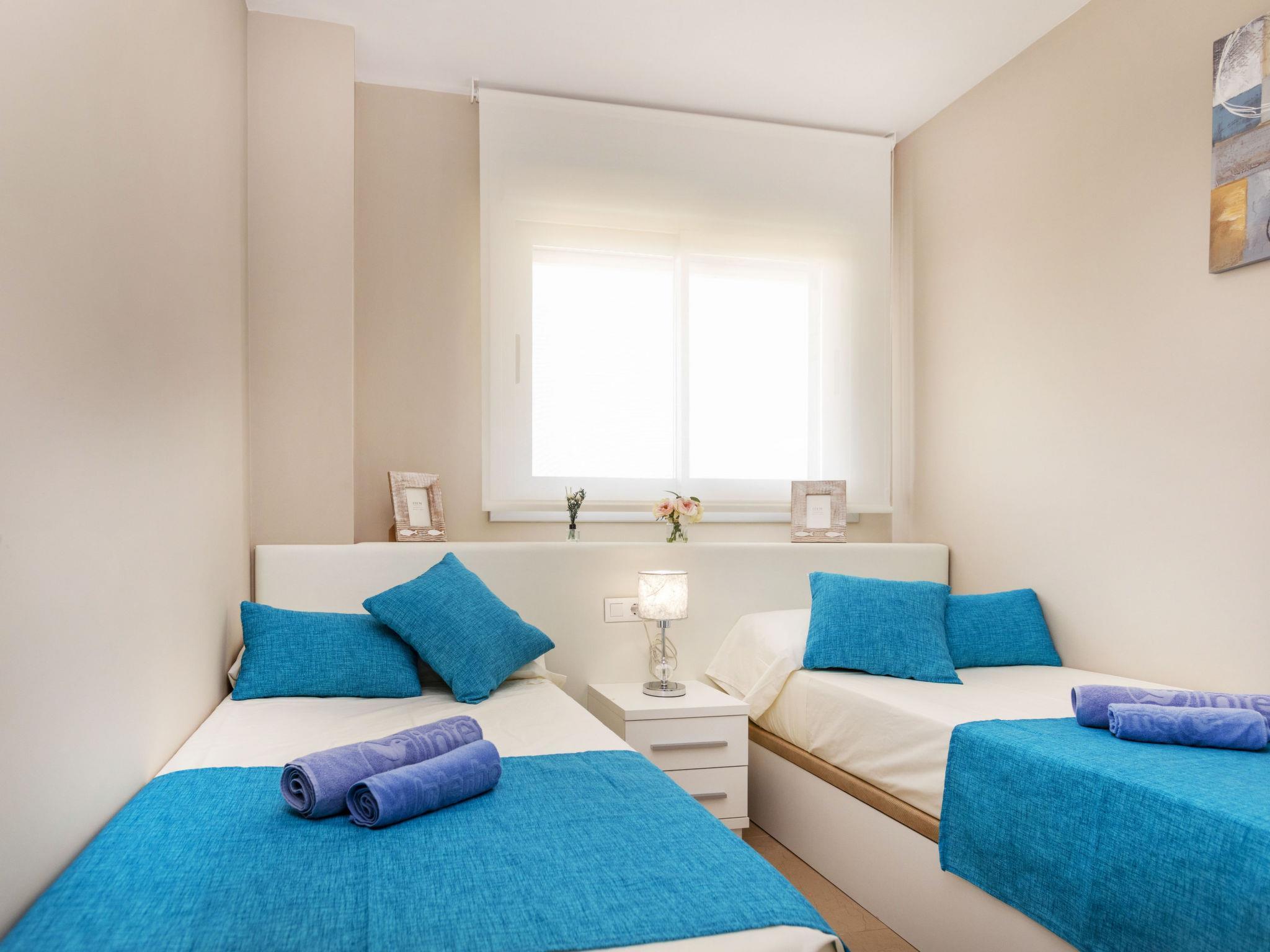 "Ciudad Jardin II", 3-Zimmer-Wohnung 70 m2. Zweckmässig und komfortabel eingerichtet: Wohn-/Esszimmer mit Digital-TV, Klimaanlage, Warmluftheizung und elektrischem Rollladen. Ausgang zur Terrasse. 1 Zimmer mit 1 franz. Bett (150 cm, Länge 200 cm), Dusche/Bidet/WC. 1 Zimmer mit 2 Betten (90 cm, Länge 200 cm). Küche (Backofen, Geschirrspüler, 3 Glaskeramikplatten, Toaster, Wasserkocher, Mikrowelle, Tiefkühler, elektrische Kaffeemaschine). Ausgang zur Terrasse. Dusche/Bidet/WC. Grosse Terrasse 19 m2. Terrassenmöbel. Seitliche Sicht auf das Meer und die Ortschaft. Zur Verfügung: Waschmaschine, Wäschetrockner, Bügeleisen, Haartrockner. Internet (WLAN, gratis). Parkplatz Nr. 213 (überdacht). Bitte beachten: Nichtraucher-Unterkunft. R000000001