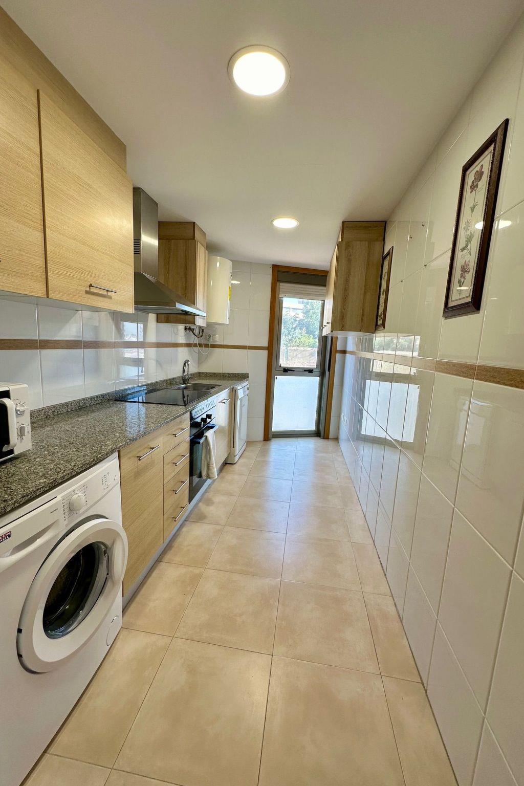 Im Inneren empfängt Sie die Wohnung mit einer Atmosphäre von Komfort und Funktionalität. Sie ist mit allem ausgestattet, was Sie für einen sorglosen Aufenthalt benötigen. Das Hauptschlafzimmer ist mit einem bequemen Doppelbett ausgestattet und das zweite mit zwei Einzelbetten, ideal für Begleitpersonen oder Kinder. Darüber hinaus bietet ein Schlafsofa im Gemeinschaftsbereich zusätzlichen Platz für zwei weitere Personen. Für Ihren Komfort verfügt die Unterkunft über zwei Badezimmer, eines mit Dusche und eines mit Badewanne, sowie eine voll ausgestattete Küche, in der Sie Ihre Lieblingsgerichte zubereiten können, eine Waschmaschine zur alleinigen Nutzung und einen Geschirrspüler, um Ihren Aufenthalt noch angenehmer zu gestalten.