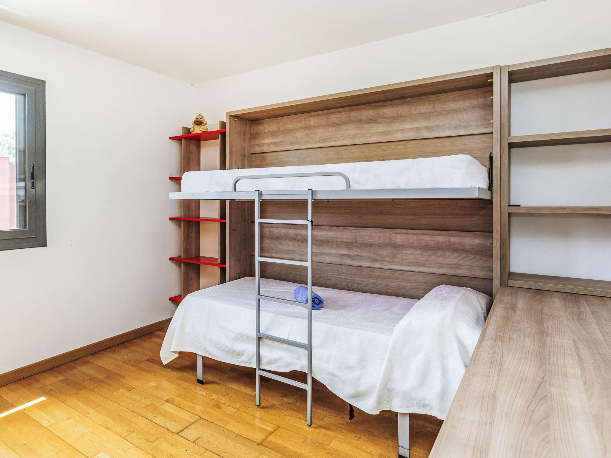 "Kai", 5-Zimmer-Haus 152 m2 auf 3 Stockwerken. Zweckmässig und komfortabel eingerichtet: grosses Wohn-/Esszimmer mit Esstisch und Sat-TV. Ausgang zum Gartensitzplatz, zum Schwimmbad. 1 Zimmer mit 1 Bett (90 cm, Länge 200 cm). Grosse Küche (Backofen, Geschirrspüler, Toaster, Wasserkocher, Mikrowelle, elektrische Kaffeemaschine) mit Esstisch und Sat-TV. Ausgang zur Terrasse. Sep. WC. Obergeschoss: 1 Zimmer mit 1 franz. Bett (150 cm, Länge 190 cm), Dusche/Bidet/WC und Sat-TV. 1 Zimmer mit 1 franz. Bett (140 cm, Länge 200 cm). 1 Zimmer mit 1 x 2 Etagenbetten (90 cm, Länge 190 cm). Bad/Bidet/WC. Klimaanlage, Warmluftheizung. 2. Obergeschoss: Erker. Grosser Gartensitzplatz. Terrassenmöbel, Gartengrill. Sicht auf das Schwimmbad und den Garten. Zur Verfügung: Waschmaschine, Bügeleisen, Kinderhochstuhl, Babybett bis 2 Jahre, Haartrockner. Internet (WLAN, gratis). Bitte beachten: Nichtraucher-Haus. HUTG-021080 // Reg. Nr.: ESFCTU00001701500047466900000000000000000HUTG-0210802