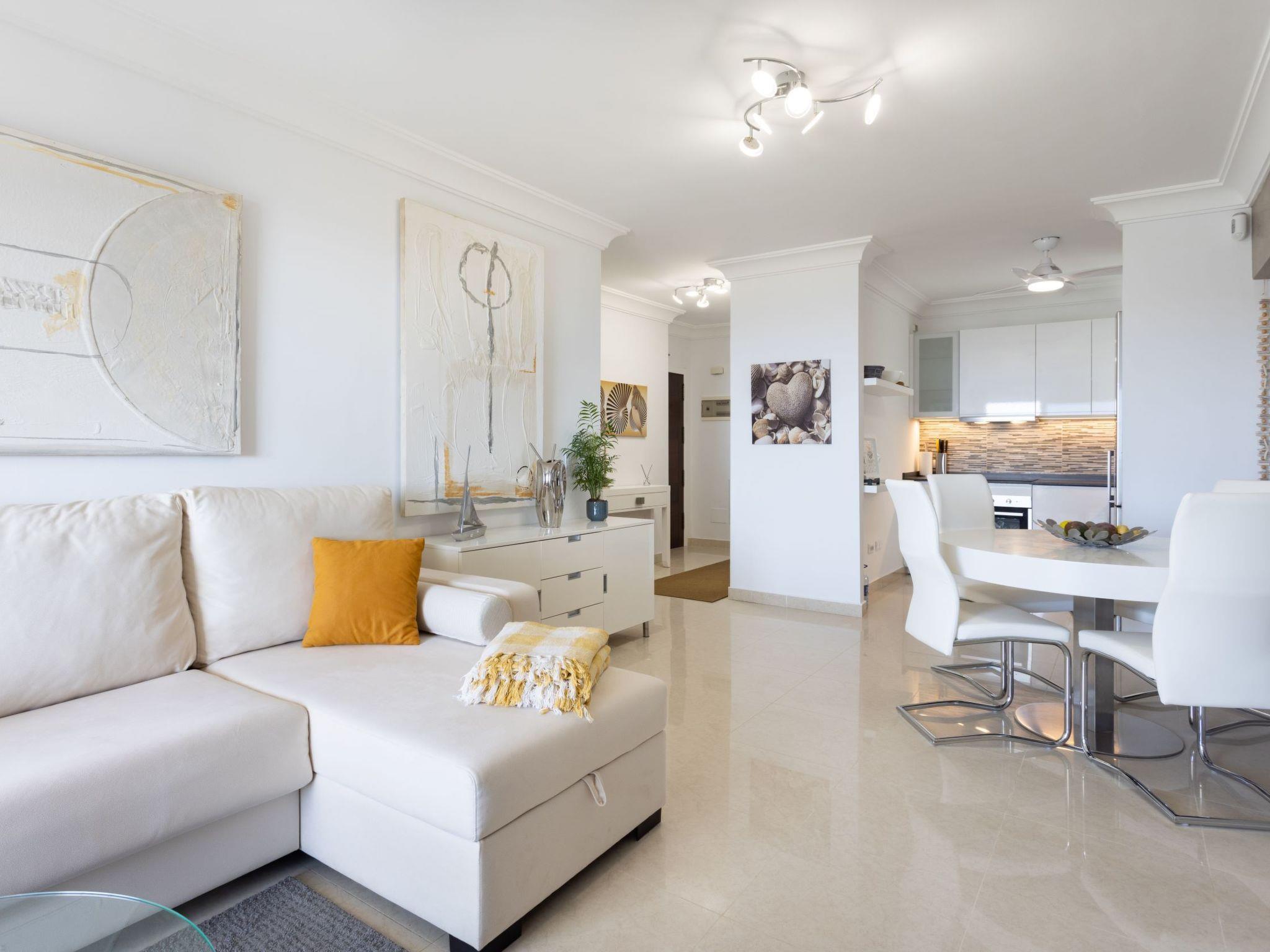 Das Apartment ist ca. 70qm gross, die Terrasse mit ihren 14qm ist das Highlight der gesamten Wohnung. Sie wurde von uns gerade mit nur hochwertigen Materialien komplett renoviert und modern möbliert, auch Bad und Küche sind total neu. Bereits beim aufwachen haben Sie einen tollen Blick aufs Meer direkt vom Bett aus, wenn Sie im Salon auf dem Sofa sitzen, sehen Sie das Meer, es begleitet Sie in der ganzen Wohnung, überall wo Sie sich befinden, sehen Sie das Meer. Die grosszügige Terrasse bietet einen komfortablen Essbereich und eine Relaxzone in der Sie die wunderschöne Sonnenuntergänge geniessen können. Die Terrasse kann komplett offen aber auch hinter einer 6m langen übergangsfreien Verglassung wind- und sonnengeschützt genutzt werden. Die Verglasung lässt sich bequem und leicht öffnen und verschwindet seitlich, sodas die Terrasse bei jedem Wetter nutzbar sein wird.Vom modernen und sehr komfortablen Schlafsofa im Salon können Sie auf dem neuen 65" Smart-TV Ihre Lieblingssendungen verfolgen, im Schlafzimmer ist ein weiterer 55" TV wo Sie unabhängig vom Salon z.B. Sport etc. schauen können. Das Schlafzimmer verfügt über eine Klima-Anlage, für die Benutzung wird eine wöchentliche Gebühr erhoben.