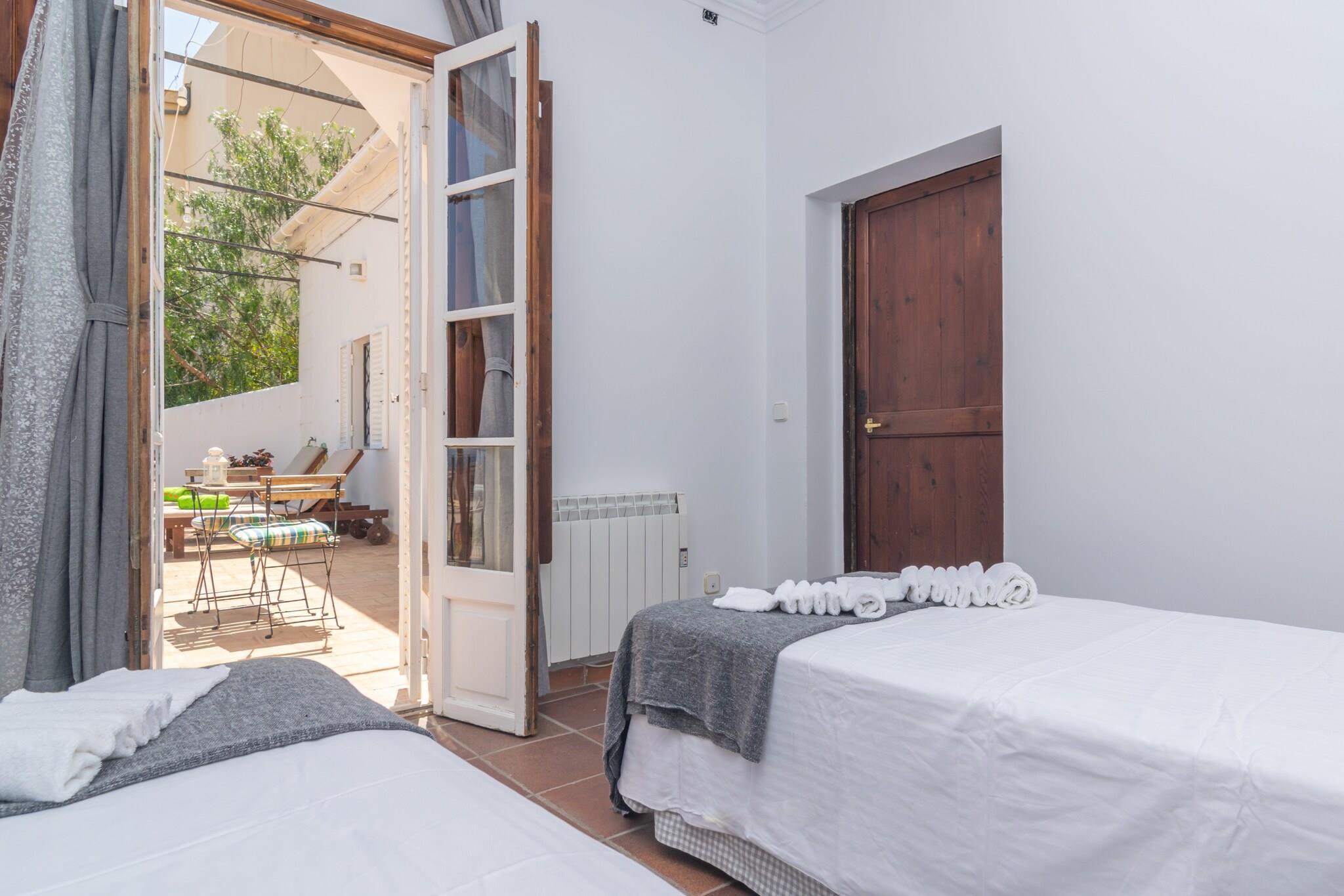 Die aufeinander abgestimmten, möblierten Terrassen dieses tollen Hauses bilden die perfekte Bühne um sich zu sonnen, draußen zu Frühstücken oder für einen lustigen Grillabend mit Freunden und Familie. Dabei genießen Sie den Blick auf die Stadt, bis hin zum Meer in der Ferne. Das Grundstück ist eingezäunt und es gibt Nachbarn. Das Innere des zweistöckigen Hauses im Kolonialstil wurde renoviert und an die heutige Zeit angepasst. Im Erdgeschoss finden Sie ein geräumiges Wohnzimmer mit Smart-TV und einen Essbereich mit einem großen Tisch für gemeinsame Mahlzeiten. Die Küche ist unabhängig, hat einen Gasherd und ist mit allem ausgestattet, was Sie brauchen, um bequem zu kochen. Es gibt eine Waschmaschine, einen Trockner, ein Bügeleisen und ein Bügelbrett. Auf dieser Etage befindet sich ein Doppelzimmer mit Zugang zur Terrasse, sowie ein Gäste WC und ein Badezimmer mit Dusche. Im Obergeschoss befinden sich drei weitere Schlafzimmer. Zwei davon haben je zwei Einzelbetten; eines dieser Zimmer hat Zugang zur Terrasse. Das dritte Schlafzimmer hat ein Doppelbett und ein eigenes Bad mit Badewanne. Es stehen Ihnen 6 Ventilatoren und 6 Elektro-Heizkörper zur Verfügung. Wenn Sie mit Ihrem Baby reisen, können wir auf Anfrage ein Kinderbett und einen Hochstuhl zur Verfügung stellen. Das Haus befindet sich im ruhigen Stadtteil "El Terreno" in Palma de Mallorca. Aufgrund seiner privilegierten Lage ist das Meer ganz in der Nähe und tolle Sehenswürdigkeiten, wie z.B. das Schloss Bellver sind nur einen Katzensprung entfernt. Wenn Sie sich dem Zentrum nähern, das ganz in der Nähe liegt, finden Sie nicht nur exklusive Geschäfte und Luxusboutiquen, sondern auch eine Vielzahl von Museen und Kunstgalerien, darunter Es Baluard, das im Viertel Santa Catalina liegt und einen beeindruckenden Blick auf die alte Lonja, den Almudaina-Palast und natürlich die Kathedrale hat. Wir empfehlen Ihnen auch einen Bummel durch die Straßen des historischen Zentrums und des alten jüdischen Viertels, die voller charmanter kleiner Ecken und typisch mallorquinischer Häuser sind. Wenn Sie Lust auf ein Bad im Meer haben, befinden sich die Stände Es Molinar und Can Pere Antoni ganz in der Nähe Ihrer Unterkunft. Die Einfahrt ist 1,6 Meter hoch, bitte beachten Sie dies, wenn Sie Ihr eigenes Auto mitbringen. Hinweis: Diese Unterkunft richtet sich an Familien und Gäste über 30 Jahre, die einen ruhigen Aufenthalt suchen. Buchungen für Partys oder Feiern werden nicht akzeptiert. Eine Kopie des Ausweisdokuments aller Gäste ist erforderlich, um die Reservierung zu bestätigen. Eventuelle Nebenkosten müssen beim Anbieter nachgefragt werden. Haustiere sind verboten. Partys oder ähnliche Veranstaltungen sind nicht gestattet. Es gibt Parkplätze für 1 Autos in der Garage. Entfernungen Strand: 4.3 km - Can Pere Antoni Flughafen: 12.4 km - Palma de Mallorca Golfplatz: 6 km - Golf Son Vida Ortsmitte: 3.2 km - Palma Bahnhof: 3.5 km - Estació Intermodal Bushaltestelle: 0.35 km - Plaza Gomila Fähre: 3.2 km - Palma Krankenhaus: 2.1 km - Clínica Juaneda Touristen Lizenz: ETV/9456Einheitsregister: ESFCTU00000702600016743000000000000000000000ETV/94564Auf den Balearen gibt es eine Touristensteuer, die Ecotasa genannt wird. Diese Steuer muss vom Gast bezahlt werden. Der zu zahlende Betrag beträgt zwischen 0.55EURO pro Nacht und Gast in der Nebensaison und 2.2EURO pro Nacht und Gast in der Hochsaison. Ab dem 9. Tag reduziert sich die Steuer um die Hälfte. Personen unter 16 Jahren sind davon ausgenommen
