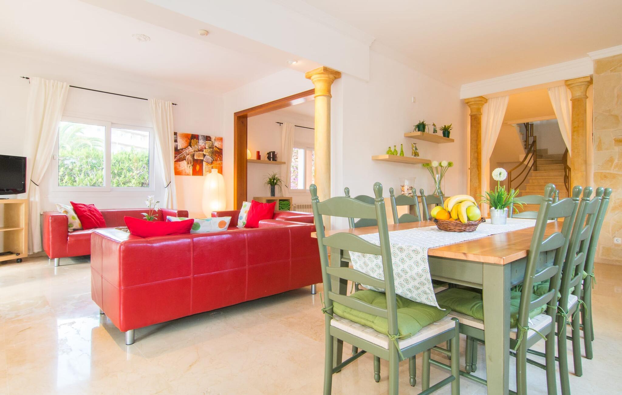 Die Region um Cales de Mallorca ist reich an Höhlen, den meisten auf der Insel, und bietet zahlreiche Möglichkeiten, auf den Spuren von Schmugglern und Piraten zu wandeln; Die Cova des Pirata, die Cova des Pont und die beleuchteten Höhlen von Coves dels Hams lassen der Fantasie Ihrer Kinder freien Lauf. Auch die berühmten Felsbuchten und Badebuchten der Ostküste warten darauf, erobert zu werden; Seien Sie vorbereitet – der Zugang ist nicht immer einfach! Und wenn Ihnen das alles zu viel ist, lädt das charmante kleine Hafenstädtchen Portocolom mit seinen engen Gassen, Cafés, Fischrestaurants und einer breiten Platanenallee zum Entspannen und Entspannen ein. Auch ein langsameres Tempo kann ein Abenteuer sein! Sobald Sie Manacor erreicht haben, haben Sie es fast geschafft. Streben Sie einen Punkt auf halber Strecke zwischen den Küstenstädten Portocolom und Porto Cristo an, steuern Sie den kleinen Ferienort Calas (oder Cales) de Mallorca an und halten Sie Ausschau nach einigen hohen Palmen. So können Sie die Villa „Palmas“, die in einer ruhigen Straße in der Nähe eines Hotels liegt, nicht übersehen. Kleine Sandbuchten säumen hier wie eine Perlenkette die Küste, während landeinwärts in Richtung Felanitx ein Vorgeschmack auf den ruhigeren und traditionelleren Osten Mallorcas lockt.