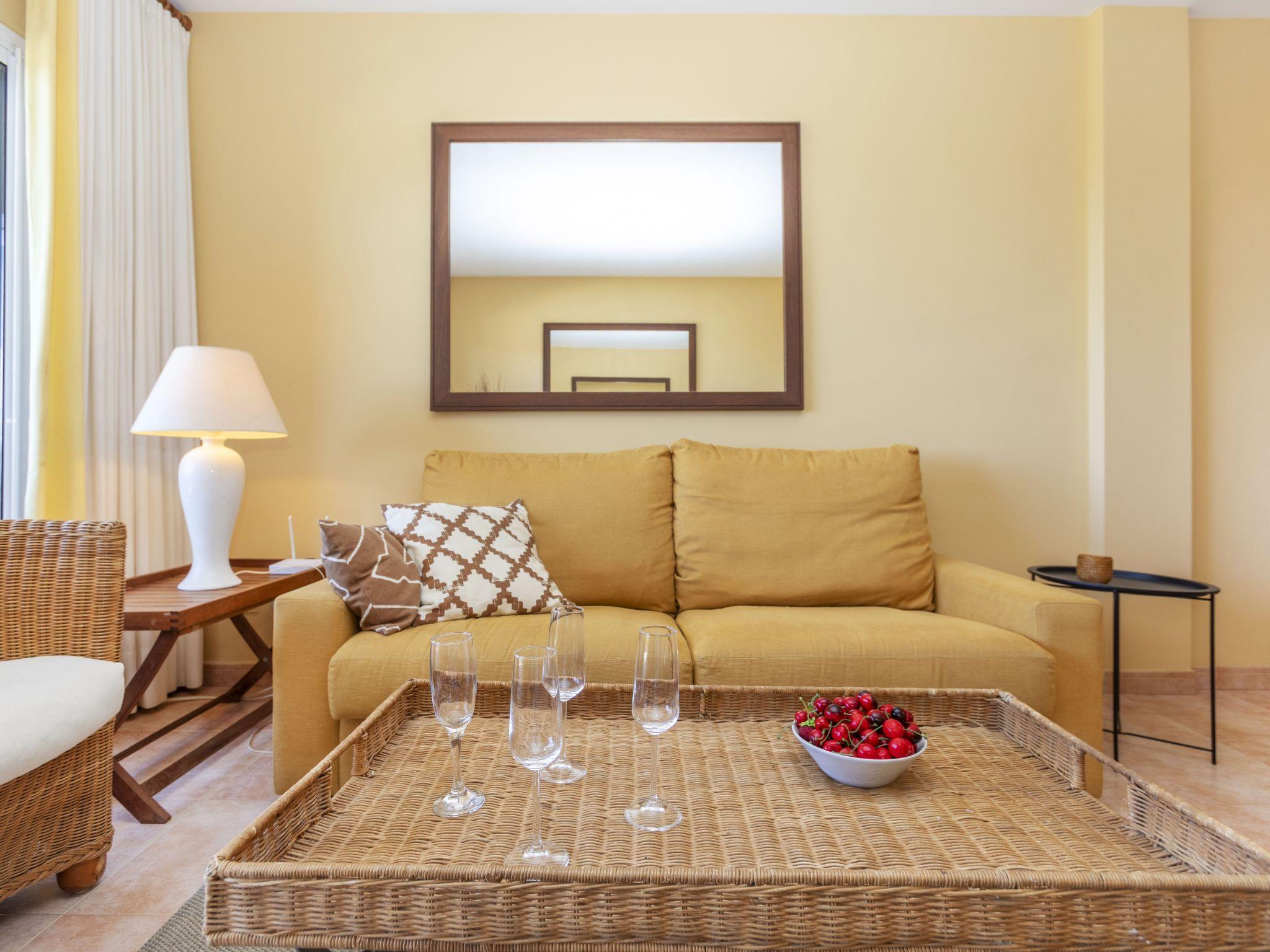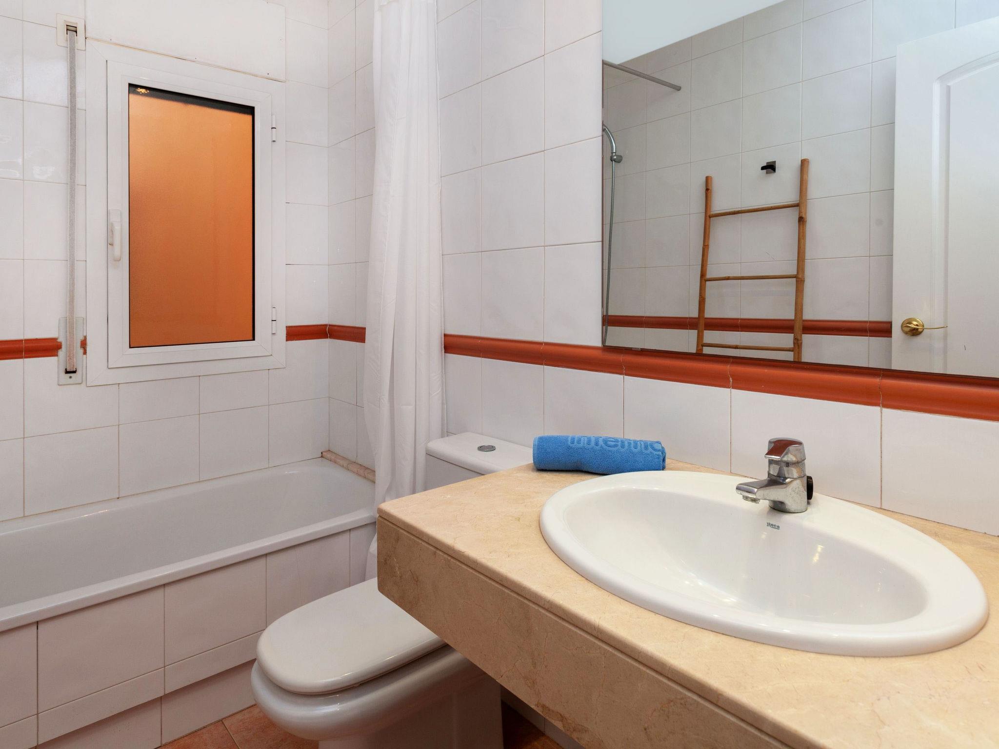 "Port Pals CIII Vista Bonita", 3-Zimmer-Wohnung 97 m2 im 2. Stock. Zweckmässig eingerichtet: Wohn-/Esszimmer mit TV-Anschluss und Digital-TV (Flachbildschirm). Ausgang zur Terrasse. 1 Zimmer mit 1 franz. Bett (140 cm, Länge 190 cm), Bad/Bidet/WC. Ausgang zur Terrasse. 1 Zimmer mit 1 Doppelbett (2 x 90 cm, Länge 190 cm). Offene Küche (Backofen, Geschirrspüler, 4 Glaskeramikplatten, Mikrowelle, Tiefkühler, elektrische Kaffeemaschine). Bad/WC. Keine Heizmöglichkeit. Terrasse. Terrassenmöbel. Sicht auf das Meer und das Schwimmbad. Zur Verfügung: Waschmaschine, Bügeleisen, Kinderhochstuhl, Babybett, Haartrockner. Internet (WLAN, gratis). Parkplatz Nr. 8 (1 Auto). HUTG-016441 // Reg. Nr.: ESFCTU00001700700042500000000000000000000HUTG-0164415