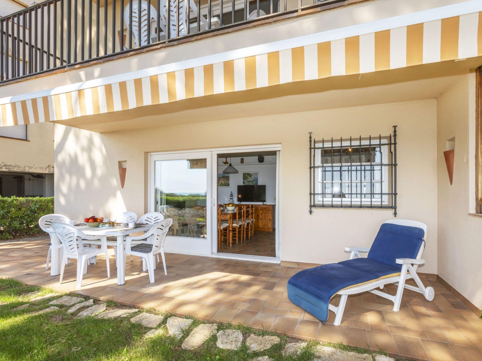 "Melis II M3 Playa de Pals", 4-Zimmer-Wohnung 90 m2, im Erdgeschoss. Zweckmässig und gemütlich eingerichtet: Wohn-/Esszimmer mit 1 Diwanbett (135 cm, Länge 190 cm), offenem Kamin (nur Deko), Digital-TV, Flachbildschirm, E-Heizofen und Ventilator. Ausgang zur Terrasse. 1 Zimmer mit 2 Betten (80 cm, Länge 180 cm). 1 Zimmer mit 2 Betten (90 cm, Länge 190 cm). Ausgang zur Terrasse. 1 Zimmer mit 2 Betten (90 cm, Länge 190 cm), Bad/Bidet/WC. Ausgang zur Terrasse. Offene Küche (3 Glaskeramikplatten, Toaster, Wasserkocher, elektrische Kaffeemaschine, Kombinationsmikrowelle) mit Bar. Dusche/WC. Terrasse 12 m2, Terrasse 9 m2, Garten 80 m2, Rasen. Terrassenmöbel, Liegestühle (2). Panoramasicht auf das Meer. Zur Verfügung: Safe, Kinderhochstuhl, Babybett bis 2 Jahre, Haartrockner. Internet (WLAN, gratis). Parkplatz. Bitte beachten: Nichtraucher-Unterkunft. TV nur ES, DE, FR. HUTG-001761 // Reg. Nr.: ESFCTU00001700700034986300000000000000000HUTG-0017614