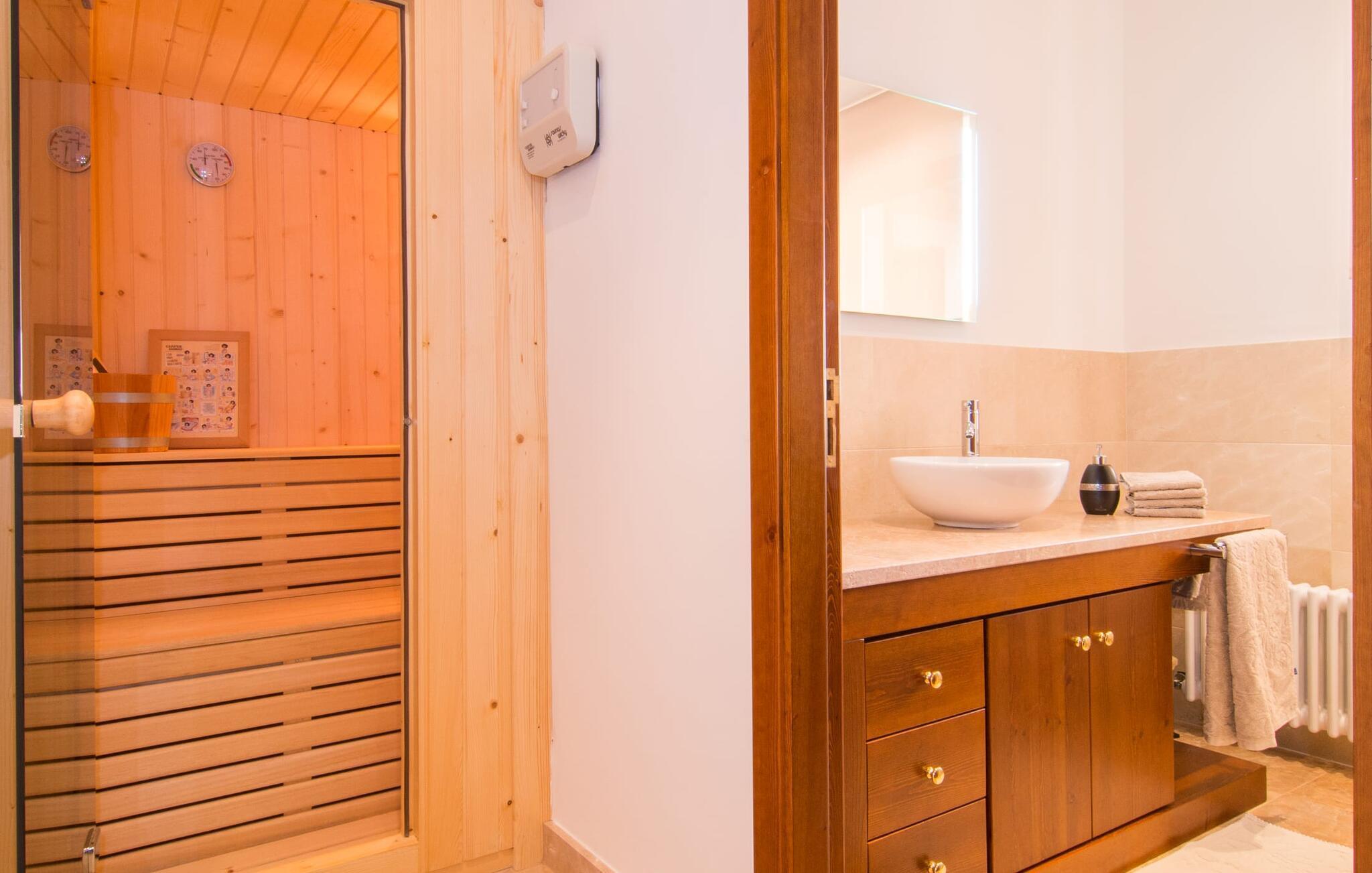 Beim Betreten des Hausinneren stellen wir schnell fest, dass dieses keineswegs weniger beeindruckend ist als der Außenbereich. Ein großes Wohn-/Esszimmer bildet das Herzstück des Erdgeschosses und vereint auf gelungene Weise modernen Wohnkomfort mit Gemütlichkeit. Helle Wände bilden den Rahmen für harmonisch abgestimmte, kontrastreiche Möbel und ausgewählte Einzelstücke an den Wänden. Auf der eleganten Eckcouch lässt es sich wunderbar entspannen und großzügig ausbreiten. Der riesige Flachbildfernseher sorgt bei Bedarf für gute Unterhaltung, der Kamin sorgt für wohlige Wärme an kühlen Tagen. Am langen, massiven Esstisch mit uriger Bank und edlen Stühlen finden alle Reisenden bequem Platz für anspruchsvolles Indoor-Dining. Die modern gestaltete Küche bietet hochwertige Geräte für den täglichen Bedarf, darunter einen Wasserkocher und eine Filterkaffeemaschine. Großzügig geschnittene und geschmackvoll eingerichtete Schlafzimmer bieten eine ideale Grundlage für erholsamen Schlaf. Die Räume verzichten auf störenden Schnickschnack und strahlen dadurch eine angenehme Ruhe und Klarheit aus. Alle Schlafzimmer verfügen über ein eigenes Bad sowie einen Fernseher. Von jedem dieser Zimmer aus können Sie zudem den Blick auf das Meer genießen. Erlesene Badezimmer runden die Zimmer ab. Hochwertige Armaturen werden mit einem geradlinigen, feinen Stil kombiniert. Als weitere Besonderheit der Ausstattung ist auch die Sauna zu erwähnen. Ein Bügeleisen und insgesamt vier Haartrockner sind im Haus vorhanden und müssen nicht von zu Hause mitgebracht werden.