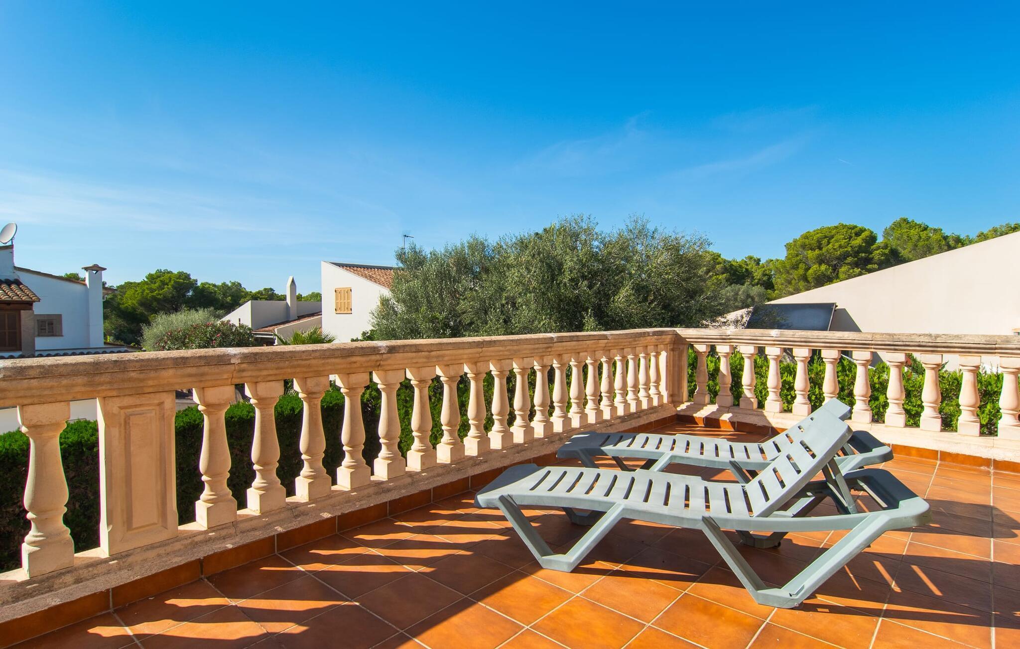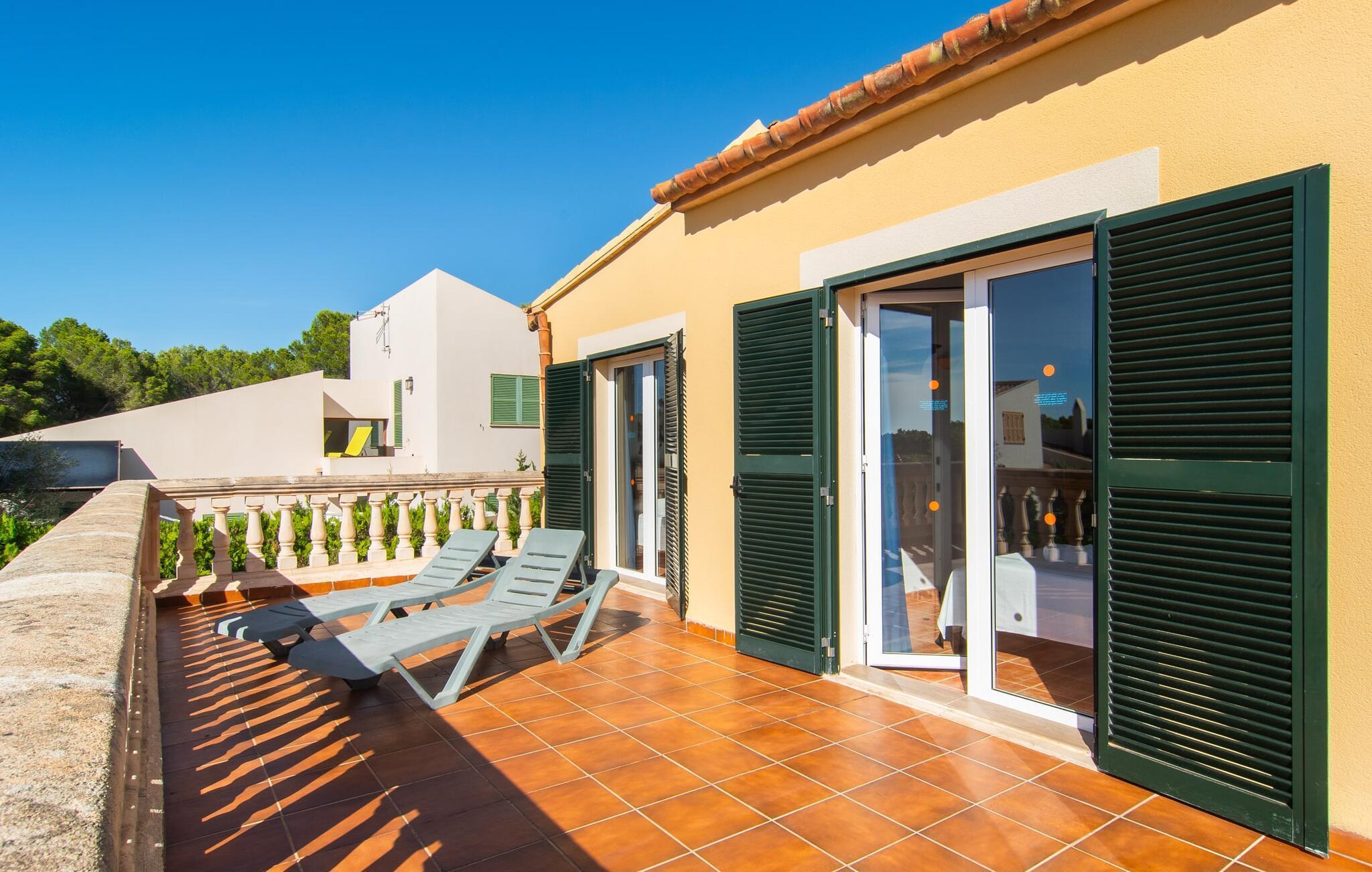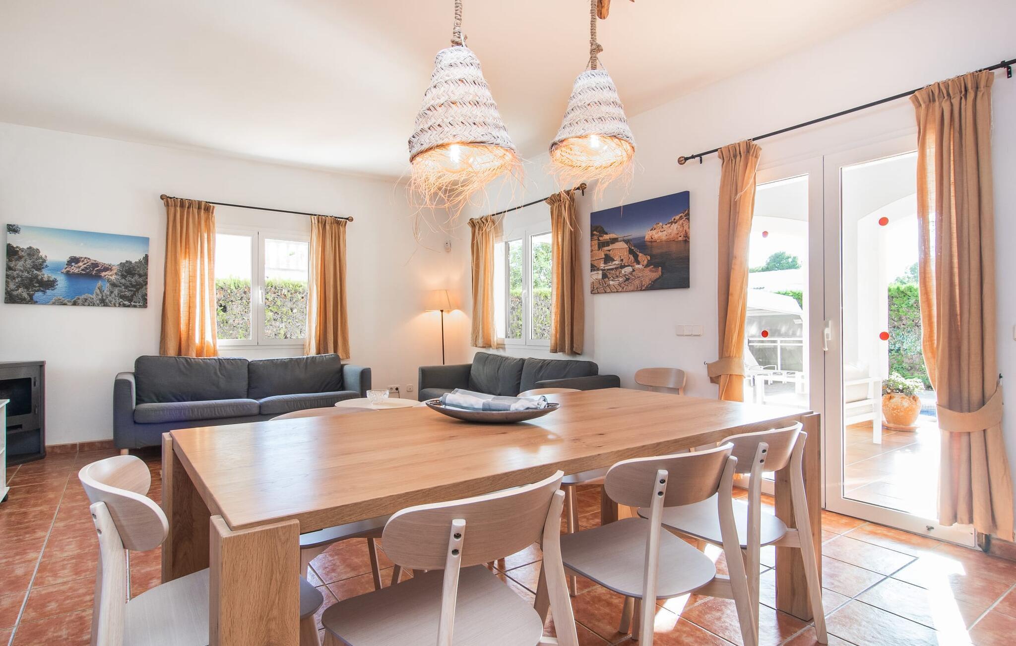 Im Erdgeschoss der Villa befindet sich ein gemütlicher, heller Wohn- und Essbereich mit Kamin und Zugang ins Freie. Die angrenzende Küche ist geräumig und mit modernen Geräten ausgestattet. Ebenfalls im Erdgeschoss befindet sich ein Hauswirtschaftsraum und ein Schlafzimmer mit Bad. Die weiteren drei Doppelzimmer liegen im Obergeschoss und haben jeweils Zugang zur sonnigen Balkonterrasse. Auf dieser Etage stehen zwei Badezimmer zur Verfügung. Alle Fenster der Villa sind mit Rollläden ausgestattet, sodass Sie nachmittags gerne ein erholsames Nickerchen genießen können. Die Villa ist mit einer Heizung ausgestattet, sodass Sie hier auch in den kühleren Monaten des Jahres einen gemütlichen Rückzugsort finden.