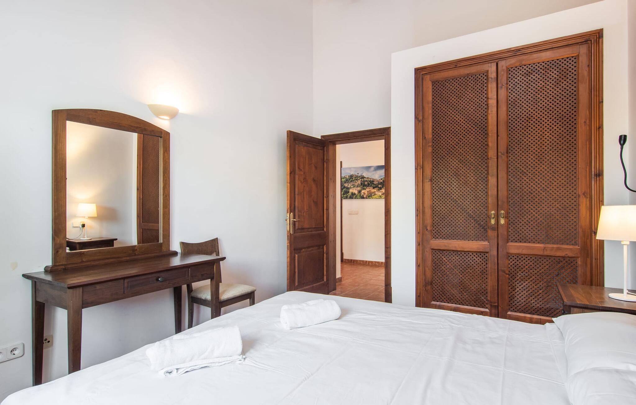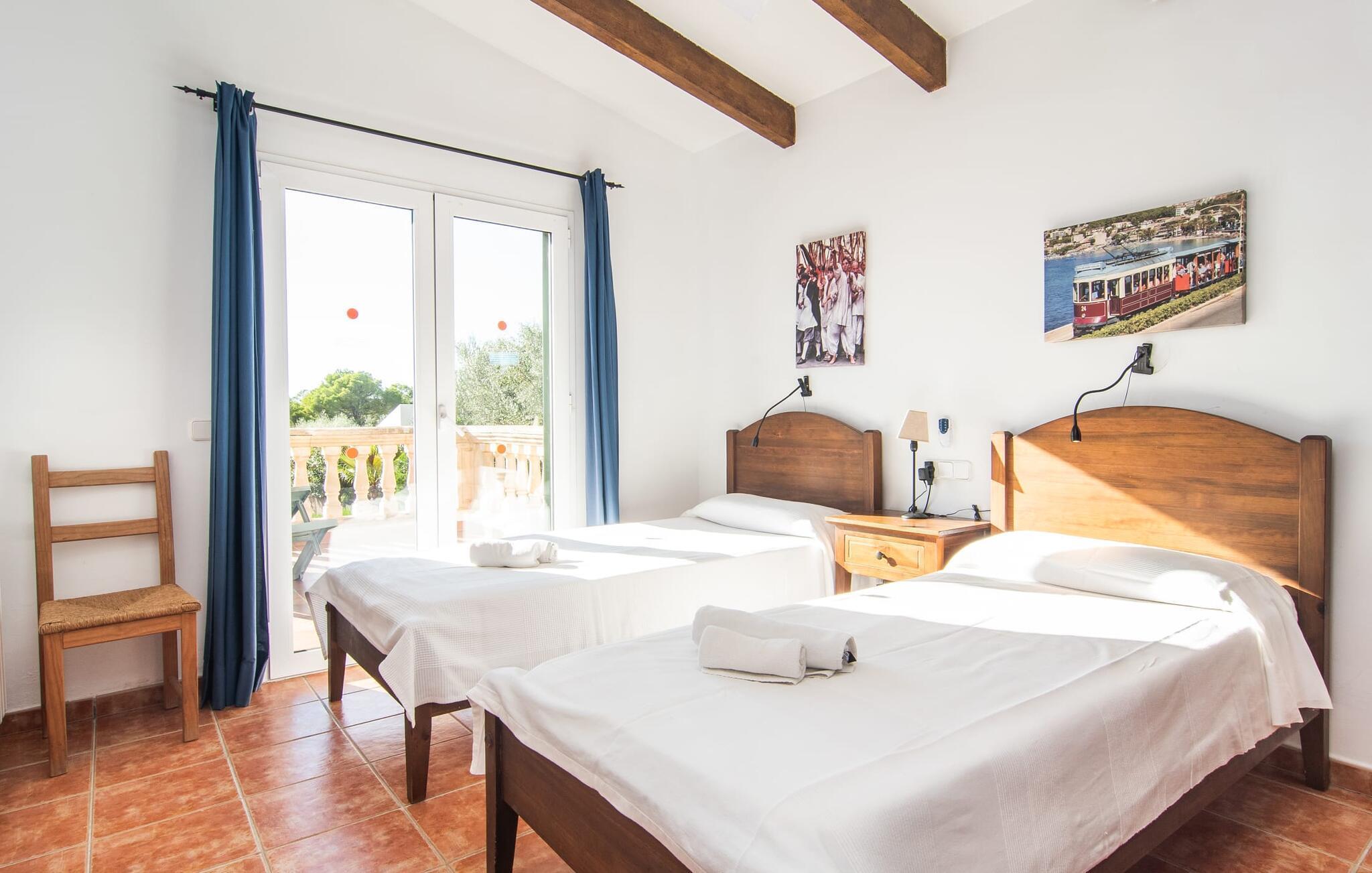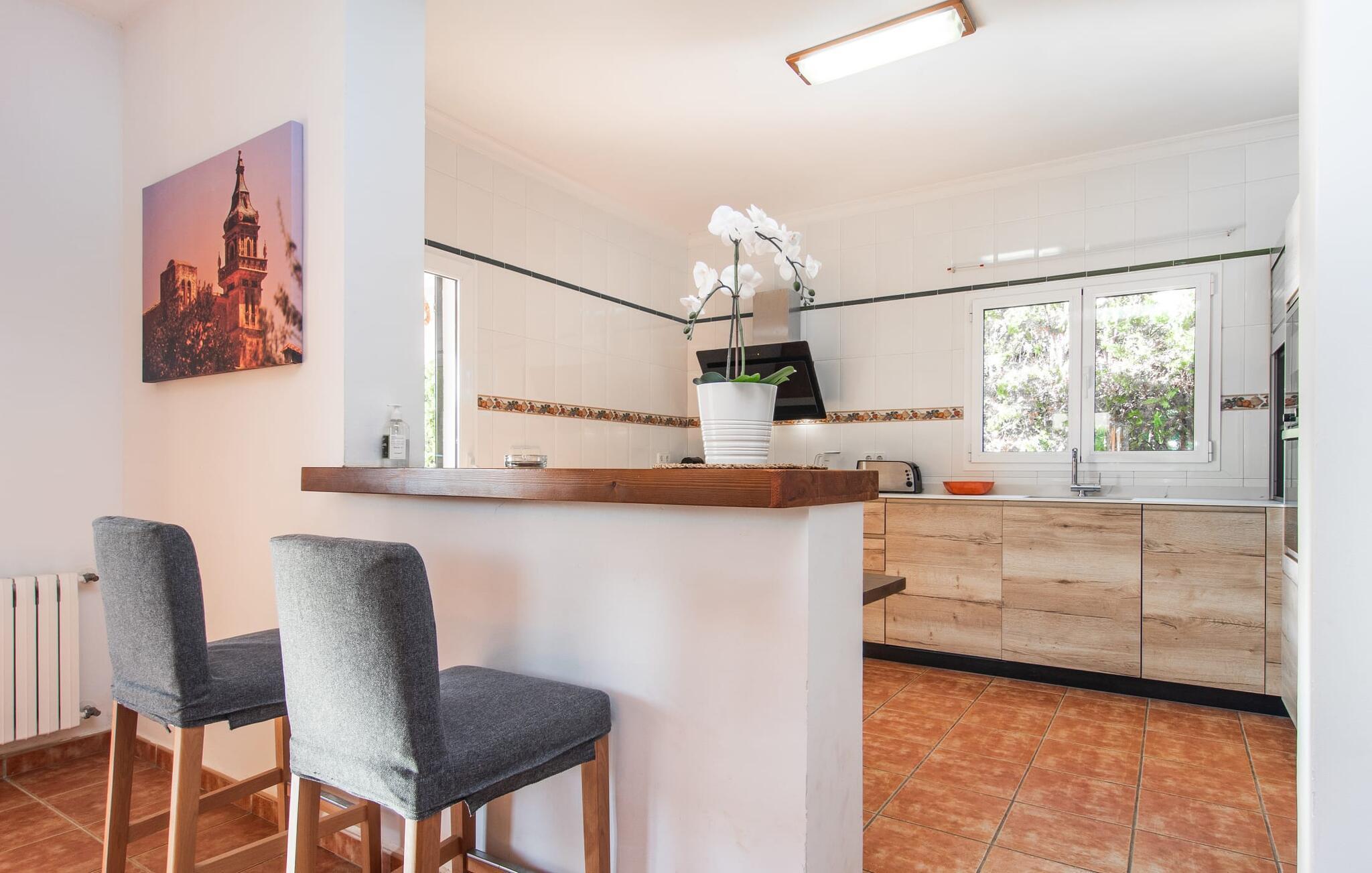 Im Erdgeschoss der Villa befindet sich ein gemütlicher, heller Wohn- und Essbereich mit Kamin und Zugang ins Freie. Die angrenzende Küche ist geräumig und mit modernen Geräten ausgestattet. Ebenfalls im Erdgeschoss befindet sich ein Hauswirtschaftsraum und ein Schlafzimmer mit Bad. Die weiteren drei Doppelzimmer liegen im Obergeschoss und haben jeweils Zugang zur sonnigen Balkonterrasse. Auf dieser Etage stehen zwei Badezimmer zur Verfügung. Alle Fenster der Villa sind mit Rollläden ausgestattet, sodass Sie nachmittags gerne ein erholsames Nickerchen genießen können. Die Villa ist mit einer Heizung ausgestattet, sodass Sie hier auch in den kühleren Monaten des Jahres einen gemütlichen Rückzugsort finden.