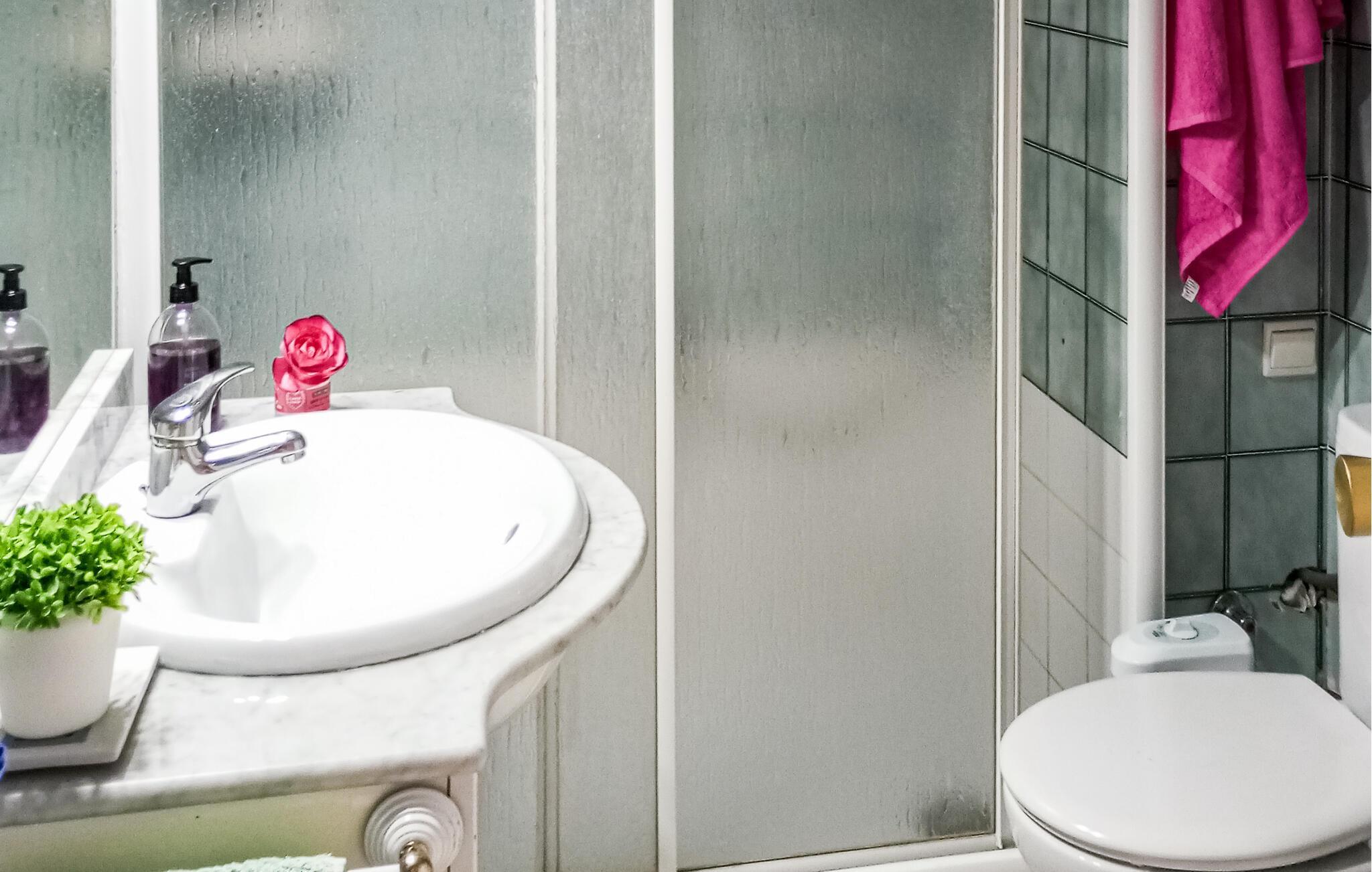 Badezimmer 7m2 (nr. 1) - WC. Warmes und kaltes Wasser. Handdusche und Badewanne