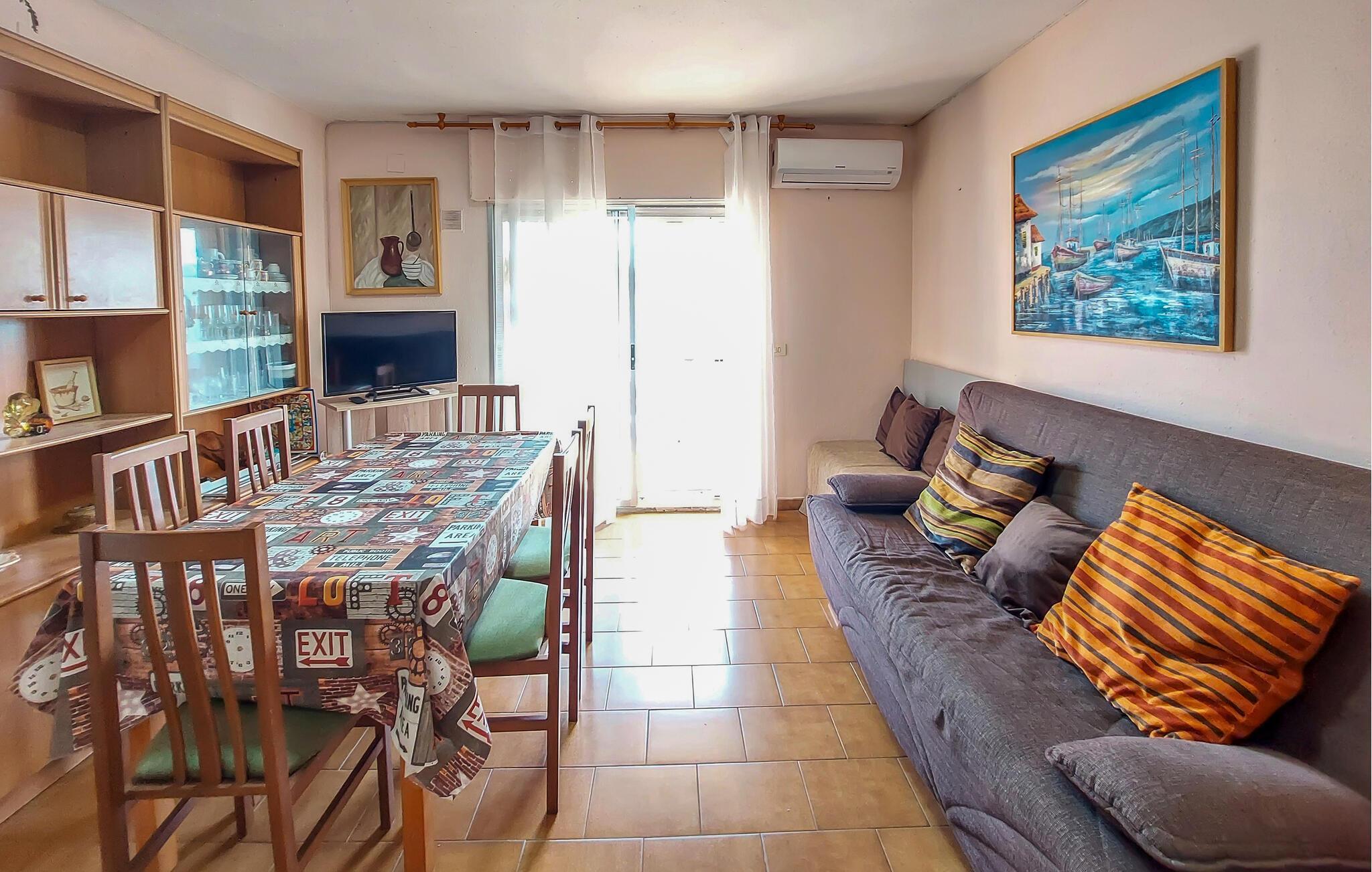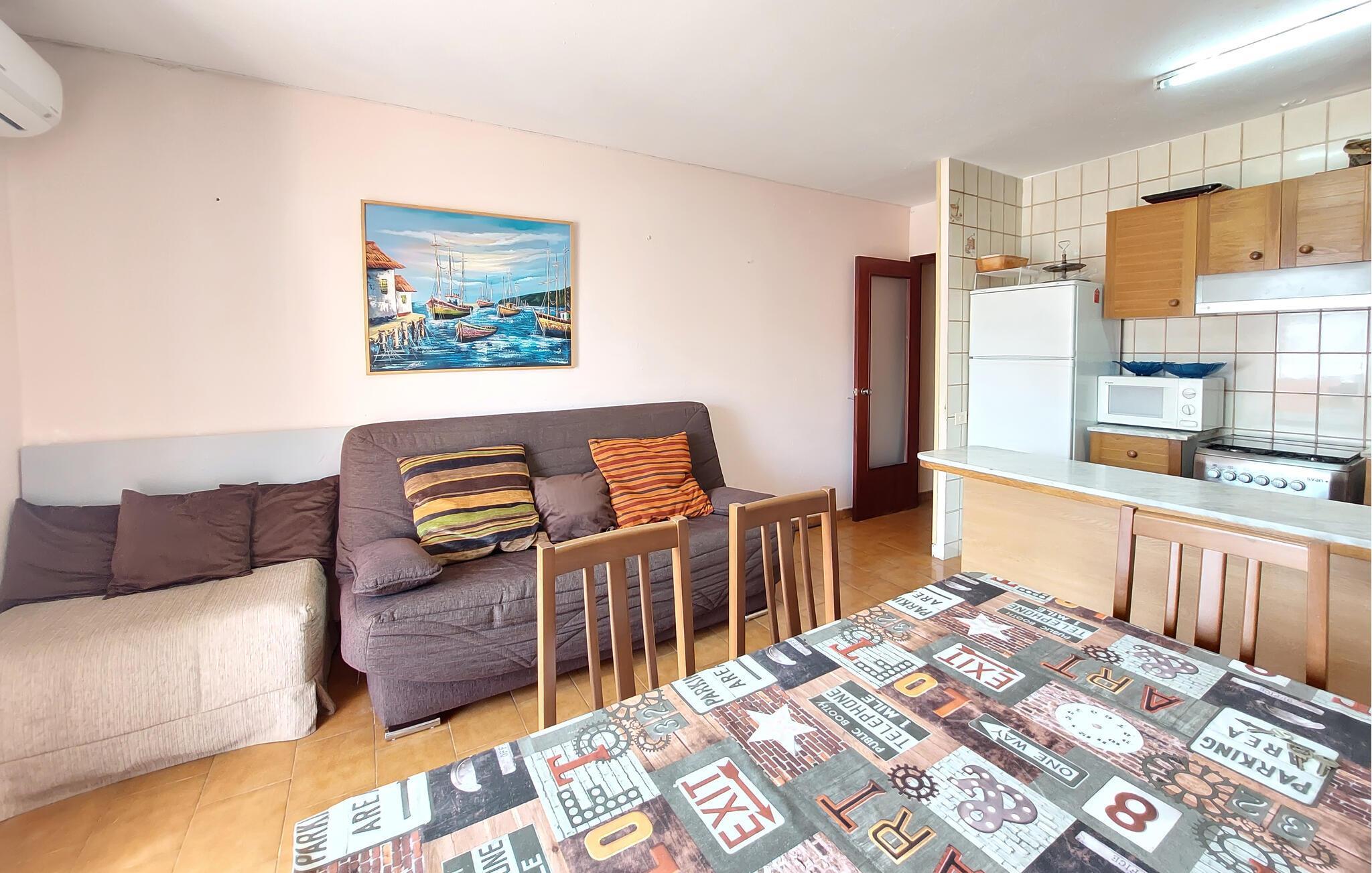 Die praktisch möblierte Wohnung empfängt Sie in idealer Lage nahe dem Strand und eignet sich bestens für einen Urlaub mit wunderbaren Stunden am Meer. Genießen Sie die gemeinsame Zeit und schöne Abende im einladenden Wohnzimmer auf dem bequemen Sofa.