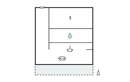 Badezimmer 5m2 (nr. 1) - WC. Warmes und kaltes Wasser. Dusche