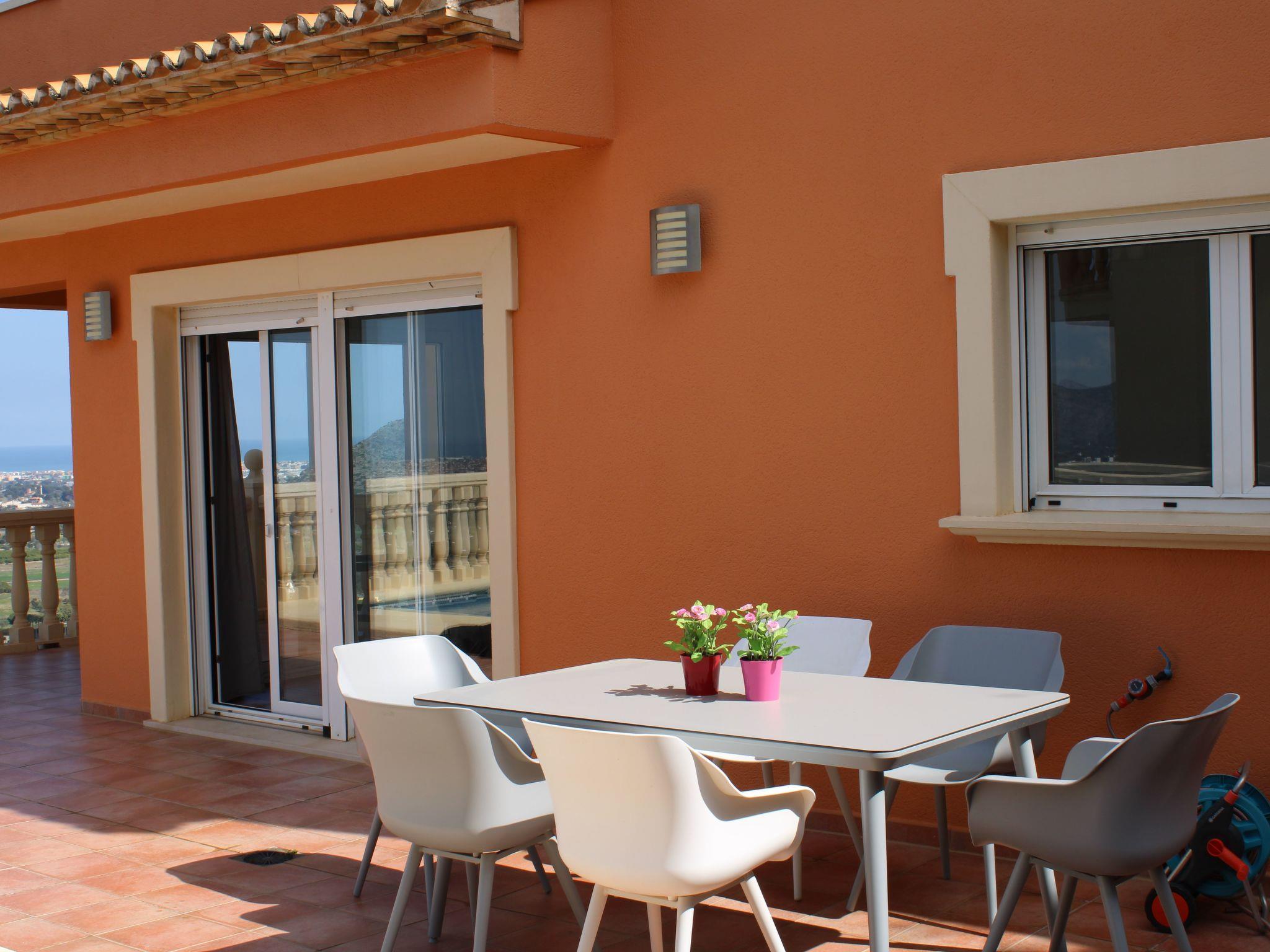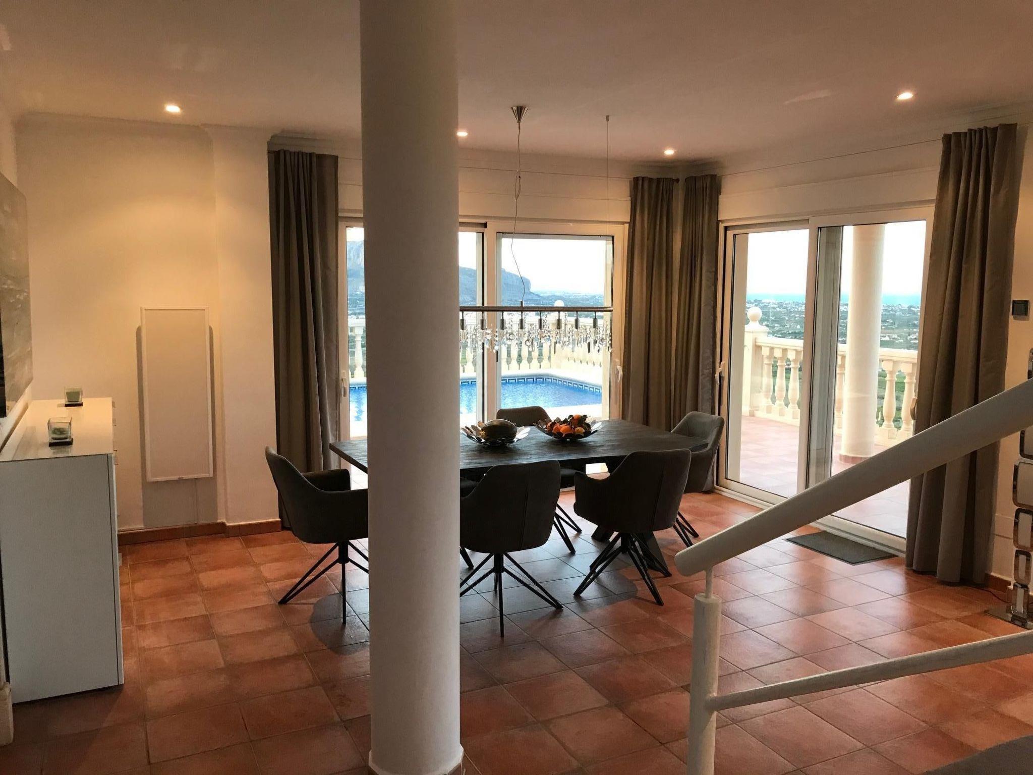 Entdecken Sie dieses modern eingerichtete Ferienhaus in der Villengegend der Urbanisation La Sella bei Dénia, gelegen auf einem geschlossenen Privatgrundstück. Die ruhige Lage in einem besonders ruhigen Teil der Urbanisation, am Ende einer kaum befahrenen Sackgasse, garantiert Privatsphäre und Erholung pur. Von diesem herrlichen Zufluchtsort aus genießen Sie einen phantastischen Blick auf das etwa 10 km entfernte Mittelmeer, das Segària-Gebirge, Dénia und den Naturpark Montgó sowie die grüne Ebene mit ihren Orangen-, Zitronen- und Mandelhainen.