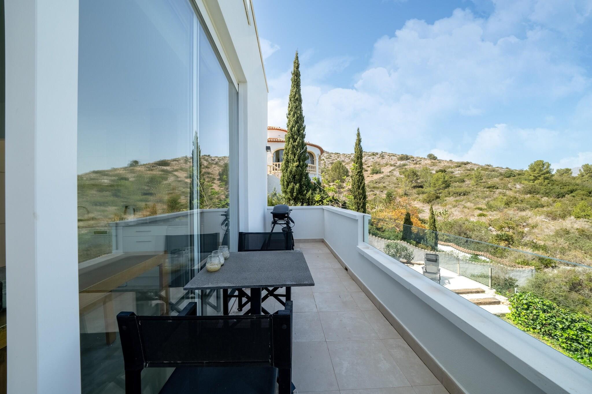 Eingebettet in die ruhige Urbanisation Monte Solana in der Nähe von Pedreguer ist diese elegante Ein-Zimmer-Wohnung der perfekte Rückzugsort für zwei Personen. Mit privatem Pool, Dachterrasse und Garten bietet sie eine ruhige Lage, nur 8 km von Denias Stränden und dem pulsierenden Stadtzentrum entfernt. Die Wohnung grenzt an ein Naturschutzgebiet und bietet Ihnen einen freien Blick auf die Landschaft und das ferne Meer. Der offene Wohnbereich umfasst eine gut ausgestattete Küche, einen gemütlichen Wohn- und Schlafbereich mit Klimaanlage und ein separates Badezimmer. Im Außenbereich erwarten Sie eine sonnige Terrasse mit Sitzgelegenheiten, ein über eine Außentreppe erreichbarer Wintergarten und ein kompakter 5 x 3 m großer Pool für ein erfrischendes Bad. Ob Sie auf den nahegelegenen Wanderwegen Montgó und Bernia wandern, in La Sella (8,7 km) Golf spielen oder die nur 2 km entfernte lokale Küche genießen - diese Wohnung bietet Entspannung und Abenteuer zugleich. Mit kostenlosem WLAN, einer Waschmaschine und guter Anbindung an öffentliche Verkehrsmittel ist sie ein komfortabler und praktischer Ausgangspunkt, um die Costa Blanca zu erkunden.