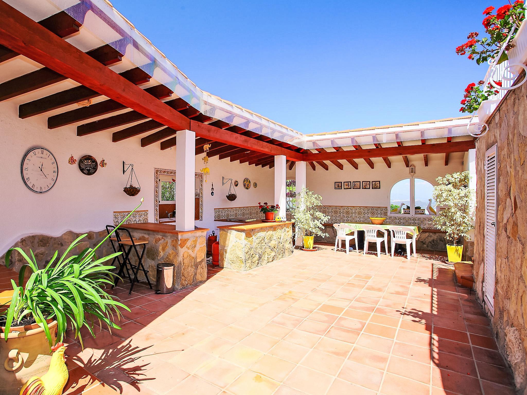 "Casa Gran Sorolla", 3-Zimmer-Haus. Komfortabel eingerichtet: unteres Geschoss: Wohn-/Esszimmer mit Digital-TV, Flachbildschirm, Holzofen, Klimaanlage und Warmluftheizung. 1 Zimmer mit 1 franz. Bett. 1 Zimmer mit 1 franz. Bett und Dusche/WC. Küche (Backofen, Geschirrspüler, 4 Glaskeramikplatten, Mikrowelle, Tiefkühler, elektrische Kaffeemaschine). Bad/WC. Eingeschränkte Sicht auf das Meer, die Berge, das Tal, den Garten und die Landschaft. Zur Verfügung: Waschmaschine, Babybett bis 2 Jahre. Internet (WLAN, gratis). Parkplatz (3 Autos). AT-434955-A