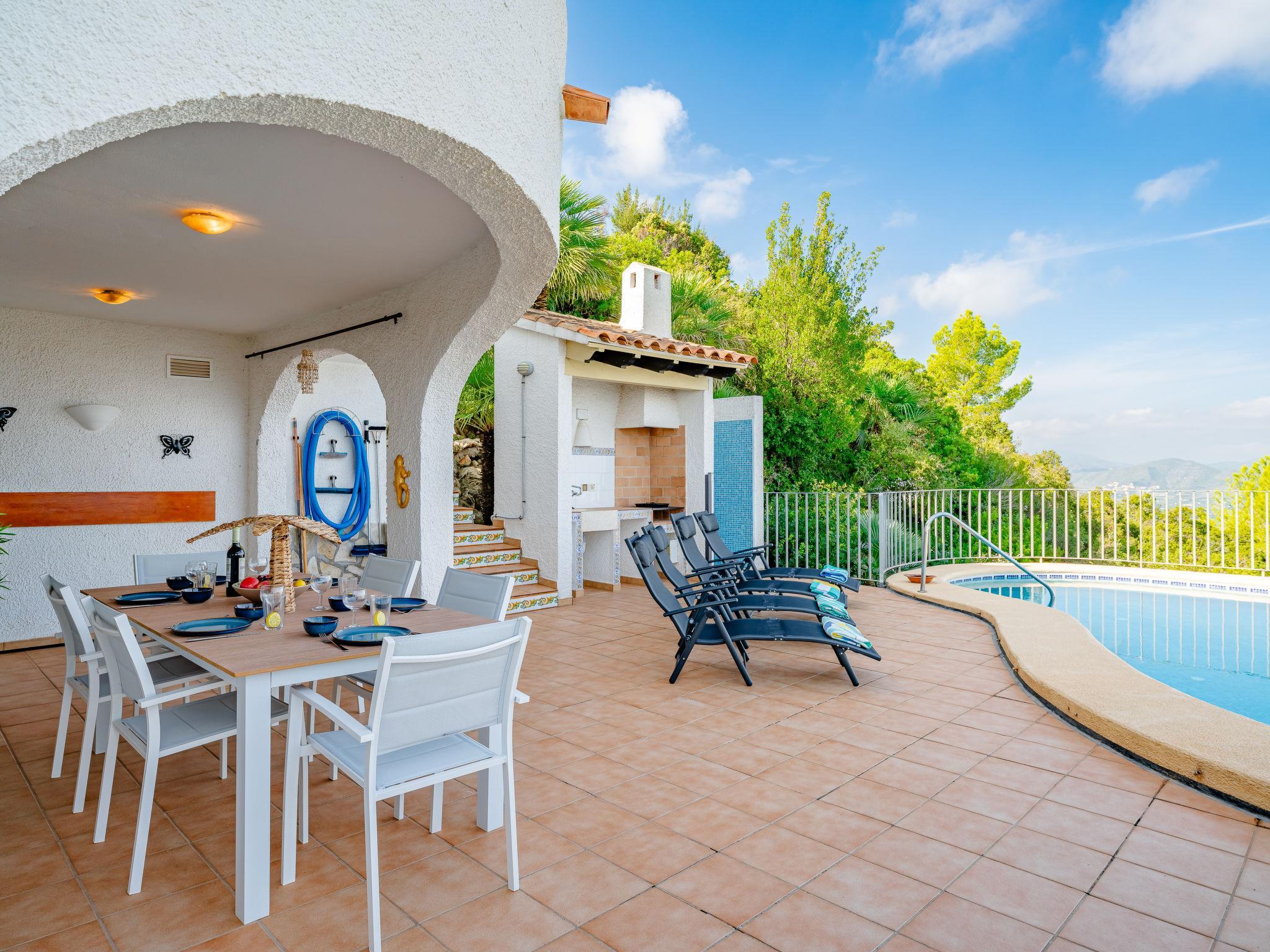 Grosses, schönes, komfortables Haus "Ticasa". Im Ortsteil Monte Pego, am Ortsrand, 8 km vom Zentrum von Pego, ausserhalb des Ortes, 20 km vom Zentrum von Dénia, ruhige, sonnige Lage, 8 km vom Meer, 8 km vom Strand. Zur Alleinbenutzung: schöner, gepflegter terrassierter Garten, Schwimmbad nierenförmig (8 x 4 m, 160 - 210 cm tief, saisonale Verfügbarkeit: 01.Jan. - 31.Dez.) mit Innentreppe. Aussendusche, Gartenmöbel, Grill, Parkplatz auf dem Grundstück. Einkaufsgeschäft 6 km, Supermarkt 6 km, Einkaufszentrum 11 km, Restaurant 6 km, Bar 6 km, Bushaltestelle 8 km, Sandstrand 8 km. Sporthafen 15 km, Golfplatz (18 Loch) 13 km, Surfschule 9 km. Der Besitzer akzeptiert keine Jugendgruppen.