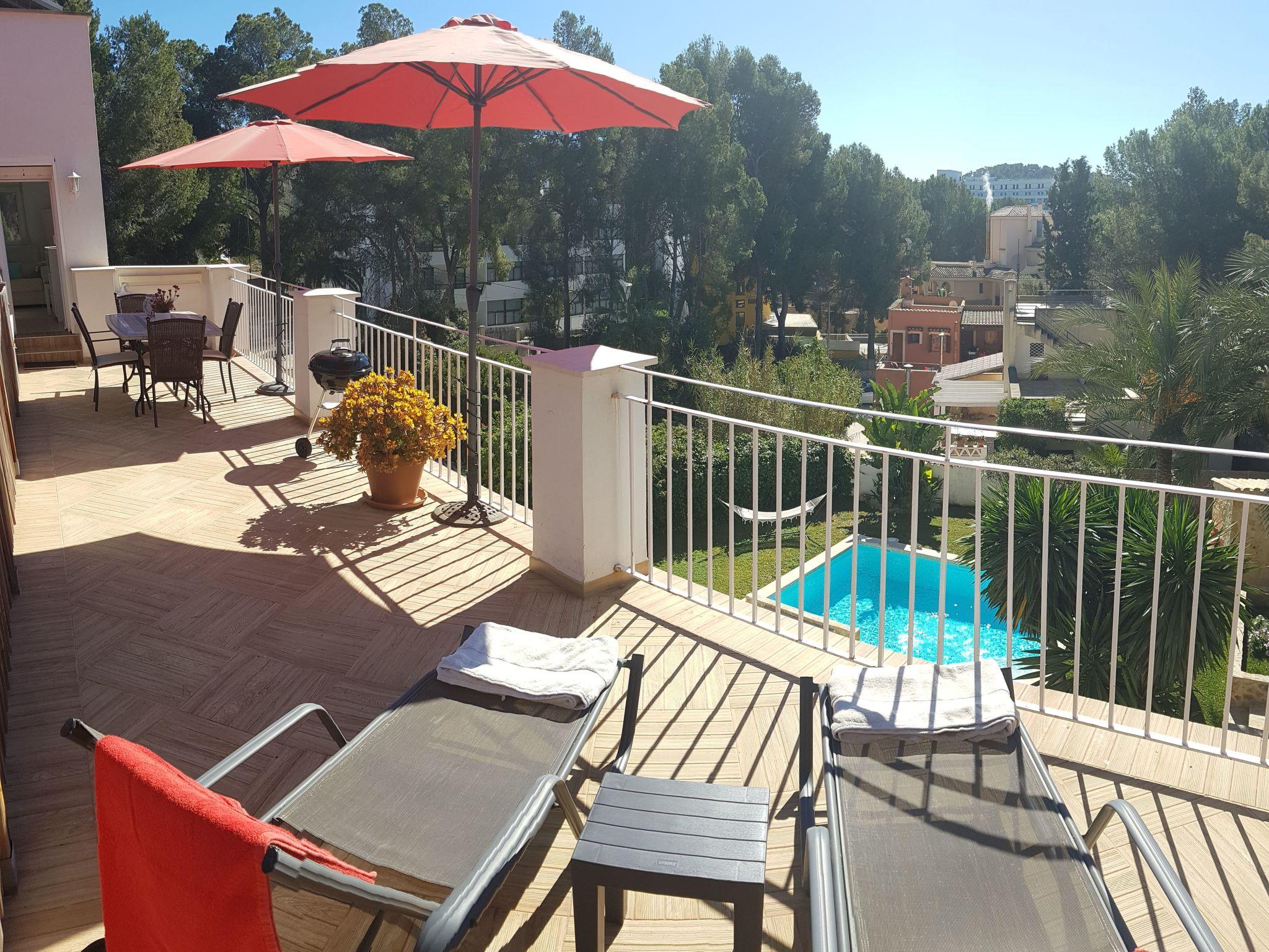 Die renovierte Ferienvilla, befindet sich im beliebten Badeort Paguera, im Südwesten der Insel Mallorca und nur 3 Minuten zu Fuß vom feinsandigen, flach abfallenden Sandstrand entfernt. Das großzügig gestaltete Haus liegt trotz seiner Nähe zu den Geschäften, sehr ruhig im Grünen und bietet Platz, für bis zu 12 Personen.XXL, strandnahe Ferienvilla mit Pool und Garten, 4 Terrassen, komfortabel ausgestattet, geeignet für bis zu 12 Personen,