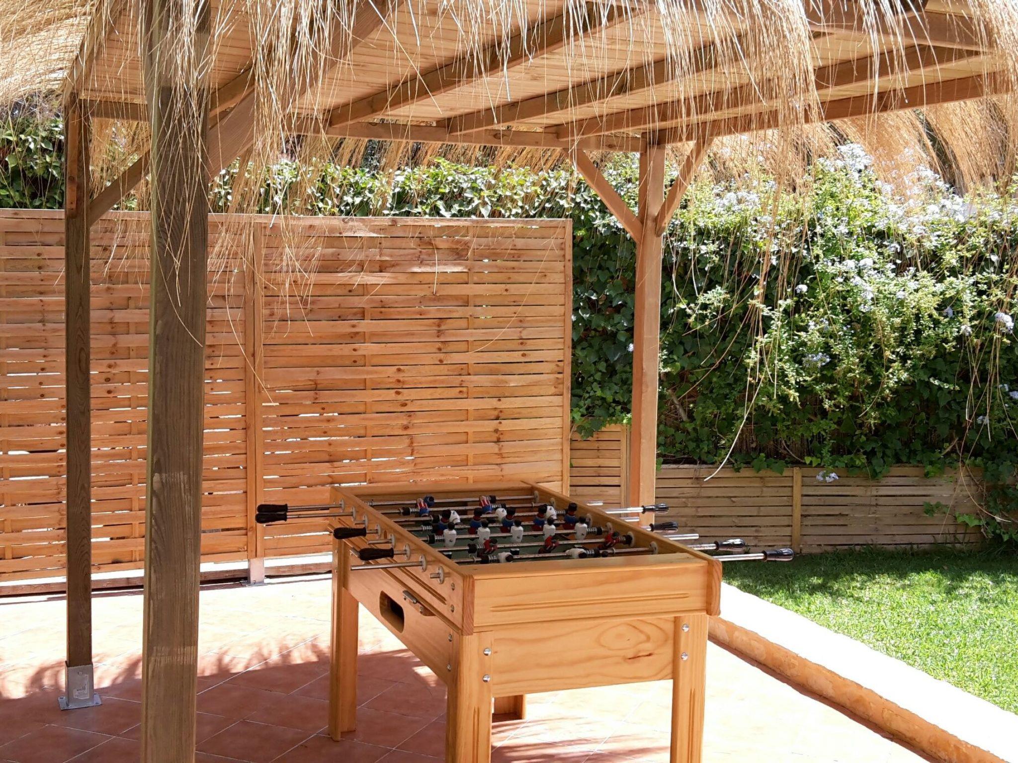 Die strandnahe Ferienvilla mit hohen Zimmerdecken und Stuck, verfügt über 4, voll ausgestatteten Appartements, die über ein gemeinsames Treppenhaus miteinander, verbunden sind. Im Inneren der Villa stehen einem, 6 Doppel-Schlafzimmer mit Safe, 4 Wohnzimmer mit großen Sofabetten und 4 Fernseher, 4 voll ausgestattete Küchen, 1 großes Esszimmer, 6 Bäder, 1 große Sauna mit extra 4 Duschen und Umkleideraum mit WC und 1 Abstellraum für Fahrräder zur Verfügung. Das Haus verfügt über Glasfaser Internet, überall Klimaanlagen und Heizungen, Moskitonetze, Rollläden, Fensterläden, Gesellschftsspielen, Radio, 4 Nespresso Kaffeautomaten und weitere Kaffeemaschinen etc.