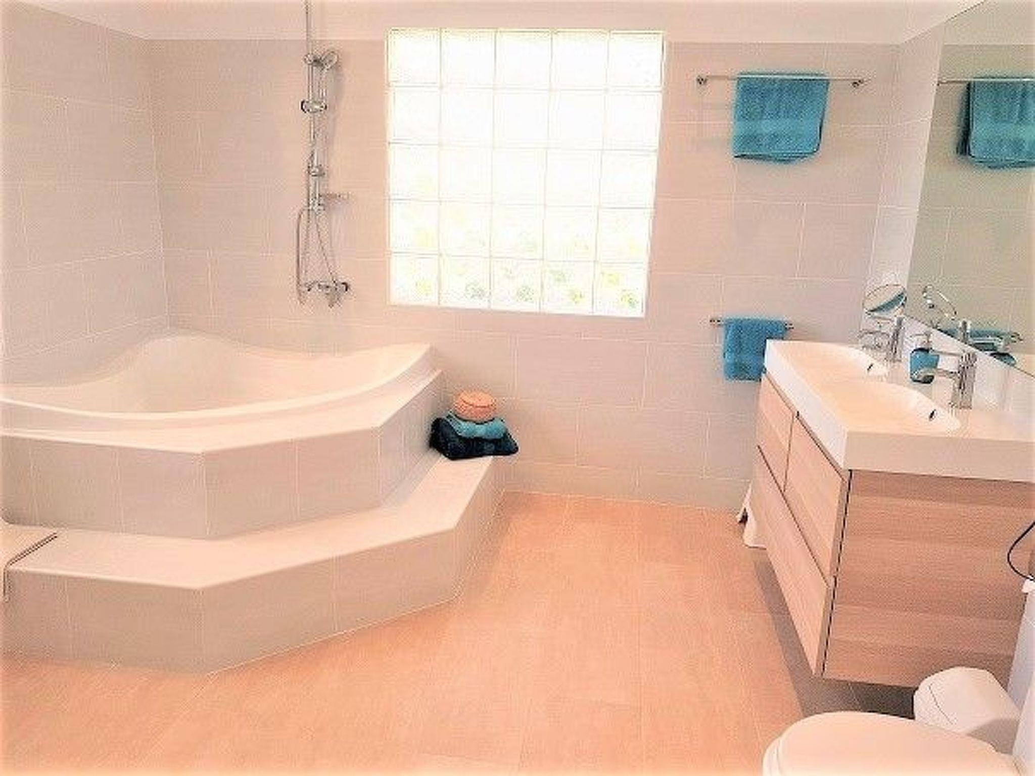 Die traumhafte Villa mit Meerblick vom Penthouse, welches erst kürzlich saniert wurde, bietet auf insgesamt 450m ² + Wohnfläche + Terrassen, viel Komfort und Ruhe.Ein großer Swimmingpool mit einem kleinen Wasserfall-und Relaxzone / Babybecken , eingebettet in einem 1500m² mediterranem Garten mit 2 Gartenduschen und einer Hängematte, Dart, Tischtennis, Tischkicker, einem großzügigen Barbecuebereich, 4 Terrassen, Sauna für bis zu 5 Personen, 1 abschließbarer Fahrradraum und 5 Parkplätze auf dem eigenen Hof, lassen keine Wünsche offen.