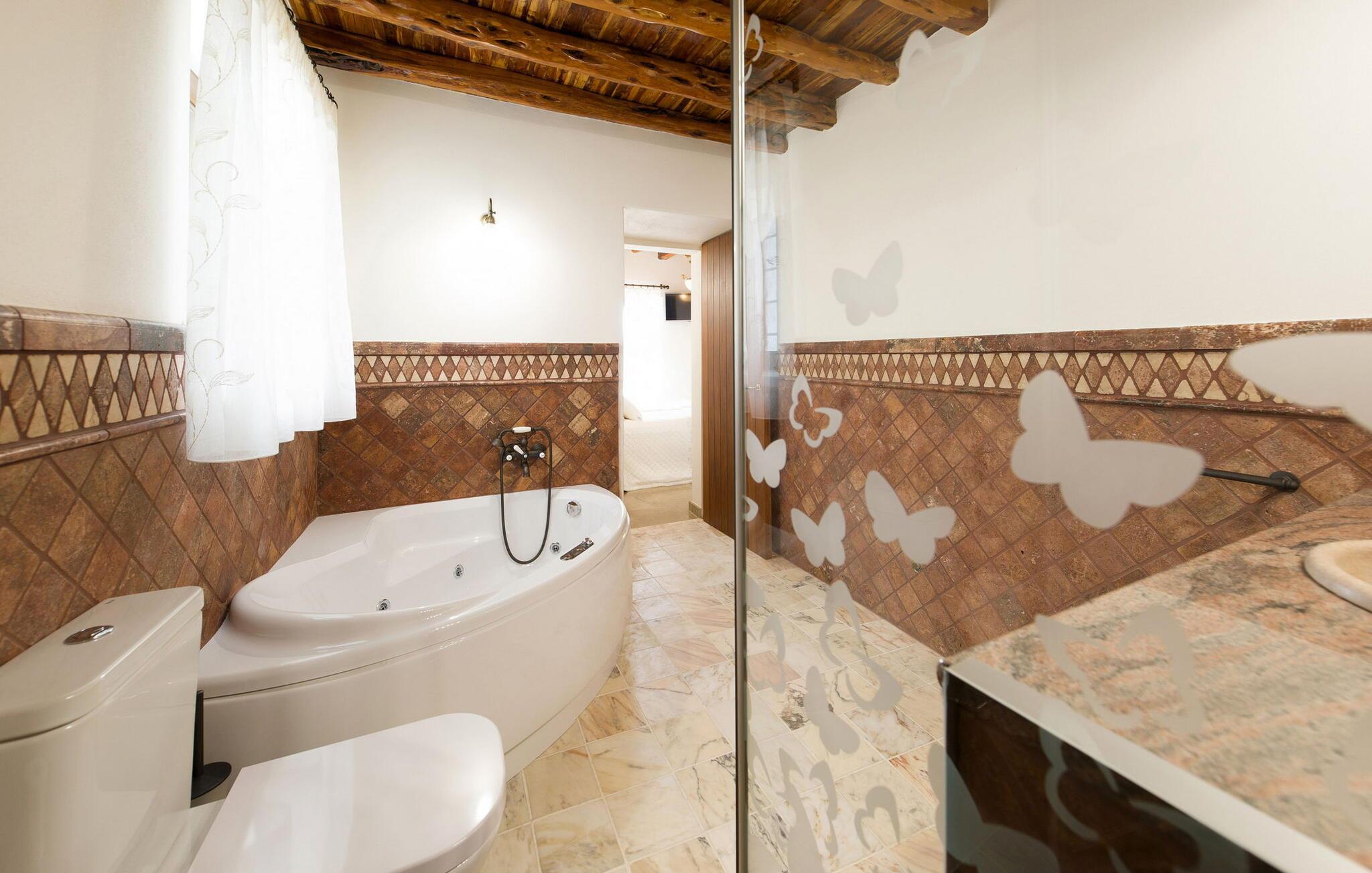 Das Haus verfügt über 4 Schlafzimmer und 3 Badezimmer, alle mit Dusche, eines davon mit einer Whirlpool-Badewanne. Zwei der Badezimmer sind en-suite und befinden sich im ersten Stock. Alle Schlafzimmer sind mit Klimaanlage und Sat-TV ausgestattet. Zwei Schlafzimmer verfügen über zwei Einzelbetten (200x90 cm), während die anderen beiden Doppelzimmer (200x150 cm) sind.