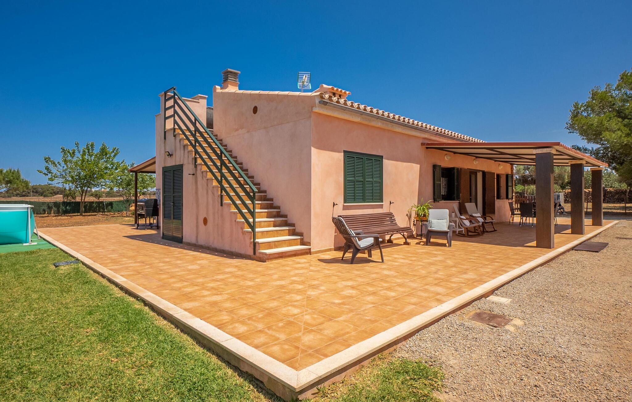Auf Wiedersehen, Zuhause – hallo, Feiertage: Packen Sie Ihre Koffer! Die gemütliche und familienfreundliche Villa „Petit Son Baulo“ erwartet Sie bereits im Norden der Insel. Klein, aber oho: Ihr Domizil punktet mit der Nähe zum Meer und das zu einem moderaten Preis. Die Villa befindet sich in ruhiger Lage und das weitläufige Anwesen ist gleichzeitig Ruheoase und Spielplatz. Ein kleiner Teil davon ist mit immergrünem Kunstrasen ausgestattet. Die Erwachsenen entspannen auf den bequemen Sonnenliegen und schmökern in ihren Lieblingsbüchern, während die Kinder im Garten schaukeln, herumtollen oder eine ausgelassene Runde Tennis spielen. Wenn Sie mal etwas Hunger verspüren, hängt ab und zu der Energiesnack griffbereit im Obstgarten. Im einfachen Pool wird die Wasserschlacht unter der mallorquinischen Sonne zum erfrischenden Abenteuer. Auf einer der beiden überdachten Terrassen finden Sie bestimmt einen hervorragenden Sitzplatz – entweder im Schaukelstuhl oder in den bequemen Korbstühlen – und füllen Ihren Teller mit lokalen Köstlichkeiten vom Holzkohlegrill oder genießen einfach ein kleines Glas edlen mallorquinischen Wein. Die Außentreppe führt direkt auf die Dachterrasse – so sind Sie nicht nur der Sonne, sondern auch dem Himmel etwas näher – obwohl Sie sich bereits im Paradies befinden. Neben der absoluten Privatsphäre genießen Sie einen atemberaubenden Blick in die Ferne – auf Wunsch sogar direkt auf das Meer. Familienzeit ist wertvolle Zeit: Grillen, plaudern, Spaß haben. Das ist ein Urlaub in entspannter Atmosphäre in der Villa „Petit Son Baulo“.