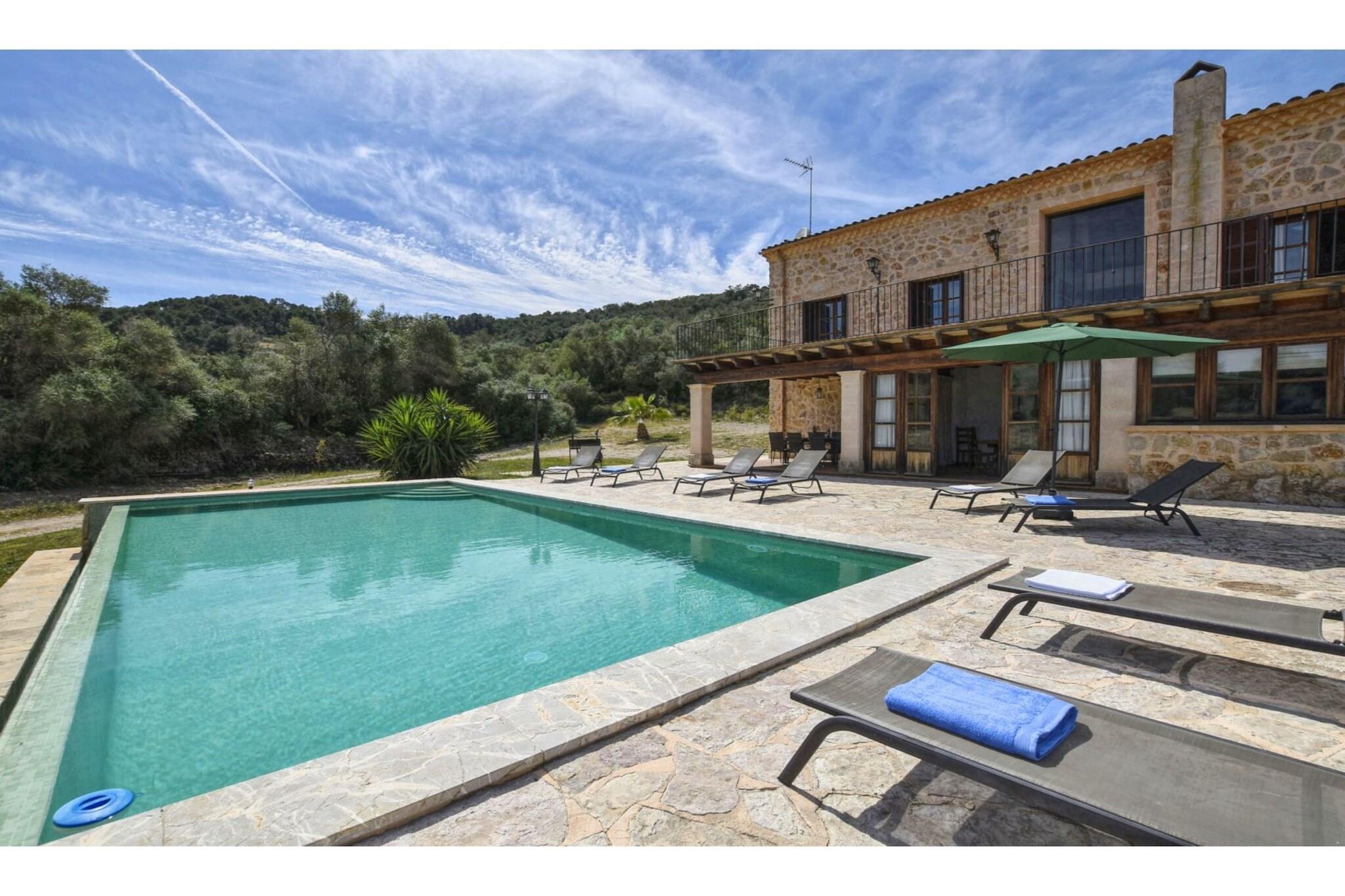 Traditioneller mallorquinischer Charme Dieses wunderschön restaurierte Ferienhaus in Petra verbindet klassisches Dekor mit warmem Inselcharakter und bietet einen ruhigen Rückzugsort für Familien und Gruppen. Mit vier einladenden Schlafzimmern, einem geräumigen Wohnzimmer und einer voll ausgestatteten Küche schafft es den perfekten Rahmen zum gemeinsamen Entspannen. Durchdachte Details, von antik inspirierten Möbeln bis hin zu hellen Gemeinschaftsbereichen, sorgen für eine einladende Atmosphäre. Entspanntes Leben im Freien Genießen Sie den privaten Pool, umgeben von einem möblierten Garten. Sonnenliegen laden zu langen Nachmittagen unter Mallorcas Himmel ein. Eine schattige Terrasse bietet einen gemütlichen Platz für Mahlzeiten im Freien oder abendliche Drinks, während der Balkon im ersten Stock einen beruhigenden Blick auf die Landschaft bietet. Ob Sie ein erfrischendes Bad oder einen ruhigen Morgen mit einem Buch bevorzugen, die Außenbereiche des Hauses bieten viel Abwechslung. Entdecken und Essen in der Nähe Die nur wenige Minuten entfernte Stadt Petra bezaubert Besucher mit lokalen Cafés, traditionellen Märkten und authentischer mallorquinischer Küche. Für einen Ausflug ans Meer bieten sich die goldenen Strände von Can Picafort und Playa de Muro an, die nur 20 km entfernt liegen und sich ideal für Tagesausflüge mit Sonne und Meer eignen. Wer die Umgebung erkunden möchte, erreicht Palma in knapp einer Stunde und kann dort kulturelle Sehenswürdigkeiten, Einkaufsmöglichkeiten und lebhafte Restaurants genießen, bevor es zurück in die ruhige Landschaft von Petra geht.