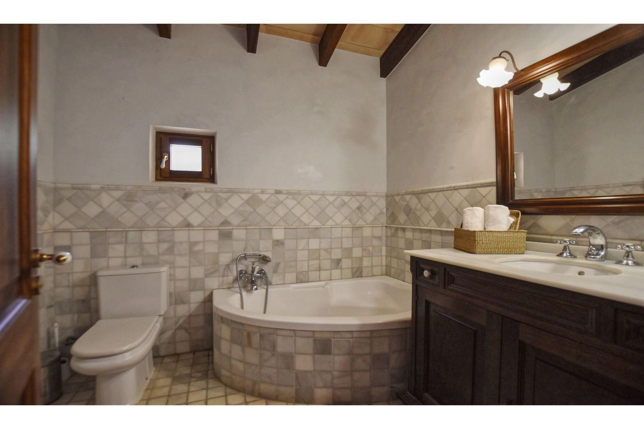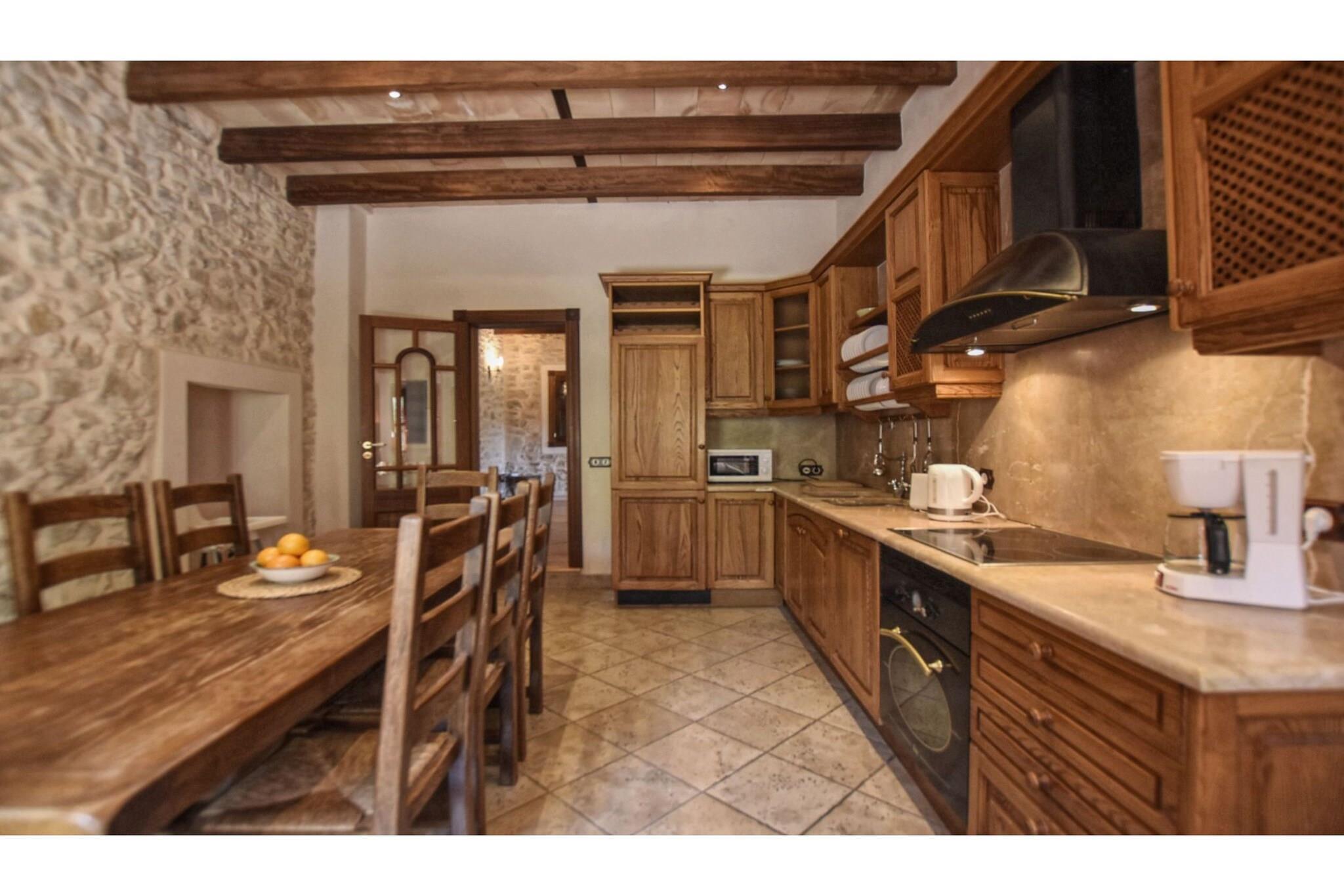 Historischer mallorquinischer Charme Entdecken Sie zeitlose Eleganz in diesem restaurierten Anwesen aus dem Jahr 1919 auf einem Hügel mit Blick auf Petra. Erbaut mit dicken Steinmauern und mit antiken Möbeln, Sichtbalken und steinverkleideten Innenräumen, verbindet dieses 270 m² große Haus Geschichte mit modernem Komfort. Auf zwei Etagen bietet es vier geräumige Schlafzimmer, fünf Badezimmer und einen gemütlichen Wohn-Essbereich mit Kamin – ideal für gemütliche Stunden nach einem erlebnisreichen Tag. Die voll ausgestattete Küche macht das Kochen zum Vergnügen, während die Ölzentralheizung ganzjährig für Komfort sorgt. Privater Rückzugsort im Freien Umgeben von 20.000 m² Land lädt die Villa zum Entspannen in absoluter Privatsphäre ein. Spazieren Sie durch die gepflegten Gärten im Schatten alter Bäume, genießen Sie lange Nachmittage auf der möblierten Veranda oder nehmen Sie ein erfrischendes Bad im 10 x 5 m großen Pool. Mit Sonnenliegen, Grill und Außendusche ist das Haus ideal für Entspannung und gemeinsame Momente. Vom Sonnenaufgang bis zum Abend unter dem Sternenhimmel – jedes Detail des Anwesens lädt zu einem entspannteren, bewussteren Leben ein. Ideale Lage in Petra Nur 3 km von Petras charmanten Straßen, Cafés und Geschäften entfernt, bietet das Haus einfachen Zugang zum authentischen mallorquinischen Leben. Eine kurze Fahrt bringt Sie zu den goldenen Stränden und dem kristallklaren Wasser der etwa 20 km entfernten Inselküste. Ob Sie mediterrane Aromen in der Stadt genießen, die nahegelegenen Weinberge erkunden oder die ruhige Hügellage genießen – dieses Haus bietet Ihnen sowohl Kultur als auch Küste in Reichweite.