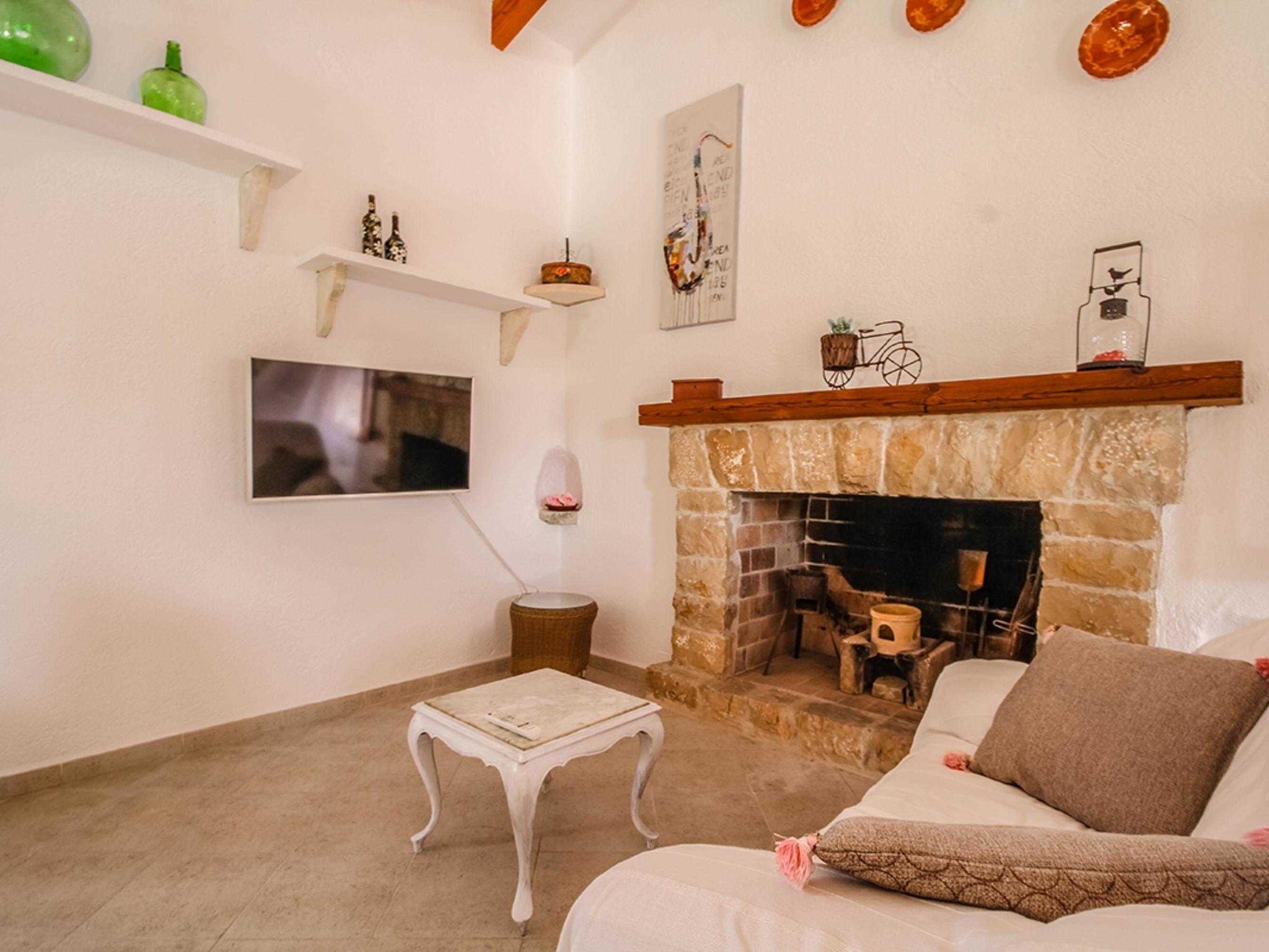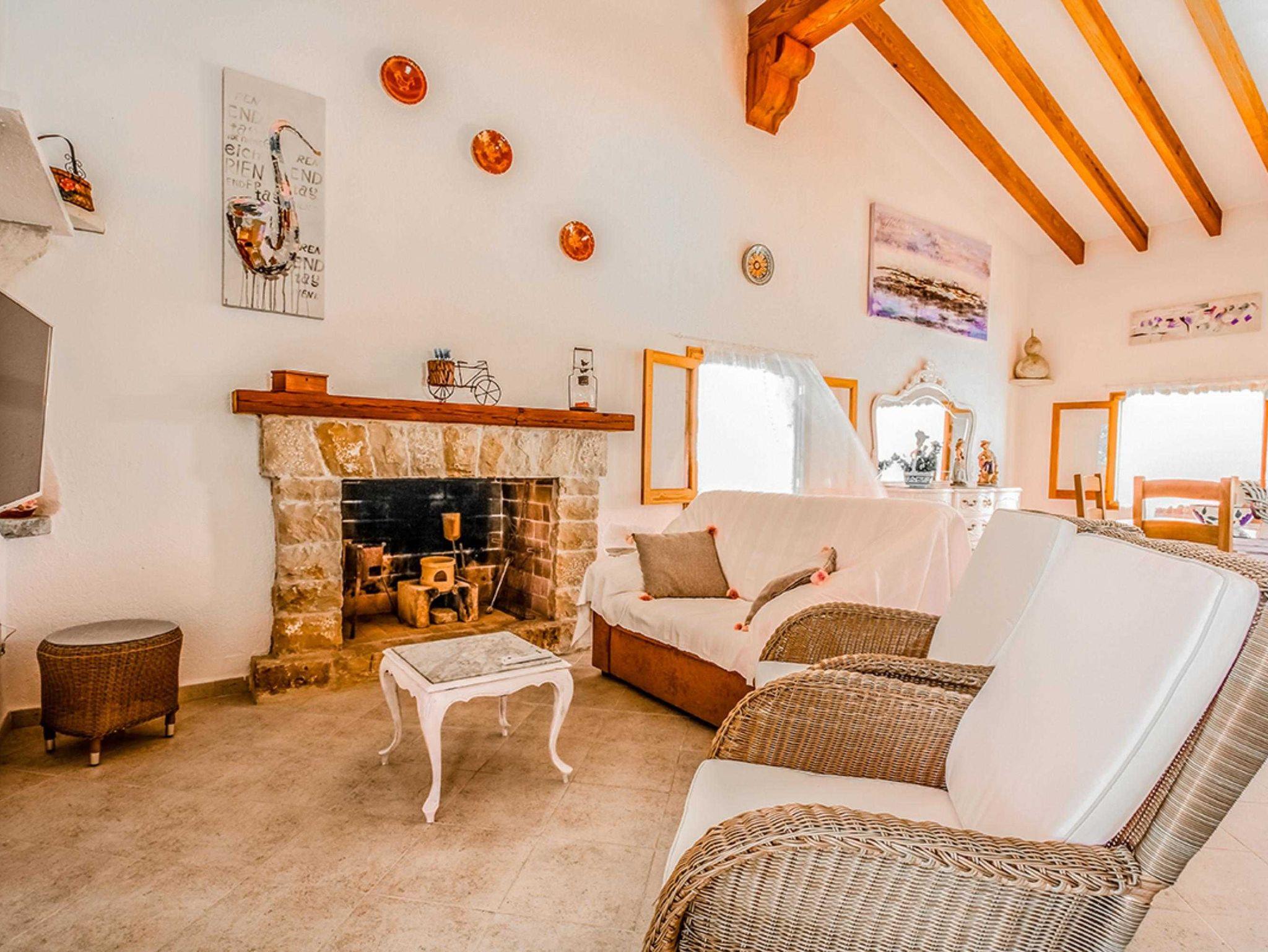 Der Wohn/Essbereich mit offener, typisch mallorkischer Küche, ist mit viel Liebe dekoriert worden. Der offene Kamin im Wohnzimmer lädt zu gemütlichen Abenden ein! Ab 2017 gibt es hier auch Internet.