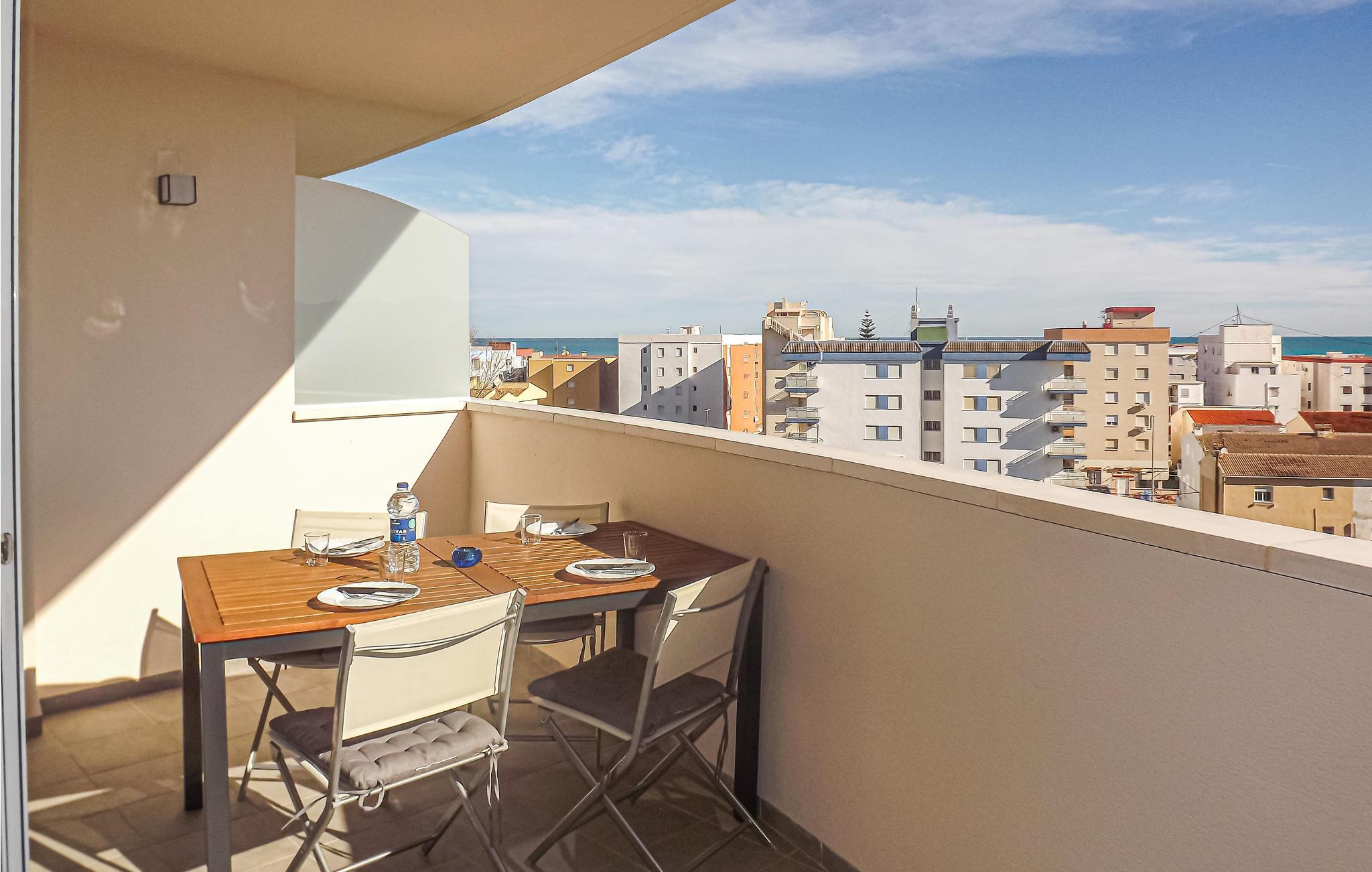 Diese schöne Ferienwohnung erwartet Sie im 6. Stock und bietet einen fantastischen Blick auf das Meer und die Berge. Die Wohnung bietet Platz für eine Familie oder zwei Paare, die zusammen einen wunderschönen Urlaub mit Sonne, Strand und Meer erleben möchten. Das Interieur der Wohnung ist modern und ansprechend und verteilt sich auf 2 Schlafzimmer, 1 Badezimmer, 1 Wohnraum und einen Wohnraum mit Küche.