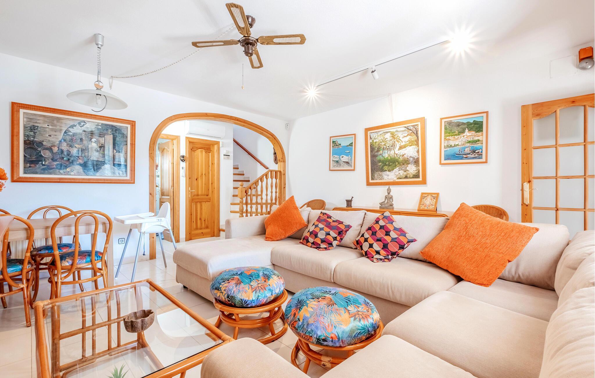 Reisen Sie mit Ihrer Familie nach Katalanien und genießen eine Auszeit in den geschmackvoll eingerichteten Innenräumen des Hauses kombinieren modernen Komfort mit gemütlichem Ambiente. Das geräumige Wohnzimmer lädt zum Entspannen ein, während die praktische Küche ideal für kulinarische Erlebnisse ist. Die Schlafzimmer bieten erholsamen Schlaf und laden Sie ein, nach dem Aufstehen, hinaus auf den Balkon zu treten und die ersten Sonnenstrahlen zu genießen.