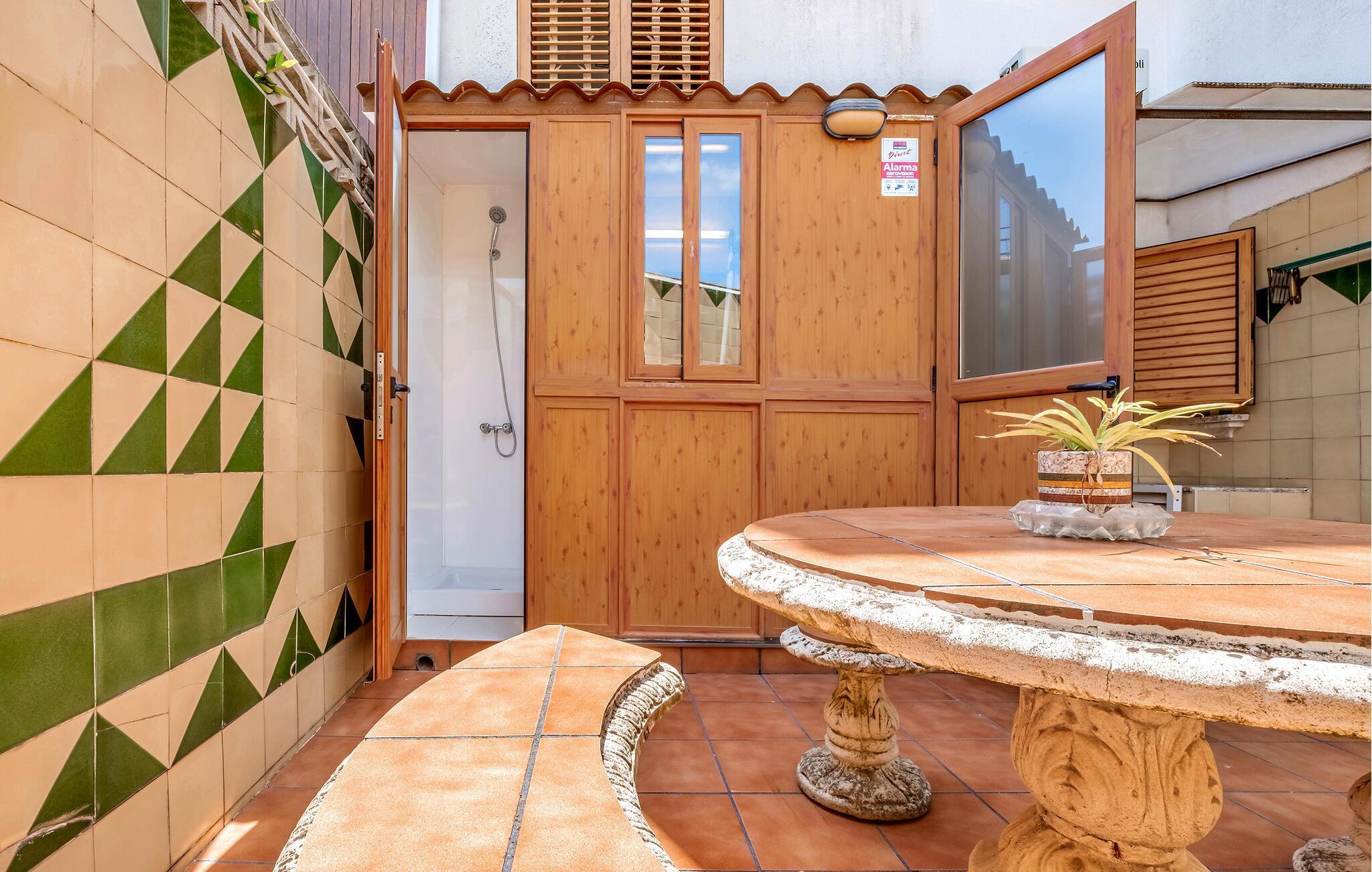 Der Außenbereich dieses Ferienhauses ist einladend. Ein gemütlicher Innenhof mit einer erfrischenden Duschkabine und einem schönen Grillplatz sorgt für unvergessliche Sommerabende. Hier können Sie im Freien speisen und die mediterrane Atmosphäre genießen.