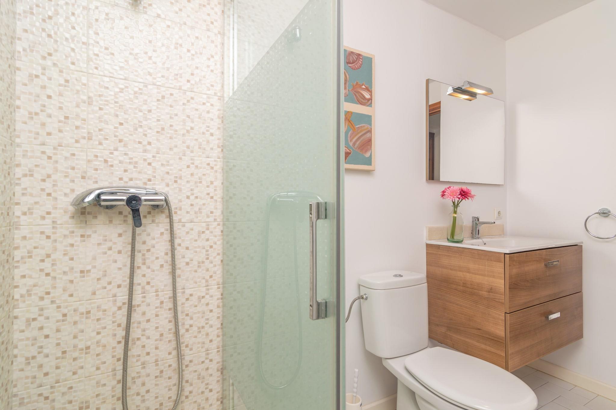 Der Garten des koketten Hauses lädt Sie ein, den ganzen Tag an der frischen Luft zu verbringen. Es gibt mehrere Terrassen, auf denen Sie in bester Gesellschaft einen lustigen Grillabend machen können oder in geselliger Runde zusammen sitzen. Auf der Dachterrasse mit Sonnenliegen lassen Sie sich von der Sonne verwöhnen und genießen die tolle Aussicht auf das Meer. Für die Mahlzeiten im Freien steht eine möblierte Veranda zur Verfügung. Das Haus hat direkte Nachbarn. Im 2-stöckigen Haus überzeugen großzügige Räume mit einer geschmackvollen Einrichtung. Jede Etage hat ein unabhängiges Apartment mit: einem großen Wohn- Esszimmer - mit Sat-TV und Zugang zur Veranda oder Terrasse, das über einen koketten Bartresen mit der Küche verbunden ist. In der Küche kochen Sie auf einem Gasherd und haben dafür alle Utensilien die Sie benötigen. Es gibt in jedem Apartment zwei Schlafzimmer, eines mit Doppelbett und das andere mit zwei Einzelbetten; und ein Badezimmer mit Dusche. Alle Schlafzimmer sind klimatisiert. Das Apartment der ersten Etage ist über eine Treppe außerhalb des Gebäudes zu erreichen. Die obere Dachterrasse mit Sonnenliegen ist vom ersten Stock aus zugänglich. Das Haus ist mit einer Waschmaschine, einem Bügeleisen und Bügelbrett ausgestattet und wir können auf Anfrage ein Kinderbett und einen Hochstuhl vorbereiten, wenn Sie mit Ihrem Baby reisen. Das Haus befindet sich in einem Wohngebiet, nur wenige Meter von einem der besten Strände der Insel entfernt, Platja de Muro. Der wundervolle Strand ist mehrere Kilometer lang, hat weißen, feinen Sand und lädt Sie, neben Sonnenbaden und spazieren gehen, auch zu verschieden Wassersportarten ein, die am Strand angeboten werden. Nicht weit entfernt ist Can Picafort, mit allen Dienstleistungen und einer tollen Sommeratmosphäre, genau wie in Port d'Alcúdia. Sie können einen anderen Tag genießen, indem Sie den Parc Natural de s'Albufera de Mallorca besuchen, der nur 650 Meter vom Haus entfernt liegt. Eventuelle Nebenkosten müssen beim Anbieter nachgefragt werden. Haustiere sind verboten. Partys oder ähnliche Veranstaltungen sind nicht gestattet. Entfernungen Strand: 0.085 km - Platja de Muro Flughafen: 62 km - Palma de Mallorca Golfplatz: 10.7 km - Club de Golf Alcanada Ortsmitte: 1.7 km - Playa de Muro Bahnhof: 13.1 km - Sa Pobla Bushaltestelle: 0.550 km - Platja de Muro Fähre: 9 km - Port d'Alcúdia Krankenhaus: 25.9 km - Hospital Comarcal d'Inca Touristen Lizenz: ETV/5188Einheitsregister: ESFCTU00000701100067683900000000000000000000ETV/51880Auf den Balearen gibt es eine Touristensteuer, die Ecotasa genannt wird. Diese Steuer muss vom Gast bezahlt werden. Der zu zahlende Betrag beträgt zwischen 0.55EURO pro Nacht und Gast in der Nebensaison und 2.2EURO pro Nacht und Gast in der Hochsaison. Ab dem 9. Tag reduziert sich die Steuer um die Hälfte. Personen unter 16 Jahren sind davon ausgenommen
