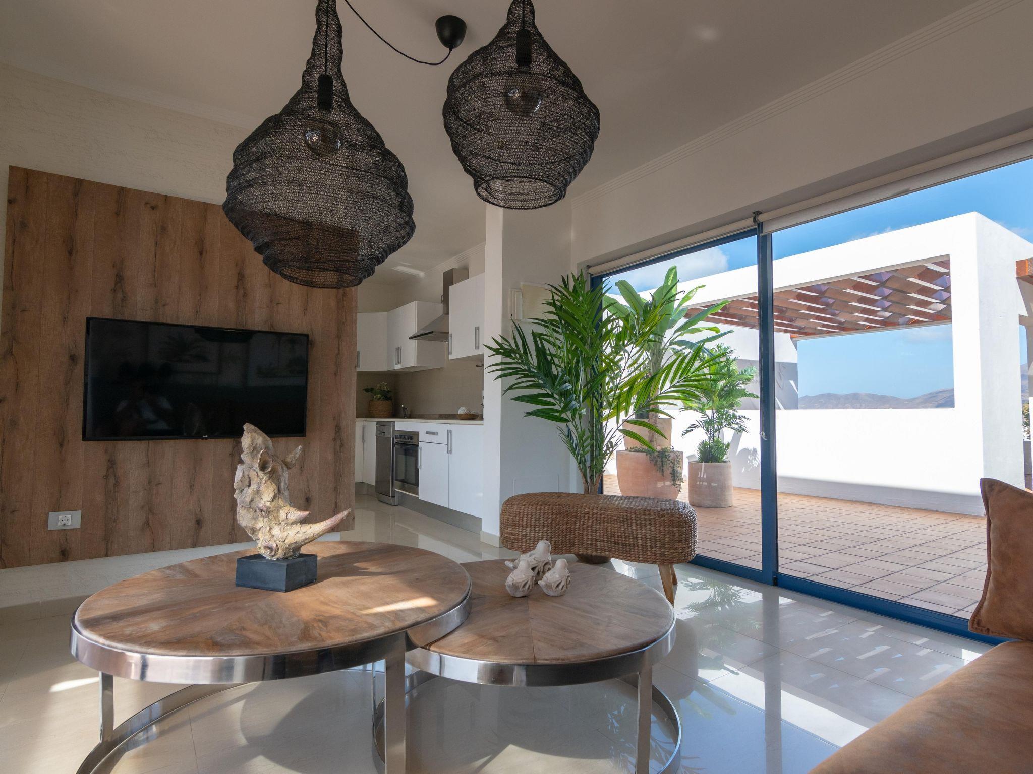 Bellavista 3 km von Playa Blanca: Schönes Reihenhaus "Bellavista". 2.5 km vom Meer. Zur Alleinbenutzung: Grundstück 500 m2, Schwimmbad eckig, beheizt (6 x 4 m, saisonale Verfügbarkeit: 01.Jan. - 31.Dez.) mit Innentreppe. Grill. Treppenweg (14 Stufen) bis zum Haus. Supermarkt 500 m, Restaurant 1.5 km, Bushaltestelle "El Pueblito" 550 m, Sandstrand "Flaamingo" 2.5 km. Golfplatz (18 Loch) 32 km, Reitstall 1.5 km. Nahe gelegene Sehenswürdigkeiten: Paque acúatico Agualava 1.8 km. Bitte beachten: Fahrzeug empfohlen.