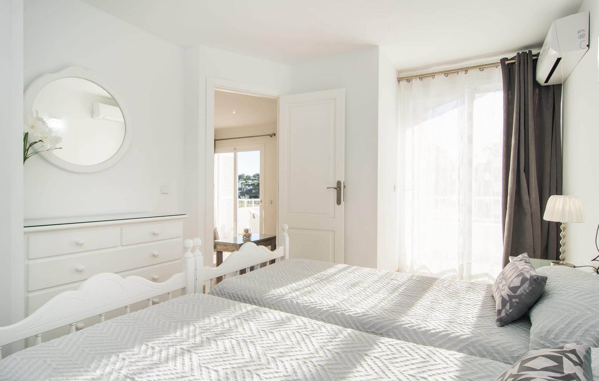Sie sind gerne unter Menschen, schätzen eine gepflegte Atmosphäre, viel Komfort und die Möglichkeit, von Ihrer Ferienunterkunft aus fast alles bequem zu Fuß erledigen zu können? Dann haben Sie in „Playa d’Or“ die ideale Wohnung für Ihren Traumurlaub gefunden. Die Ferienwohnung mit Meerblick für bis zu vier Personen liegt in einer schönen Anlage mit direktem Zugang zum Strand von Cala Gran und unweit der kleinen Badebucht Cala Esmeralda an der Südküste Mallorcas. Dank der Hanglage können Sie von Ihrem Balkon, der mit verschiedenen Sitzgelegenheiten ausgestattet ist, über die Dächer der Nachbarhäuser bis zum nahegelegenen Meer blicken. Wenn Sie jedoch nur eine kurze Abkühlung brauchen oder schwimmen gehen möchten, schnappen Sie sich Ihr Badetuch und gehen Sie das kurze Stück hinunter zum großen Gemeinschaftspool. Anschließend ein Nickerchen auf einer der Sonnenliegen machen und vielleicht noch ein paar Seiten aus Ihrer spannenden Urlaubslektüre lesen – perfekt! Ihren Mietwagen können Sie bequem auf der Straße vor dem Haus parken.