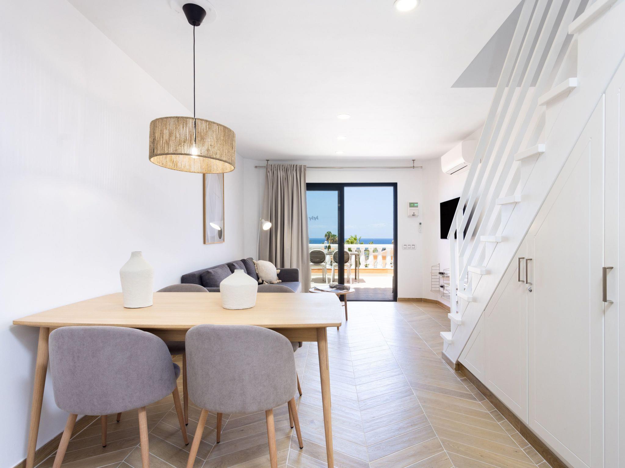 Das Apartment ist mit Aufzug erreichbar. Die Terrasse bietet einen atemberaubenden Meerblick und Poolblick. Sie können dort abends bei einem Glas Wein den Sonnenuntergang genießen.