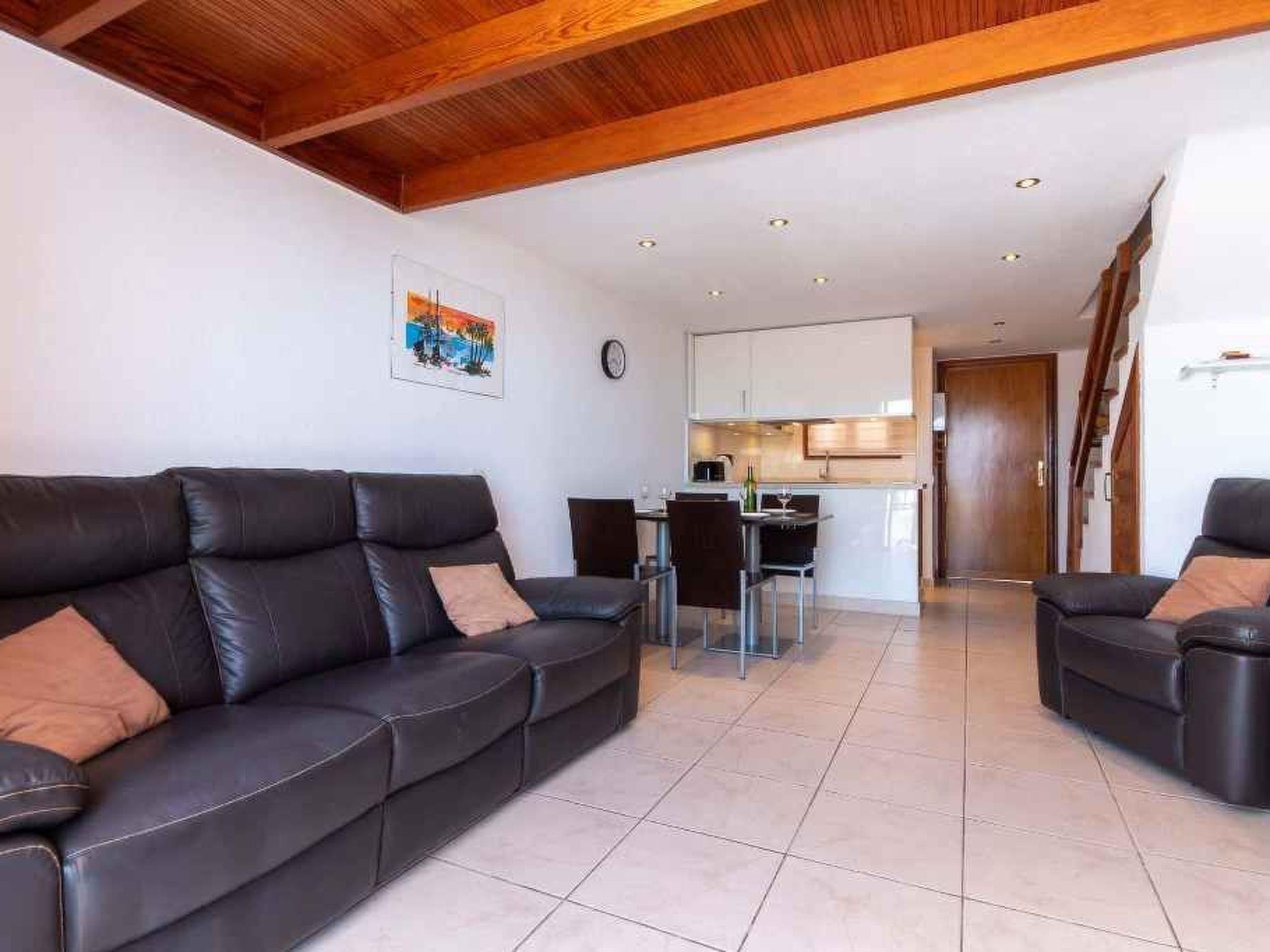 Die neu renovierte, voll ausgestattete amerikanische Küche (Herd mit Ceranfeld und Backofen, Spülmaschine, Kühlschrank mit Gefrierfach, Mikrowelle, Kaffeemaschine, Wasserkocher sowie ausreichend Geschirr, Besteck, Gläser und Kochutensilien) ist durch eine Theke vom Wohnraum getrennt. Dahinter befindet sich der Esstisch sowie eine Couch mit 2 Sesseln sowie ein SAT-TV.