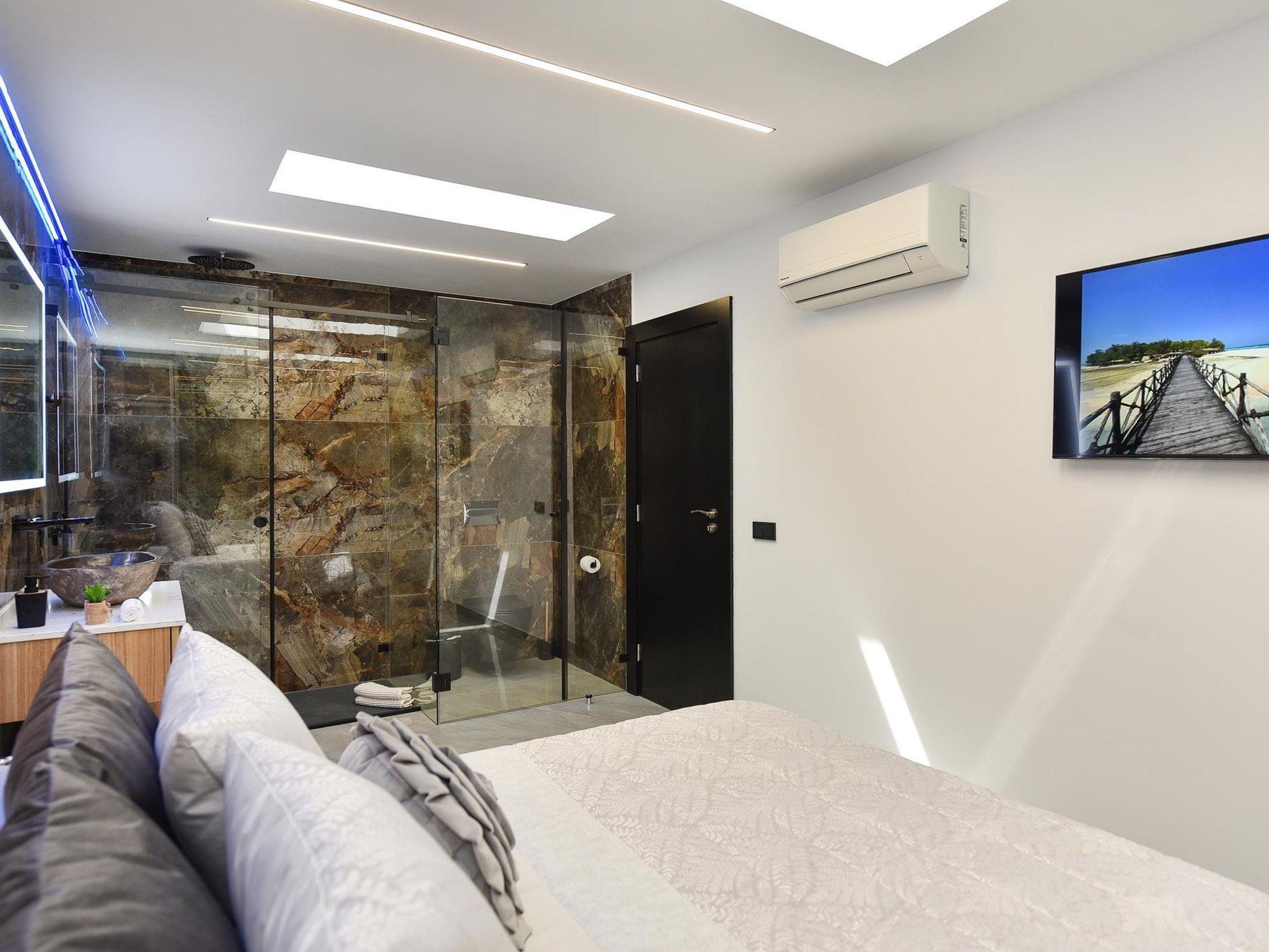 "Villa Aisha", 3-Zimmer-Haus 110 m2. Komfortabel und gemütlich eingerichtet: Wohnzimmer mit 1 Doppeldiwanbett, Digital-TV und Klimaanlage. Ausgang zur Terrasse. 2 Zimmer, jedes Zimmer mit 1 franz. Bett, Dusche/WC, Digital-TV und Klimaanlage. Offene Küche (Backofen, Toaster, Wasserkocher, Mikrowelle, Tiefkühler, elektrische Kaffeemaschine). Terrasse. Terrassenmöbel, Liegestühle. Zur Verfügung: Waschmaschine, Safe, Bügeleisen, Kinderhochstuhl, Babybett bis 2 Jahre, Haartrockner. Internet (WLAN, gratis). Bitte beachten: Nichtraucher-Haus. Maximal 1 Haustier/Hund erlaubt. 2022-T13668