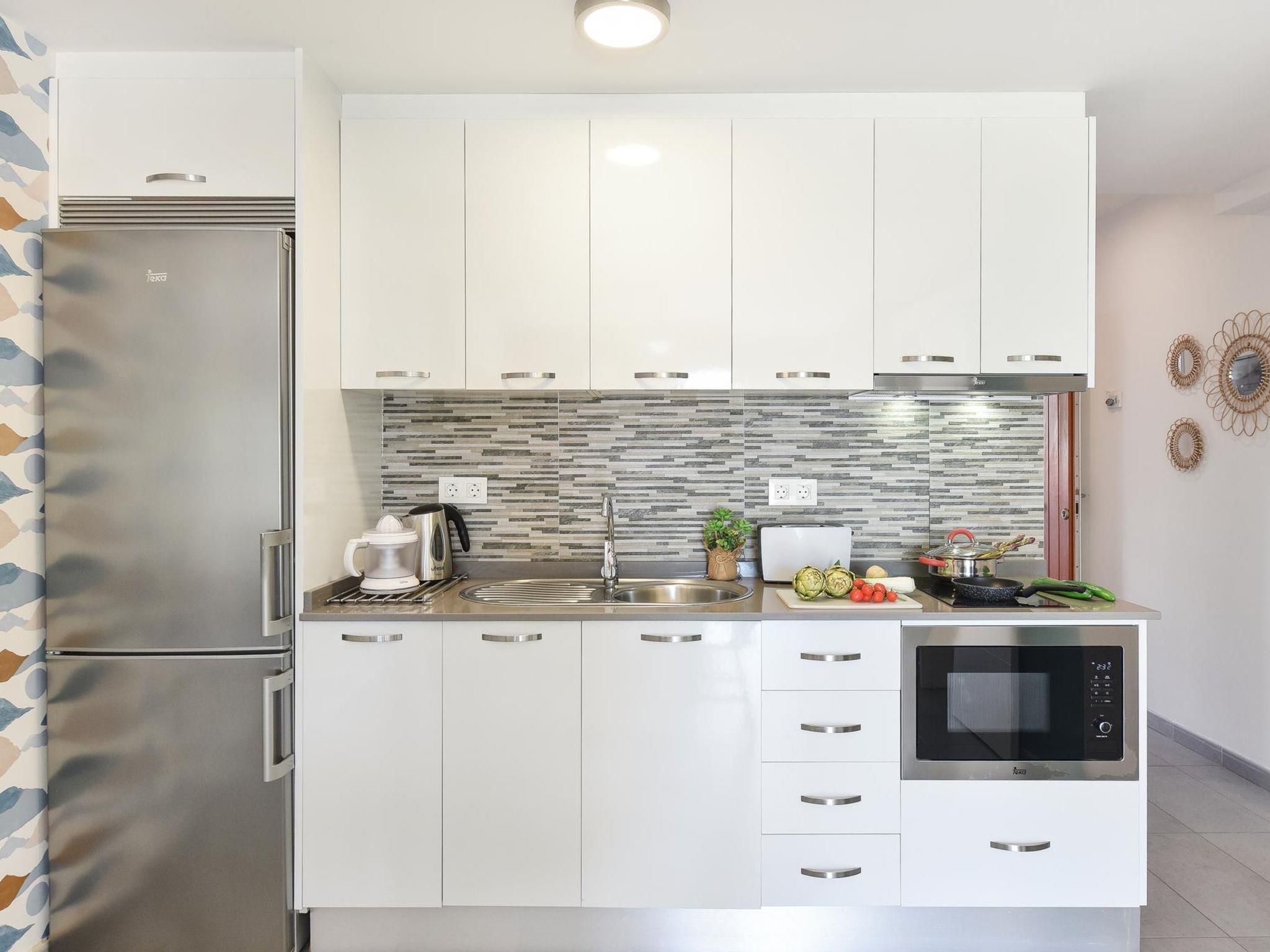 "Aida", 3-Zimmer-Wohnung 65 m2. Komfortabel und gemütlich eingerichtet: Wohn-/Schlafzimmer mit Sat-TV und Digital-TV mit 2 Betten mit 1 Doppelbett. Wohnküche (2 Glaskeramikplatten, Mikrowelle, Tiefkühler) mit Esstisch. Bad/WC. Parkettboden. Zur Verfügung: Wäschetrockner, Safe, Bügeleisen, Kinderhochstuhl, Babybett bis 2 Jahre. Internet (WLAN). Geeignet für Familien. 2023-T7500 // Reg. Nr.: ESFCTU0000350130003280320000000000000VV-35-1-00199137