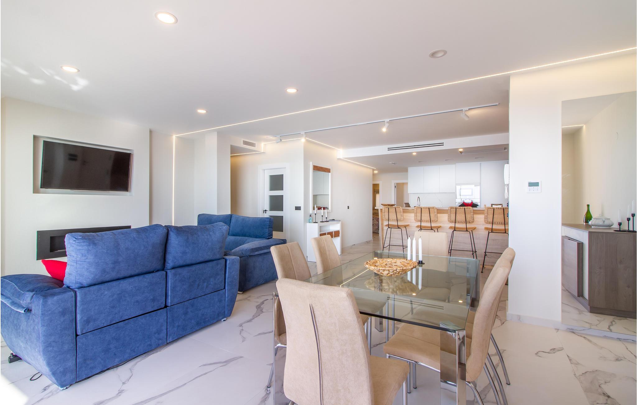 In dieser fantastischen Wohnung genießen Sie einen direkten Blick in erster Reihe aufs Mittelmeer von Ihrem Balkon aus. In allen Belangen finden Sie hier eine erstklassige Ausstattung vor, und die Wohnerfahrung ist durch ein helles, hochwertiges Interieur hervorragend. Genießen Sie ein morgendliches Frühstück an der frischen Luft, mit dem inspirierenden Blick auf das Meer, das sich wie ein blauer Teppich unter Ihnen ausbreitet. Der Dreiklang, der Ihren Urlaub bestimmt, setzt sich hier aus Sonne, Strand und Meer zusammen.