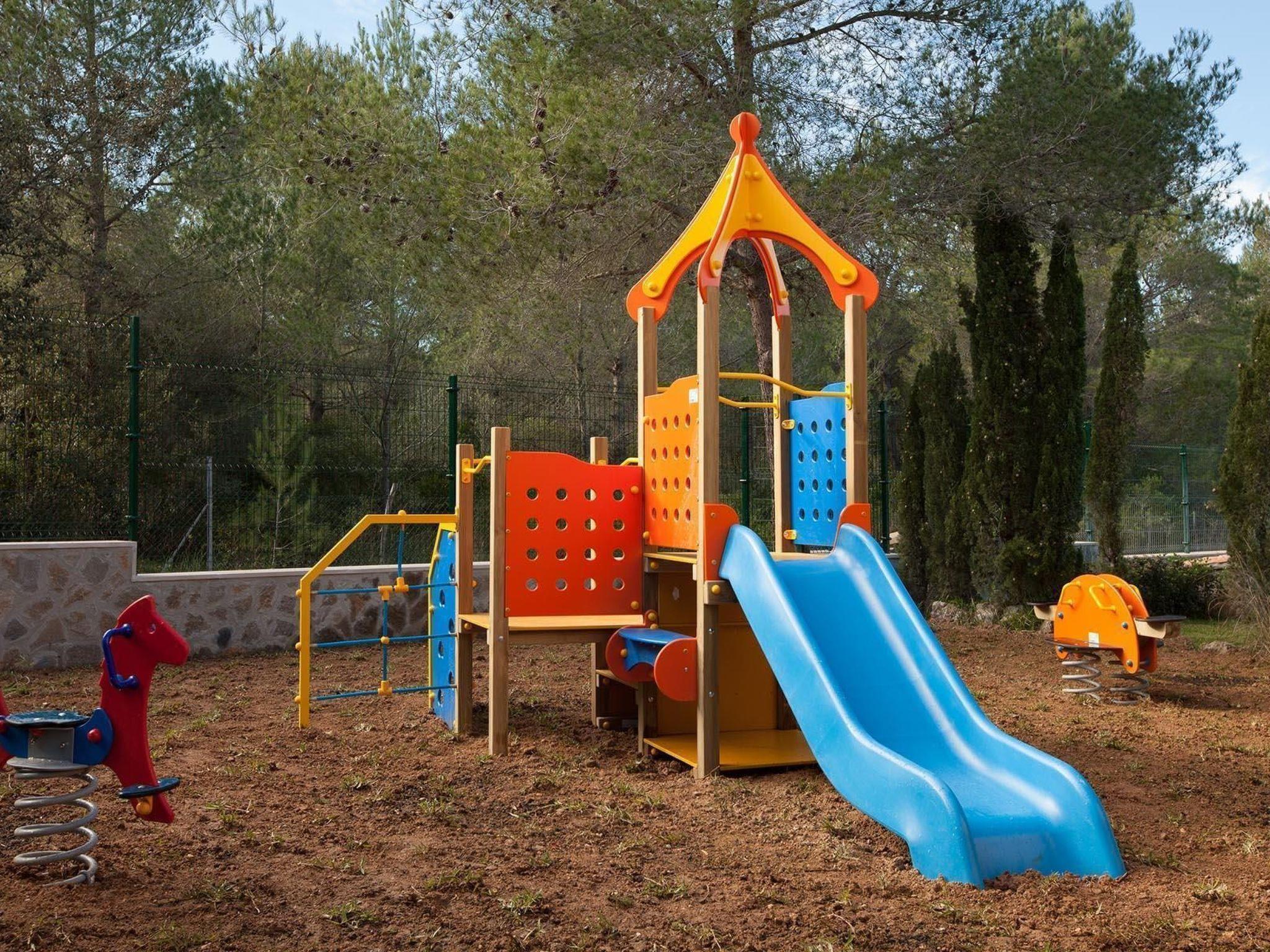 Das Grundstück des Ferienhauses ist komplett eingezäunt und verfügt über eine große Terrasse mit Blick auf den Pool und den Holzkohlegrill. Der Swimmingpool und die Parkplätze vor dem Haus sind zur privaten Nutzung. Auf dem Gelände gibt es auch einen Kinderspielplatz.