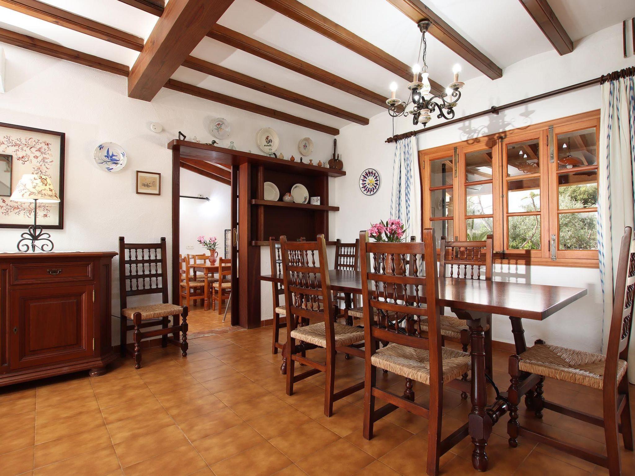 Das Innere des Hauses ist mit Holzmöbeln komfortabel und gemütlich eingerichtet. Sobald Sie eintreten, finden Sie das Esszimmer, das mit einem Wohnzimmer mit Satellitenfernsehen und DVD-Player verbunden ist, das wiederum mit dem Poolbereich verbunden ist. Die Küche ist mit Mikrowelle, Geschirrspüler, Gas- und Elektroherd und Kühlschrank mit Gefrierfach ausgestattet. Es gibt auch einen Hauswirtschaftsraum mit einer Waschmaschine. Auf der gleichen Etage befinden sich ein Schlafzimmer mit Doppelbett und eigenem Bad, ein Schlafzimmer mit zwei Einzelbetten und ein zweites Bad. Im Obergeschoss gibt es ein Schlafzimmer mit Doppelbett, ein Schlafzimmer mit zwei Einzelbetten und ein drittes Badezimmer.