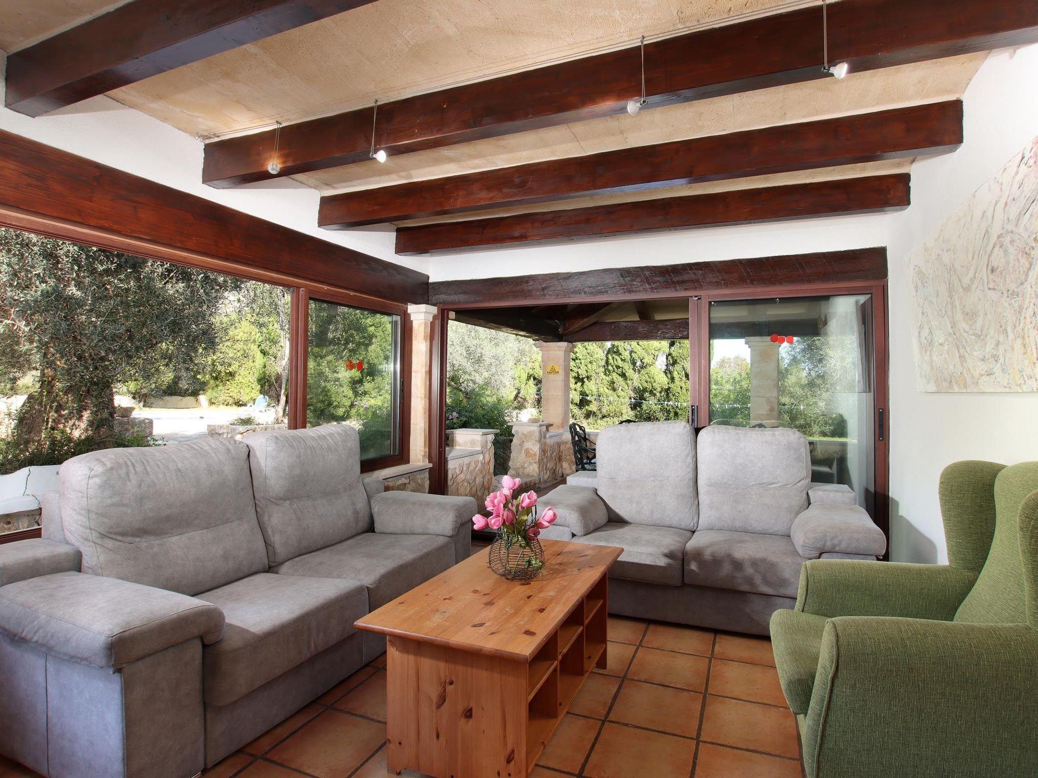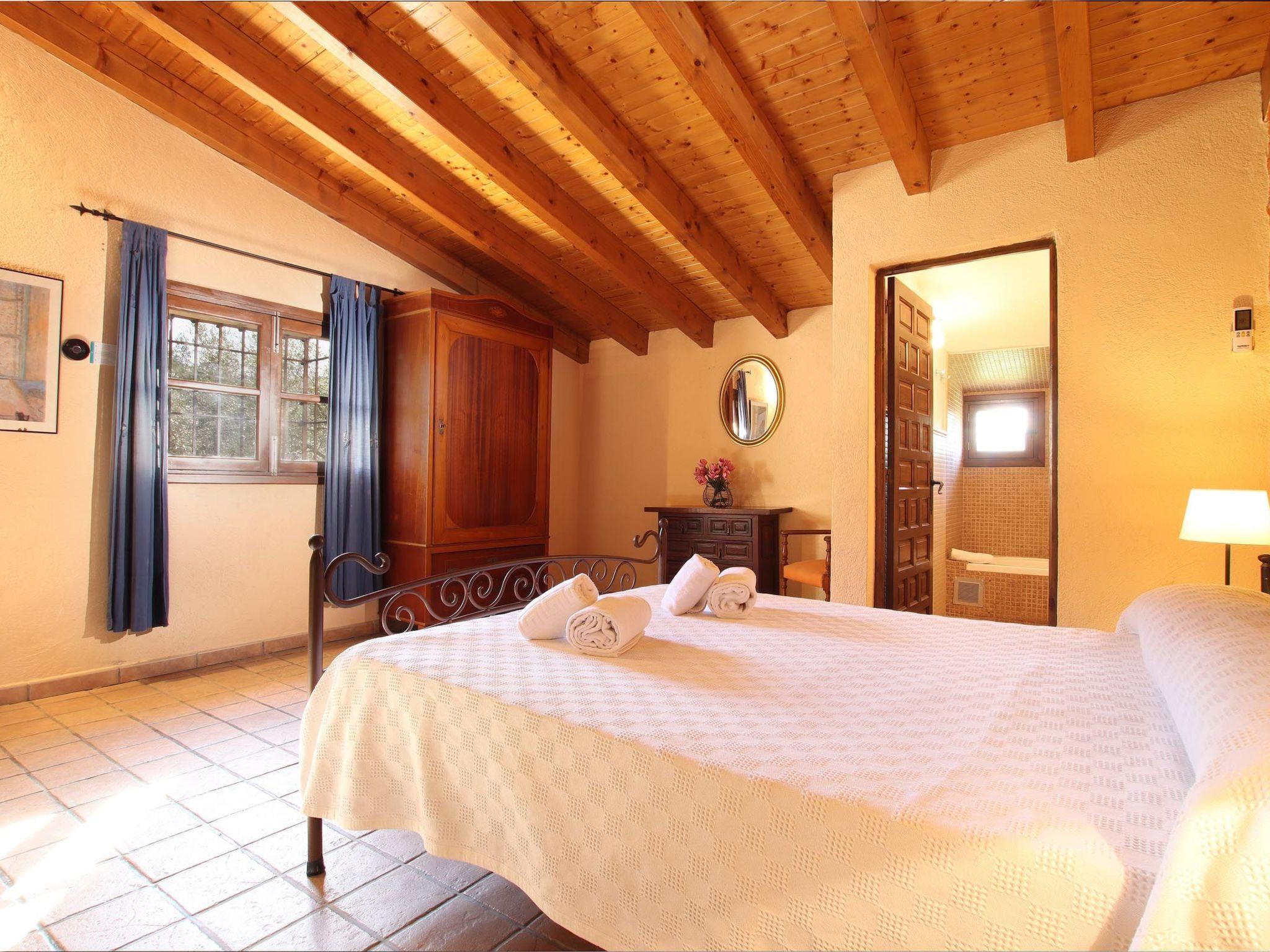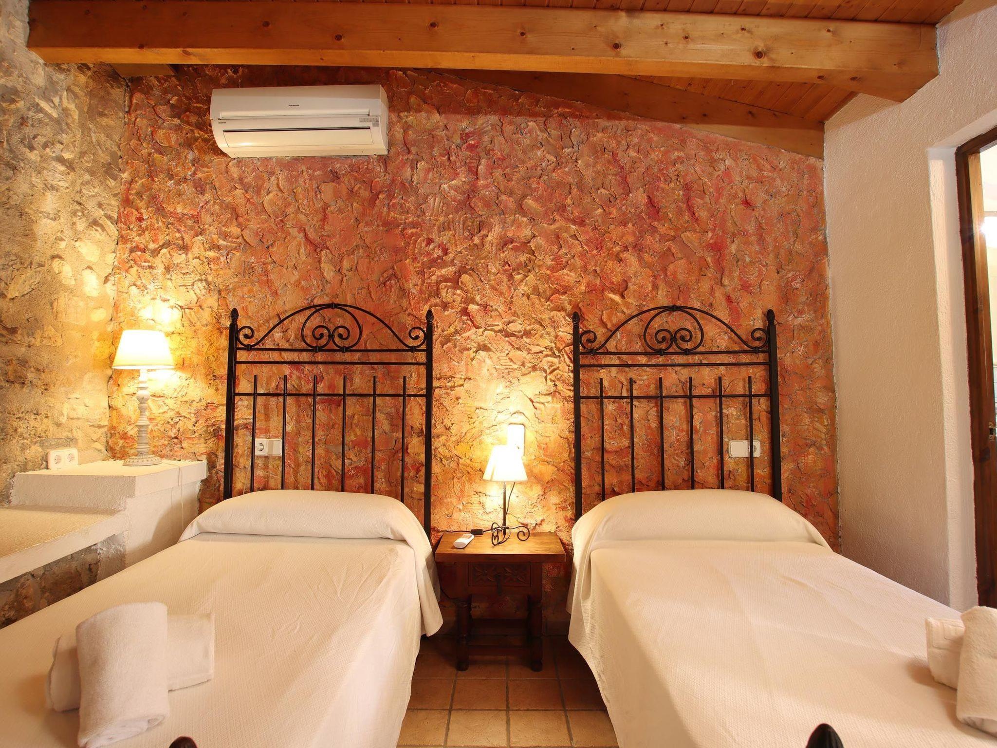 Dieses charmante Landhaus verfügt über einen großen Garten mit Rasen und einen großen privaten Swimmingpool. Der Pool blickt auf das Tramontana-Gebirge, so dass Sie Ihren eigenen Blick auf die Hügel haben. Auf der einen Seite des Pools gibt es einen fantastischen Grill und Essbereich im Freien, umgeben von Pflanzen und Bäumen. Eine lange gepflasterte Auffahrt, gesäumt von blühendem Oleander und Olivenbäumen, führt zum Parkplatz an der Vorderseite der Villa Martorellet. Das Wohnzimmer auf zwei Ebenen verfügt über bequeme Sitzgelegenheiten, einen Flachbildfernseher, einen Kamin, eine Holzbalkendecke und sichtbare Steinwände. Auf der anderen Seite des Erdgeschosses befindet sich das Esszimmer und eine voll ausgestattete Küche. Das Esszimmer hat große Fenster mit Blick auf die Gärten und eine kleine Sitzecke. Im Erdgeschoss befinden sich drei Schlafzimmer: ein Doppelschlafzimmer mit eigenem Bad, ein Zweibettzimmer, ebenfalls mit eigenem Bad, und ein zweites Doppelschlafzimmer mit separatem Bad. Im Obergeschoss befinden sich zwei weitere Schlafzimmer: ein Doppelzimmer und ein Zweibettzimmer, die sich ein Badezimmer teilen. Diese beiden oberen Schlafzimmer teilen sich eine große Terrasse mit Blick auf den privaten Pool, den Garten und die Berge. Alle Schlafzimmer sind mit Klimaanlage warm/kalt ausgestattet. Um Energie zu sparen, hat die Villa die Klimaanlage in allen Räumen von 17:30 bis 19:30 und von 22:00 bis 09:00 Uhr programmiert.