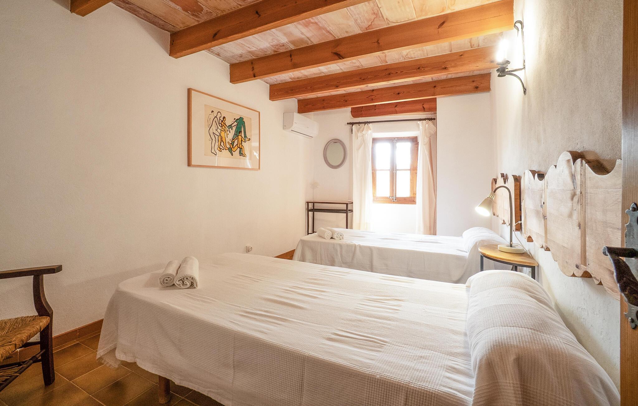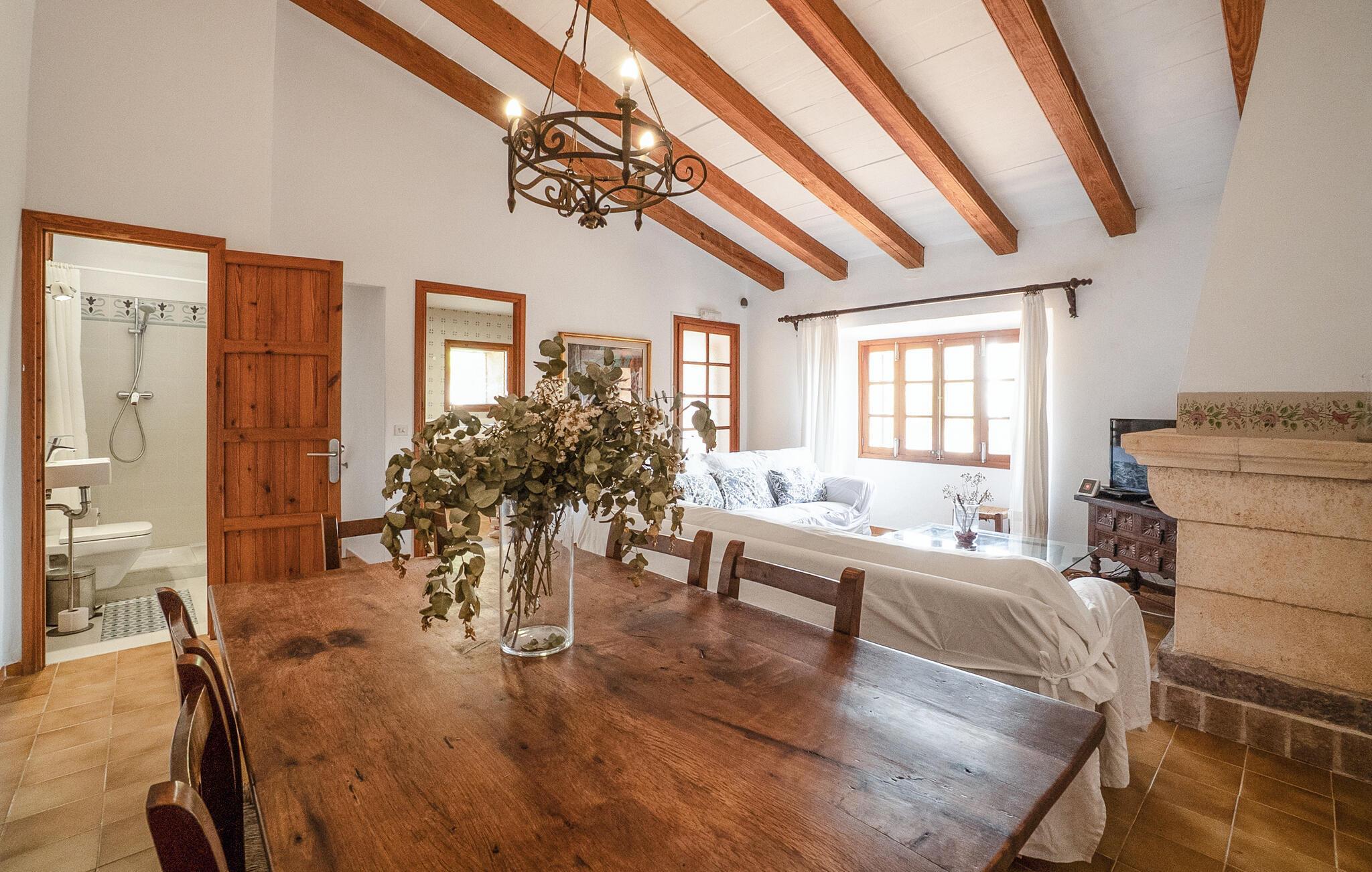 Diese geschmackvoll eingerichtete, traditionelle Natursteinfinca lädt Sie zu einem entspannten Urlaub in ihren hellen und charmanten Räumlichkeiten ein. Bereiten Sie in der gut ausgestatteten Küche mallorquinische Spezialitäten zu und genießen Sie diese am rustikalen Esstisch. Lassen Sie den Tag mit einem Glas Wein auf dem bequemen Sofa ausklingen und streamen Sie Ihre Lieblingsserie.