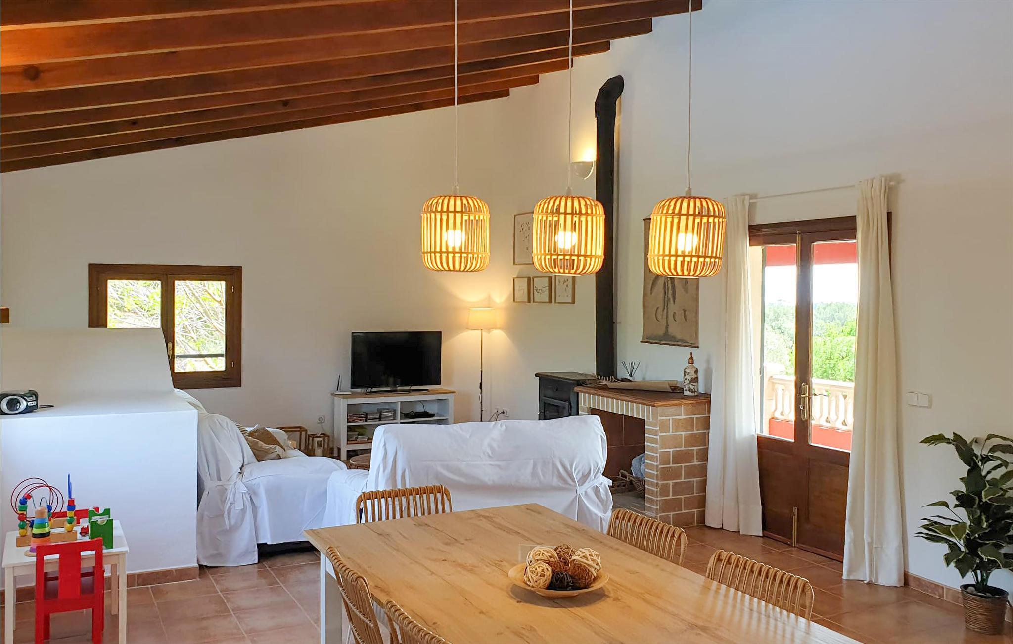 Diese attraktive, renovierte und neu möblierte Finca liegt privilegiert und etwas abgeschieden, aber nahe vom Zentrum. Sie wohnen im Grünen und dennoch sind Einkaufsmöglichkeiten, Restaurants und Cafés leicht zu Fuß erreichbar. Die attraktive Poolanlage ist bequem möbliert und romantisch beleuchtet. Dadurch ist sie besonders nachts ein absolutes und beliebtes Highlight. Das speziell aufbereitete und leicht salzhaltige Poolwasser ist besonders hautfreundlich und gibt keine Augenreizungen. Ein Pingpongtisch steht zur Verfügung. Die Rückseite des Hauses grenzt nahe an die Verbindungsstraße nach Arta. Das letzte Wegstück ist nicht asphaltiert. Gruppen (ausgenommen Familien und Pärchen ü30) auf Anfrage und mit Spezialkaution. Lizenznummer: ET/4222.