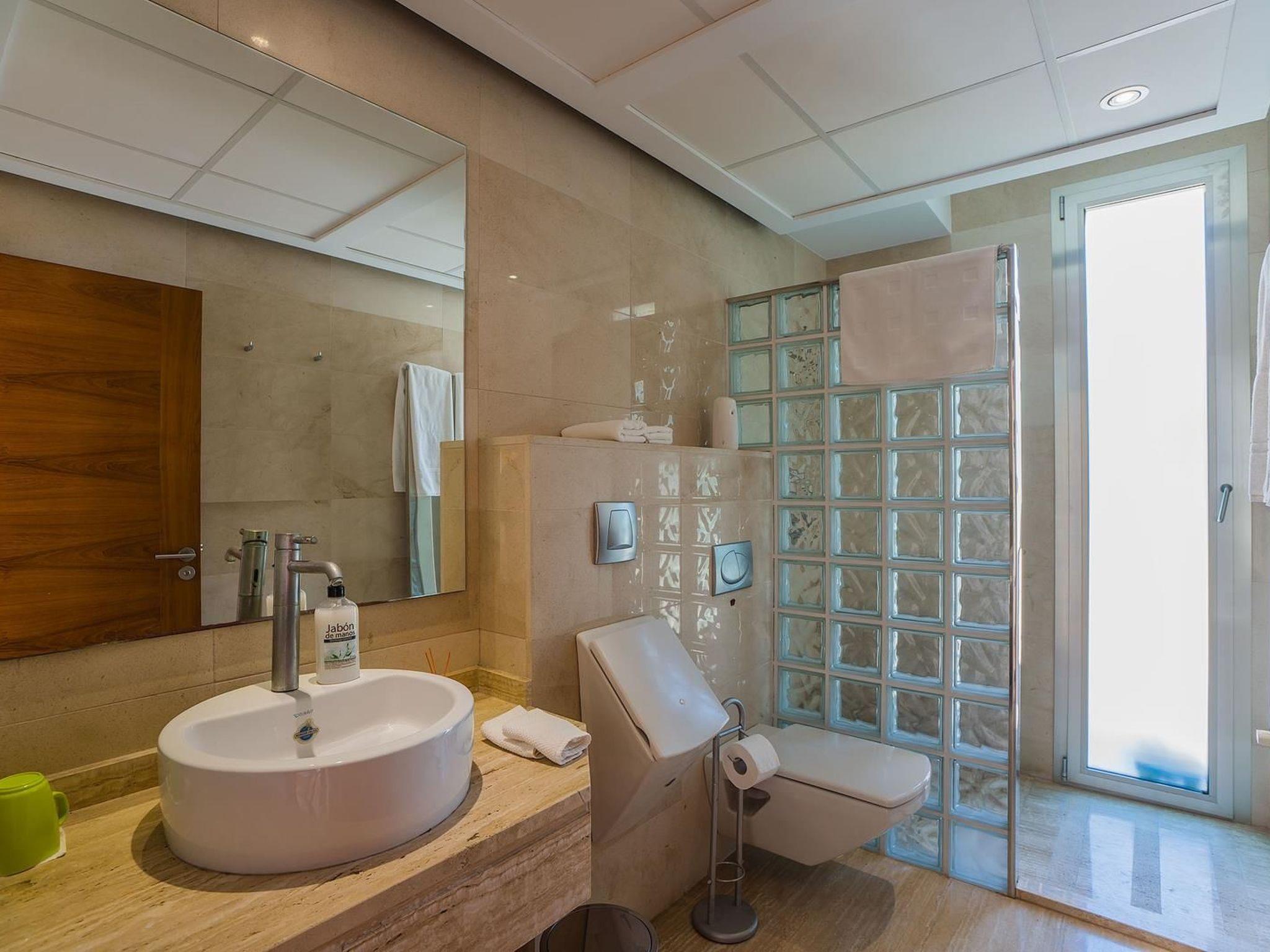 Im Inneren zeichnet sich dieses Haus durch seine Funktionalität und die Liebe zum Detail aus. Jedes der fünf Schlafzimmer ist mit einer Klimaanlage ausgestattet, die jedem Gast einen kühlen und privaten Rückzugsort bietet. Fünf Bäder sorgen für Komfort und Bequemlichkeit, so dass sich jeder ohne Wartezeit für den Tag oder die Nacht fertig machen kann. Für die Freizeit stehen eine Waschmaschine und ein Trockner zur Verfügung, so dass die Wäsche während des Aufenthalts problemlos gewaschen werden kann. Die Küche verfügt über moderne Annehmlichkeiten wie einen Geschirrspüler, eine Kaffeemaschine und einen Wasserkocher, so dass die Zubereitung von Mahlzeiten zu einer einfachen und angenehmen Aufgabe wird.