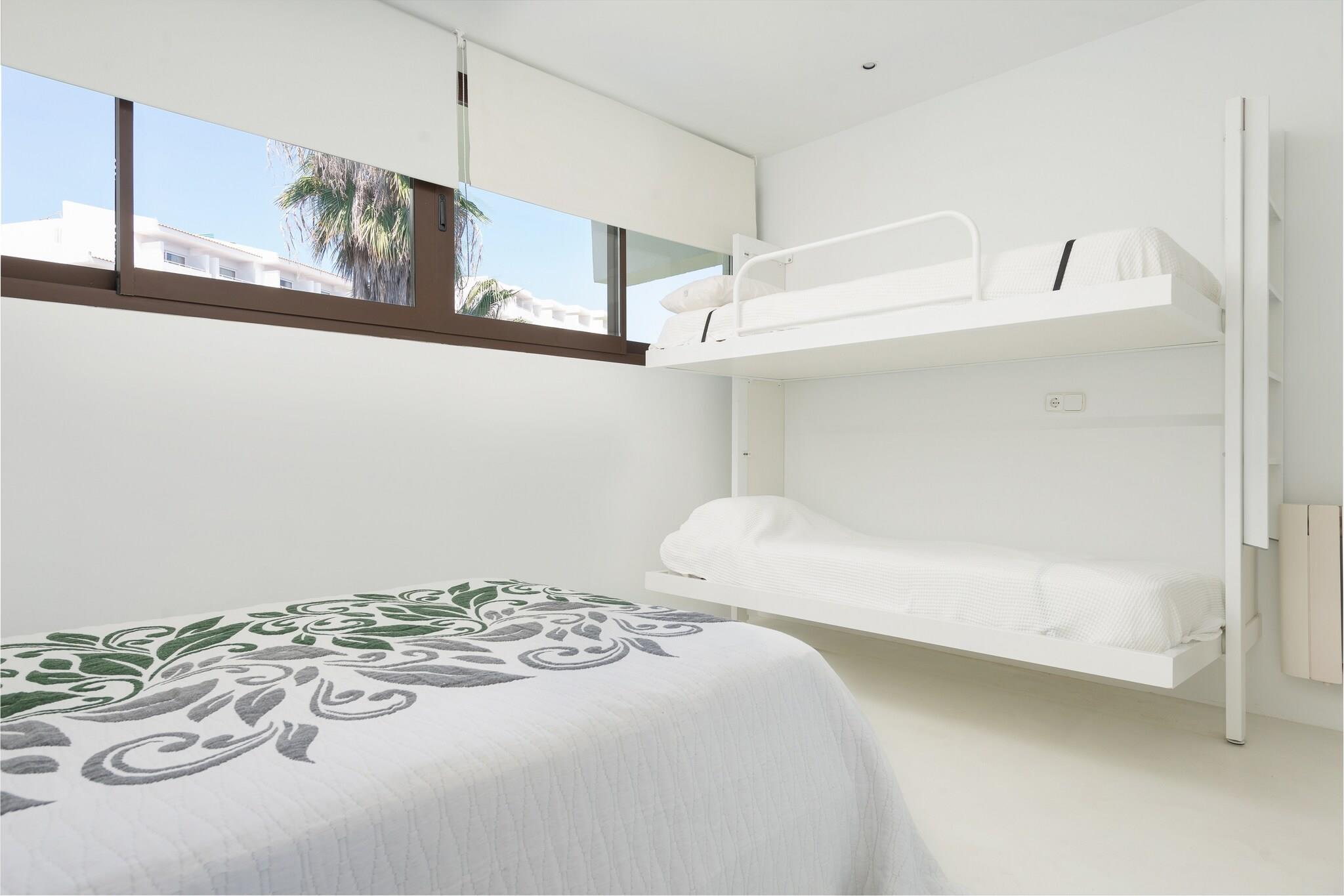 Von der möblierten, privaten Terrasse des Apartments können Sie in der Ferne das Meer bewundern, während Sie frühstücken und sich auf einen spektakulären Tag, an einem der besten Strände der Insel, freuen. Die Wohnung befindet sich im zweiten Stock eines Gebäudes (ohne Aufzug), mit Blick auf den Strand. Der Stil im Inneren ist modern und voller Licht. Im klimatisierten Wohn - Esszimmer mit offener Küche machen Sie es sich auf dem Sofa bequem, schauen ein Programm im Sat-TV oder setzen sich zu einem romantischen Dinner. 2 Stufen bilden eine optische Ternnung zur Küche mit Cerankochfeld und allen wichtigen Geräten und Utensilien. Im Schlafzimmer mit Doppelbett finden Sie die verdiente Ruhe. Hier steht ebenfalls ein Etagenbett zur Verfügung. Das Badezimmer in der Wohnung hat eine Dusche. Natürlich ist eine Waschmaschine, Trockner, Bügeleisen und Bügelbrett vorhanden. Der Strand von Puerto de Alcúdia ist nicht nur perfekt, um Sonne und Sand zu genießen, sondern auch um Wassersport zu treiben, lange Spaziergänge an der Küste zu machen und das großartige Flair zu genießen. Die Gegend bietet alle notwendigen Dienstleistungen für einen unabhängigen Aufenthalt wie Supermärkte, Bars, Restaurants usw. Wenn Sie gerne Golf spielen, freuen Sie sich auf eine Partie auf dem Golfplatz in Alcanada, mit herrlichem Blick auf das Meer. Bitte beachten Sie, dass die Wohnung nur für Erwachsene ist und kein Kinderbett oder Hochstuhl zur Verfügung steht. Eventuelle Nebenkosten müssen beim Anbieter nachgefragt werden. Haustiere sind verboten. Partys oder ähnliche Veranstaltungen sind nicht gestattet. Entfernungen Strand: 0.050 km - Port d'Alcúdia Flughafen: 61 km - Son Sant Joan Golfplatz: 6.3 km - Club de Golf Alcanada Ortsmitte: 2.3 km - Port d'Alcúdia Bahnhof: 13 km - Sa Pobla Bushaltestelle: 0.130 km - Port d'Alcúdia Fähre: 3.5 km - Port d'Alcúdia Krankenhaus: 25.2 km - Hospital d'Inca Touristen Lizenz: ETVPL/14662Einheitsregister: ESFCTU00000704300000094900000000000000000ETVPL/146629Auf den Balearen gibt es eine Touristensteuer, die Ecotasa genannt wird. Diese Steuer muss vom Gast bezahlt werden. Der zu zahlende Betrag beträgt zwischen 0.55EURO pro Nacht und Gast in der Nebensaison und 2.2EURO pro Nacht und Gast in der Hochsaison. Ab dem 9. Tag reduziert sich die Steuer um die Hälfte. Personen unter 16 Jahren sind davon ausgenommen